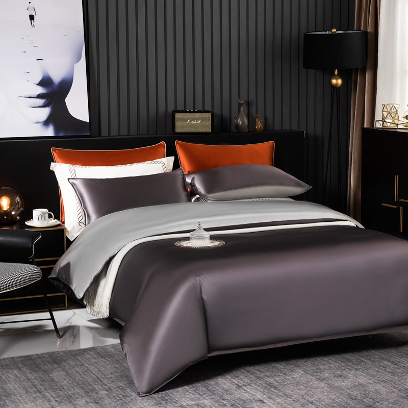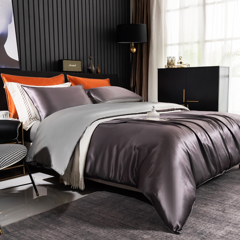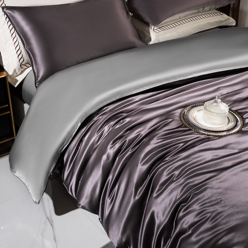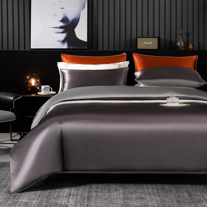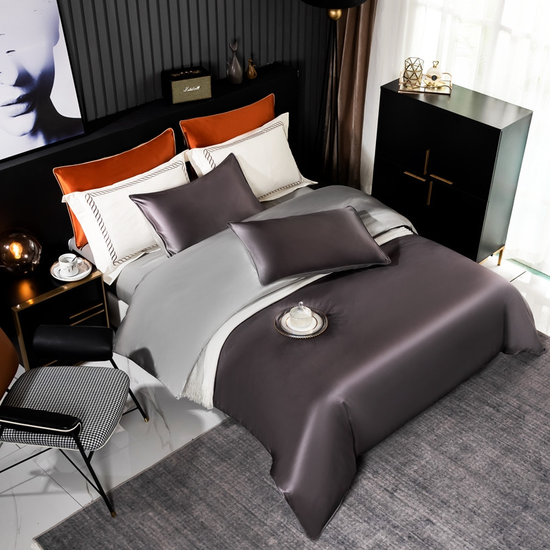 商品名称:雅韵诗 2023新款简约款真丝素色双拼四件套 炭火灰拼银灰