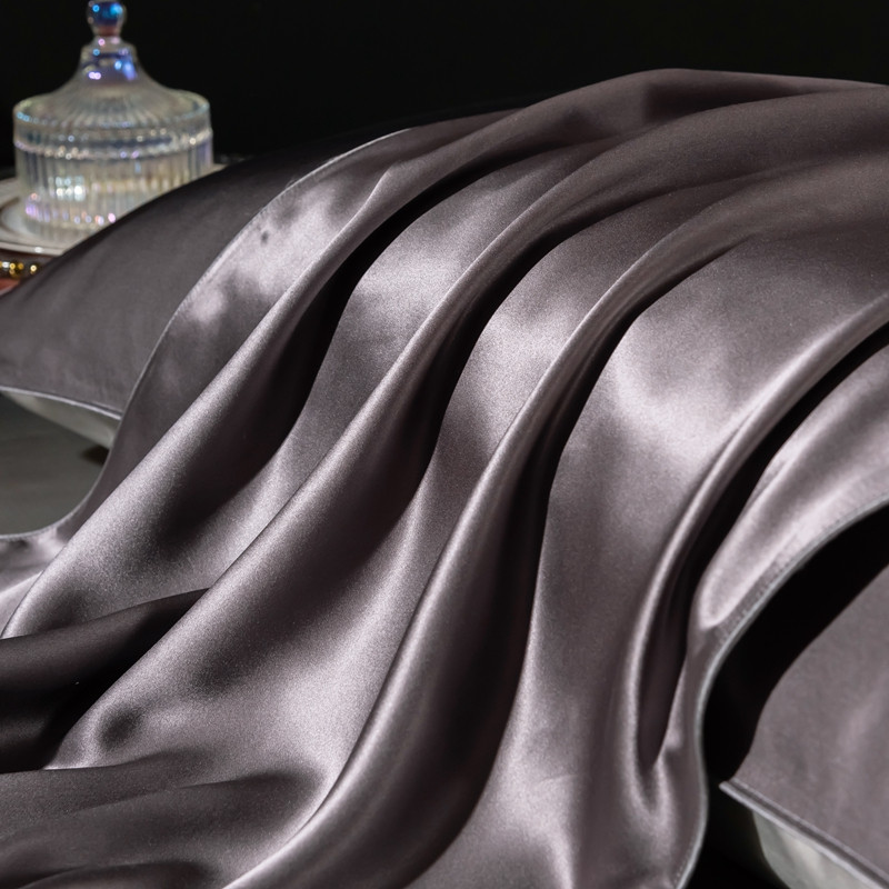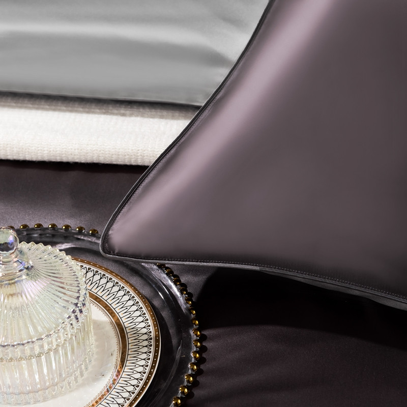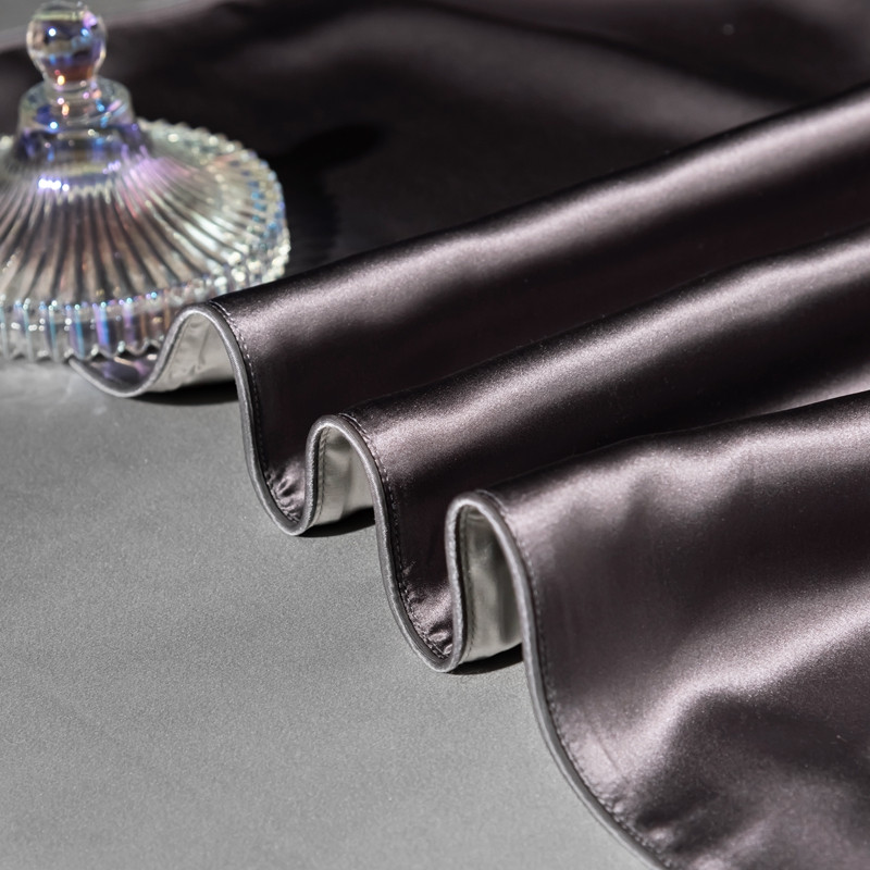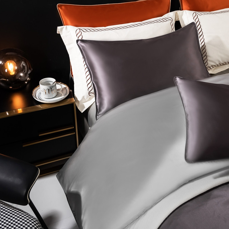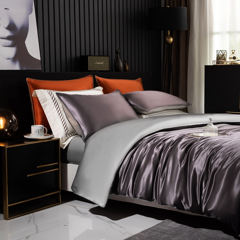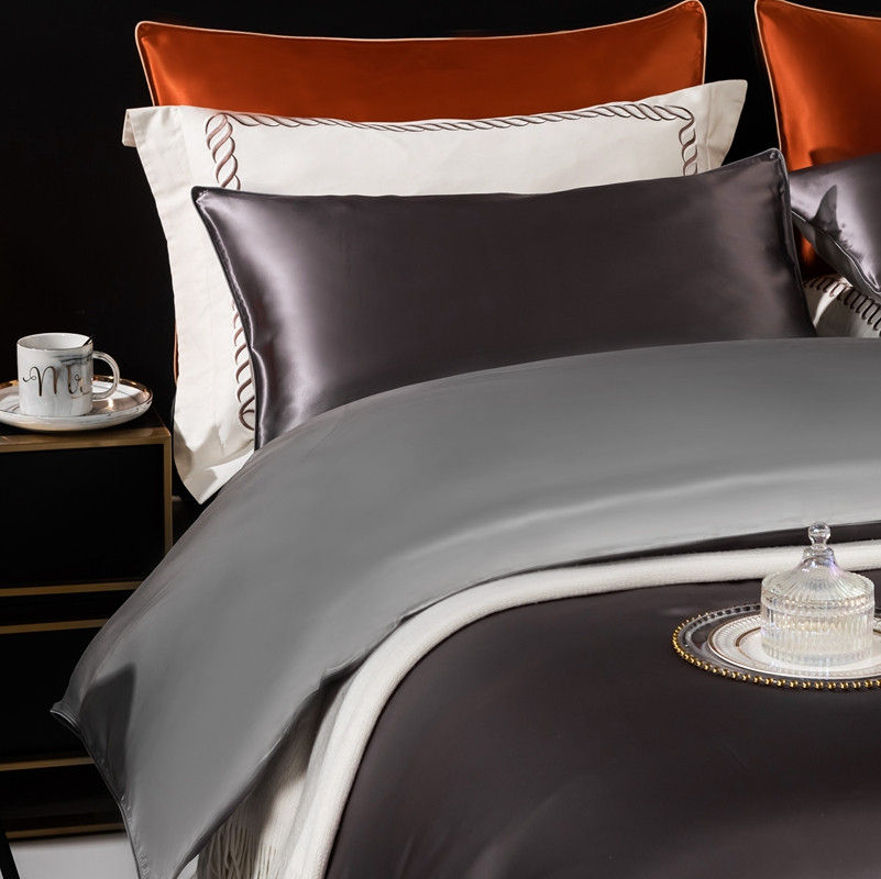 商品名称:雅韵诗 2023新款简约款真丝素色双拼四件套 炭火灰拼银灰