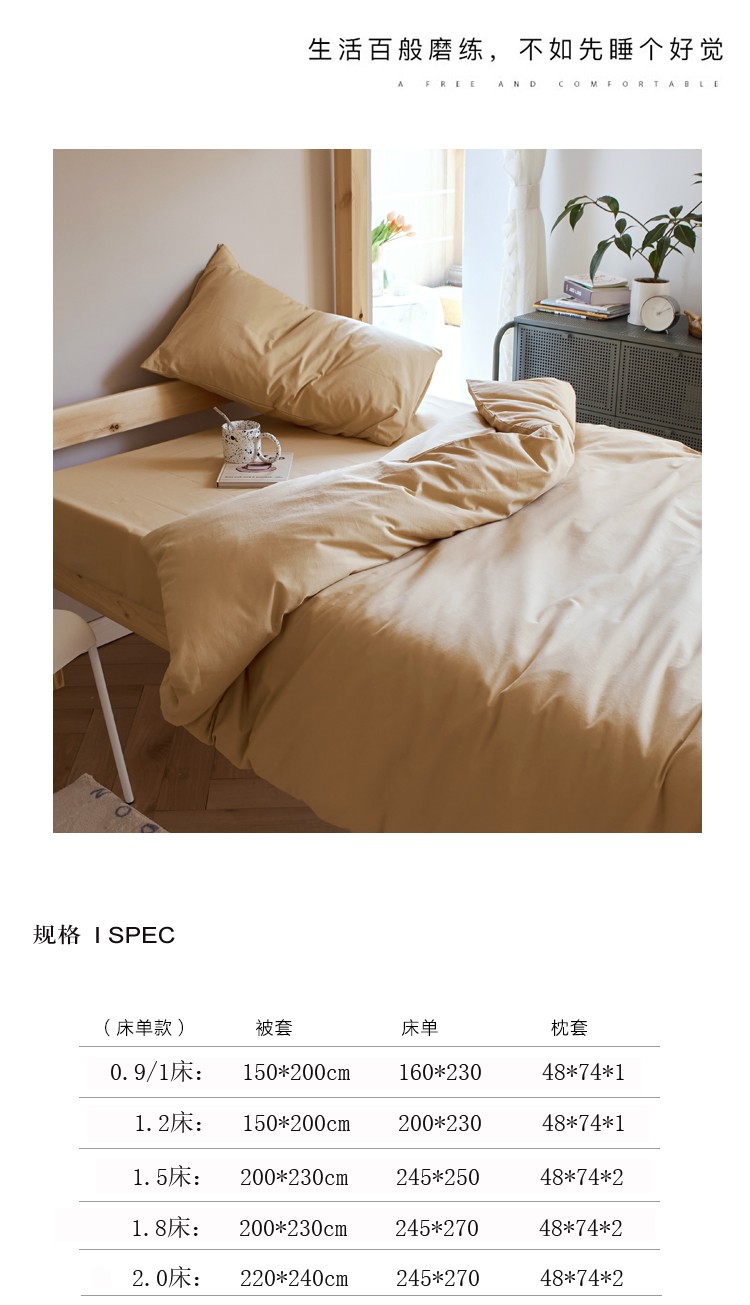 商品名称:全棉纯色水洗棉四件套纯棉简约学生寝室上下铺宿舍单人床上三件套