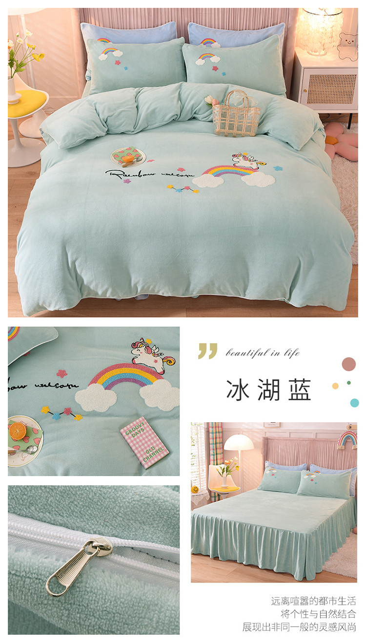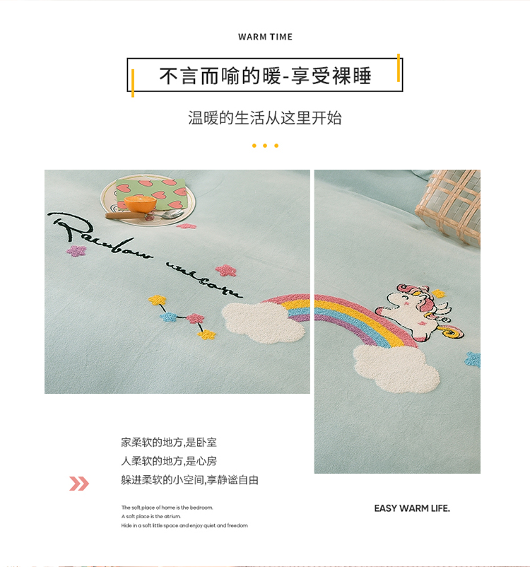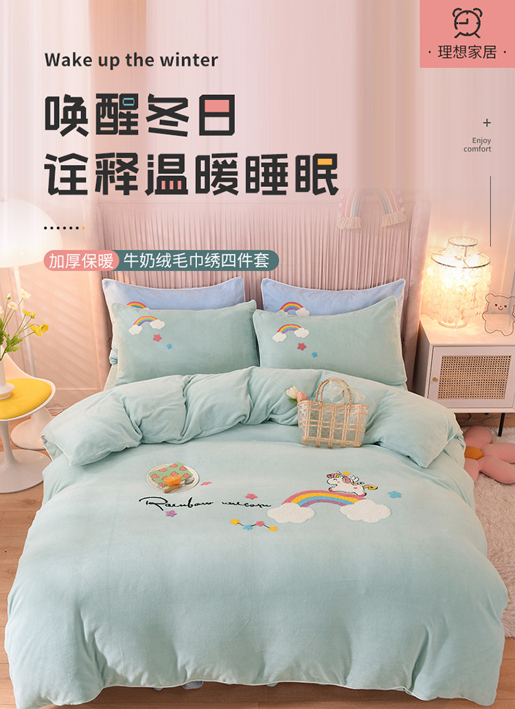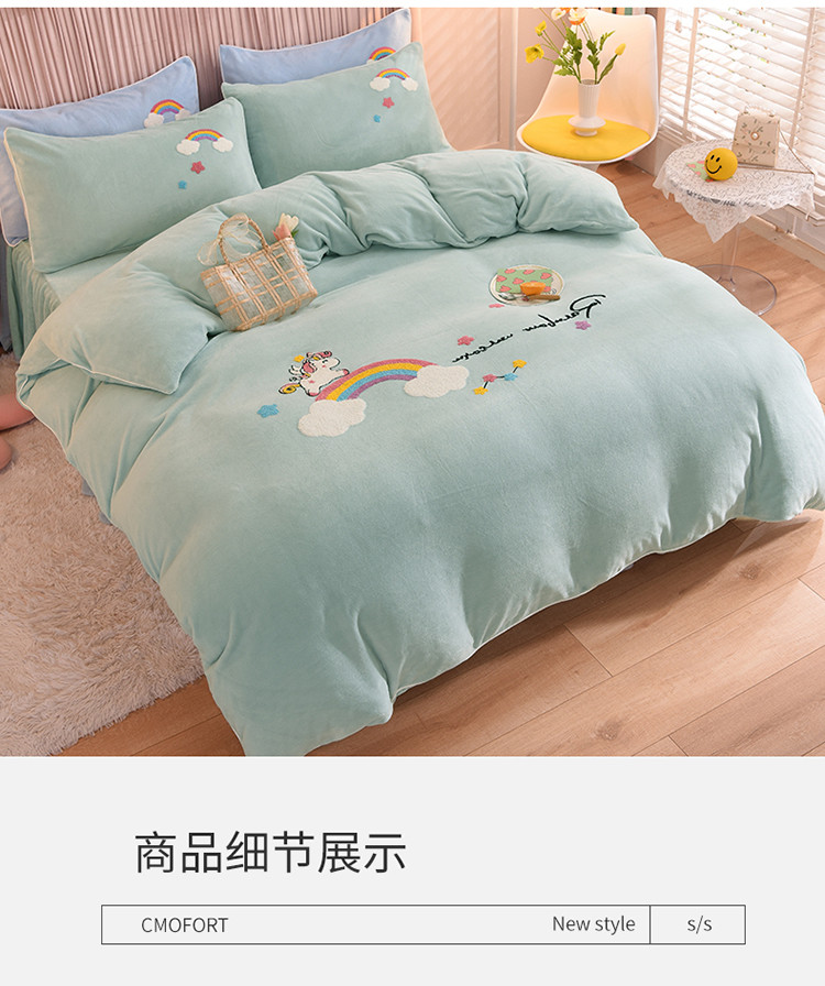 当前位置: 91家纺网 > 商品网购 > 床品套件 > 四件套 > 牛奶绒四件套 > 包小包2023新款独角兽法莱绒牛奶绒三拼四件套冰湖蓝