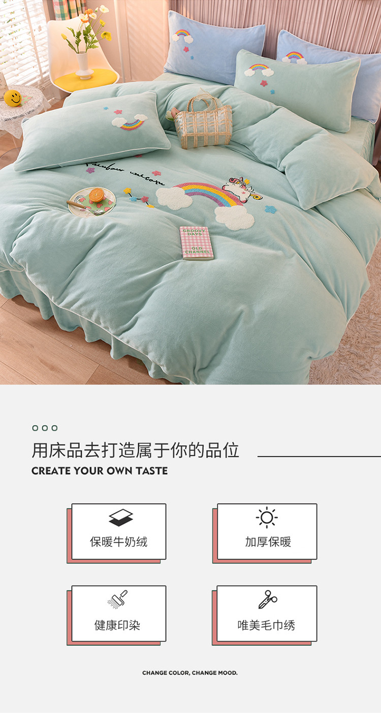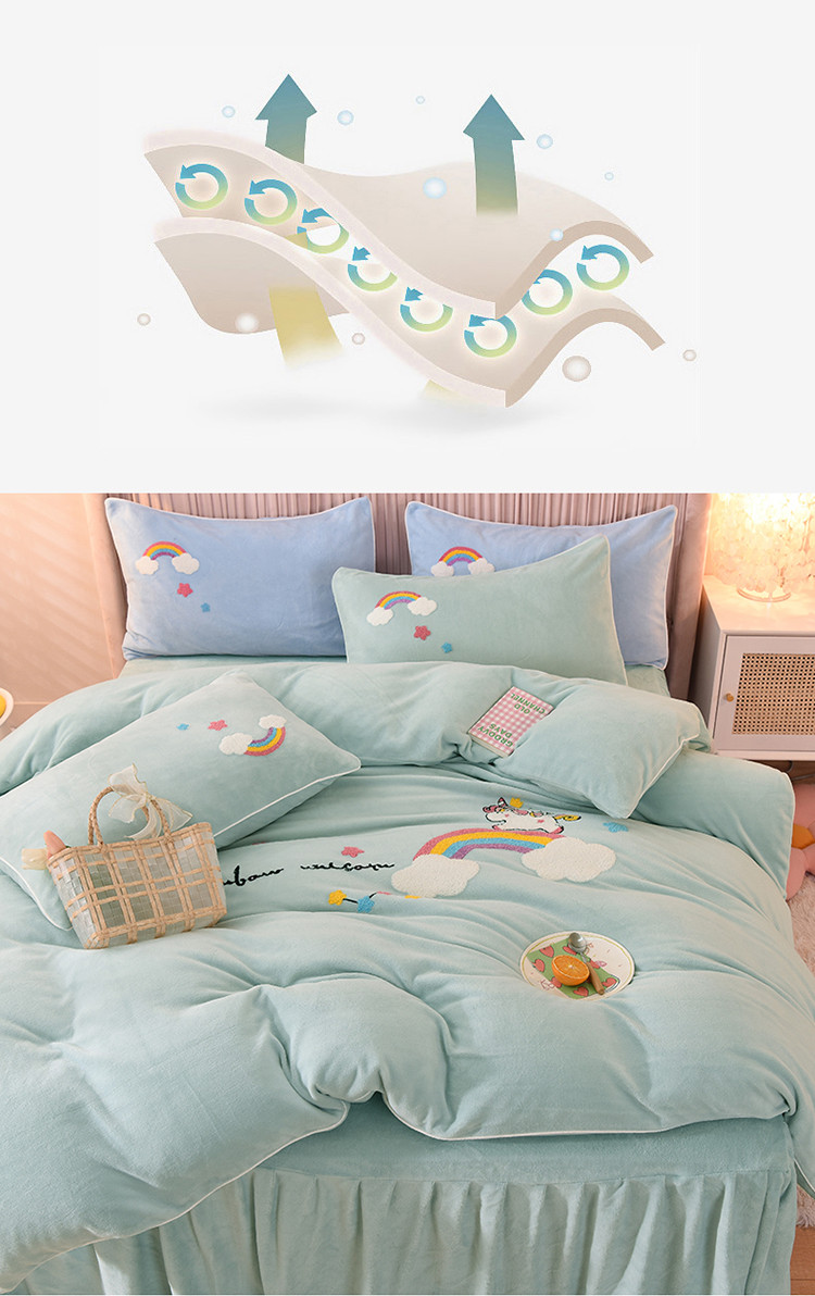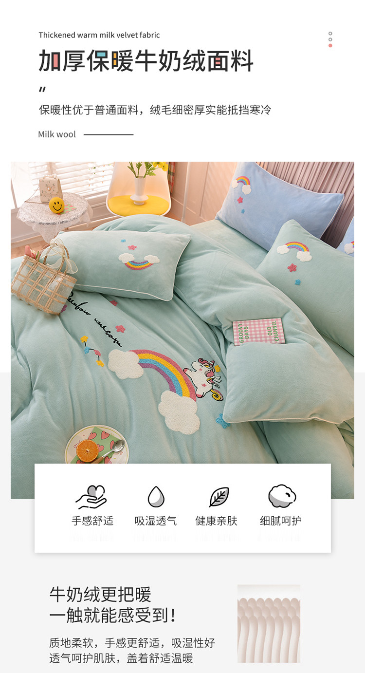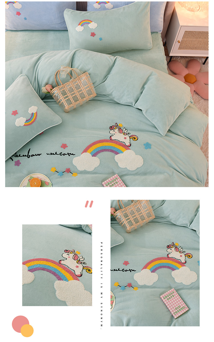 当前位置: 91家纺网 > 商品网购 > 床品套件 > 四件套 > 牛奶绒四件套 > 包小包2023新款独角兽法莱绒牛奶绒三拼四件套冰湖蓝