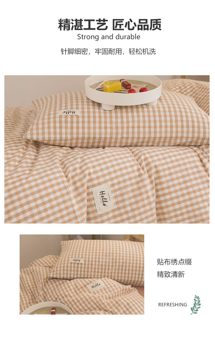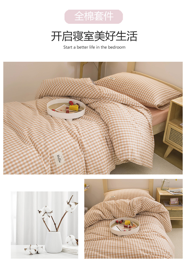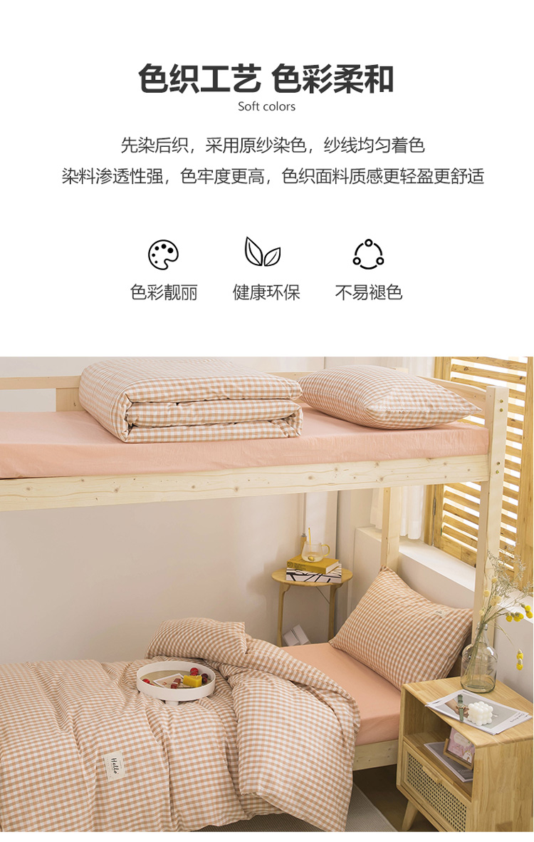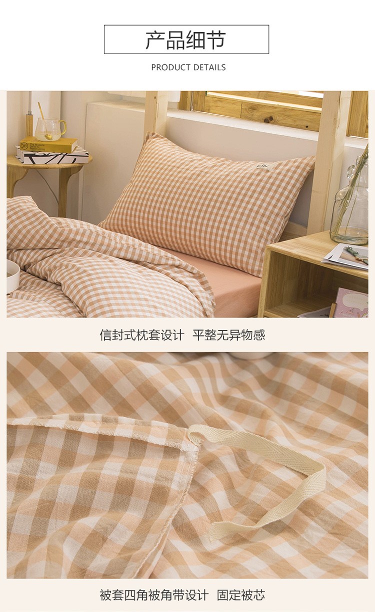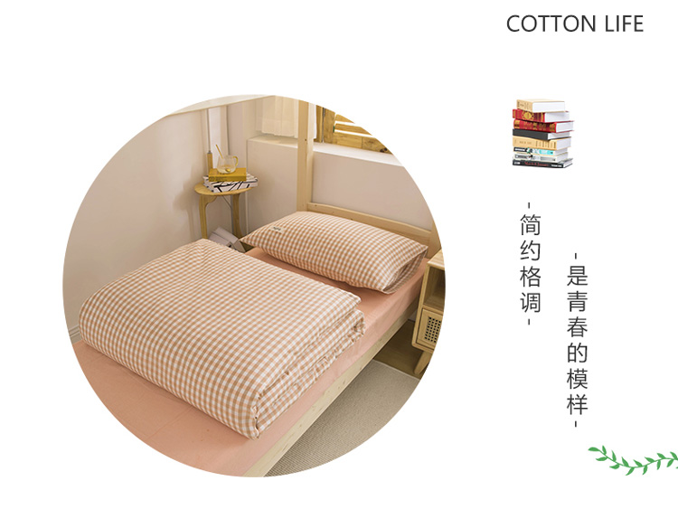 当前位置: 91家纺网 > 商品网购 > 床品套件 > 三件套 > 柠萌家居 2021新款全棉色织水洗棉学生宿舍三件套 蜜粉小格