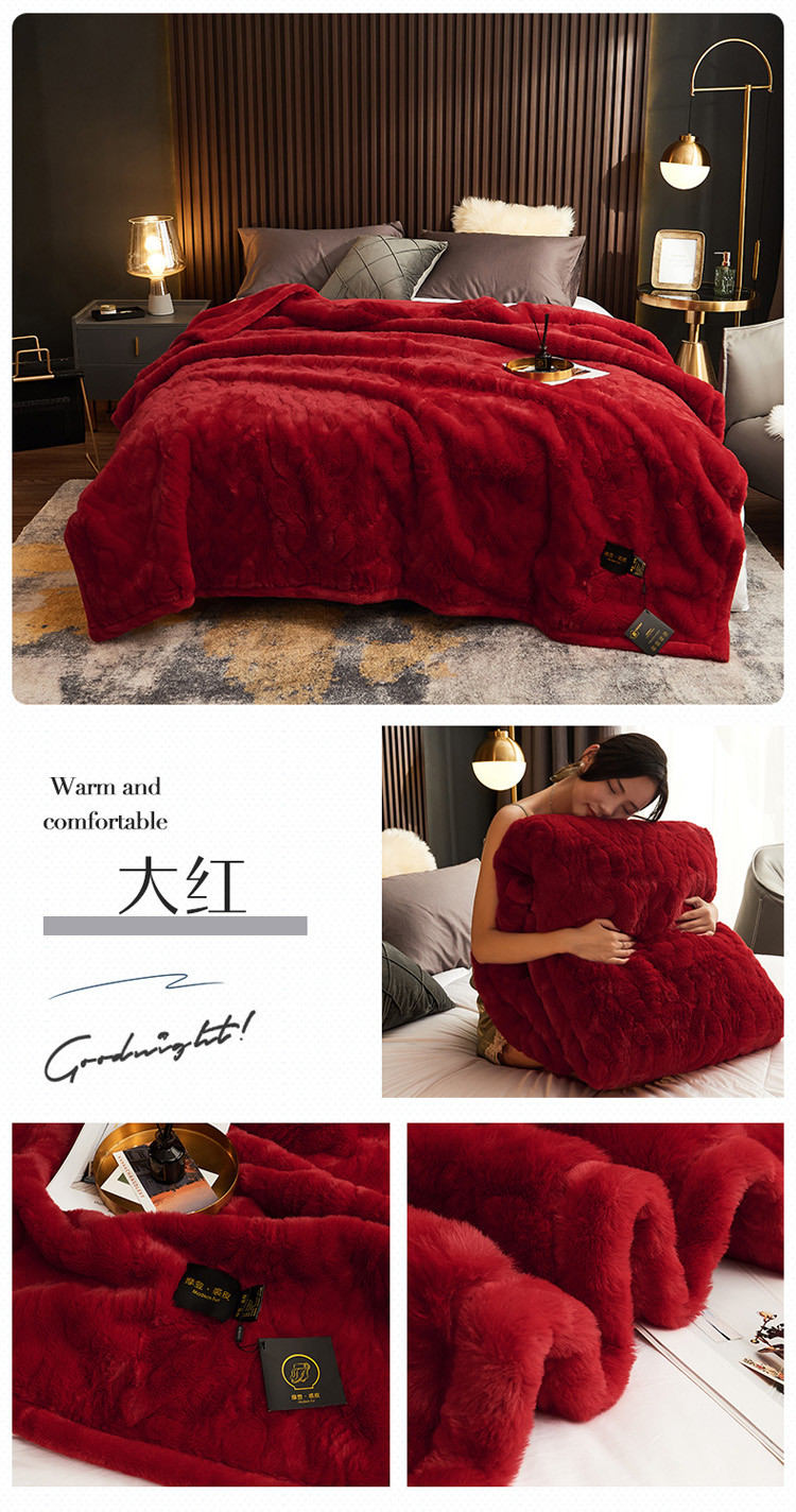 (总)凯轩毛毯网销专供 2026新款仿刺绣双层加厚压花云毯,豆沙红,绛紫色,孔雀绿,奶油咖,珊瑚粉,深灰色