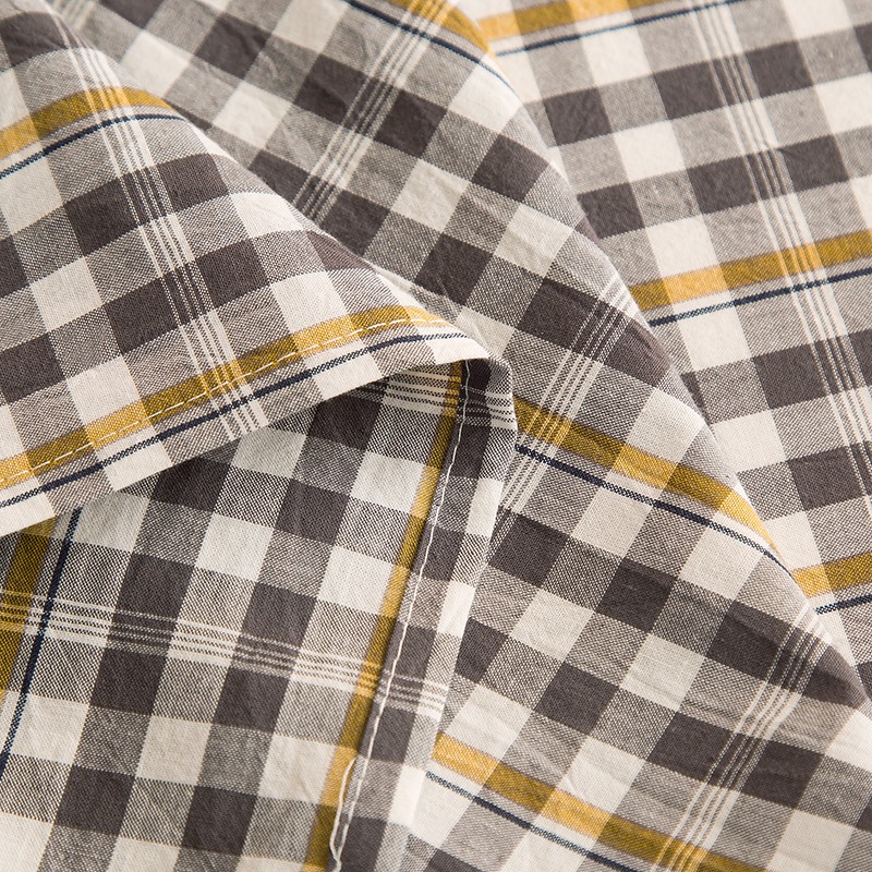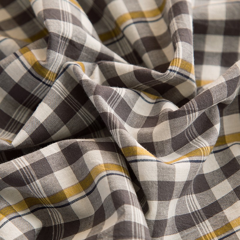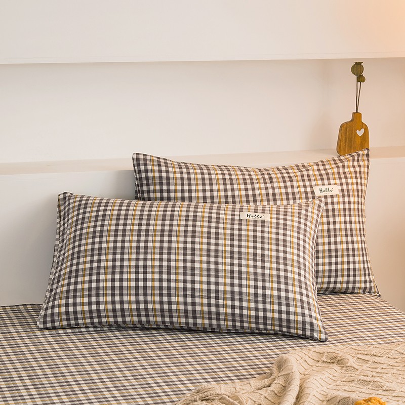 柠萌2021新款全棉色织水洗棉枕套 灰黄小格(一对)