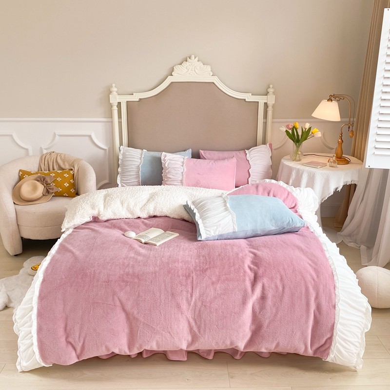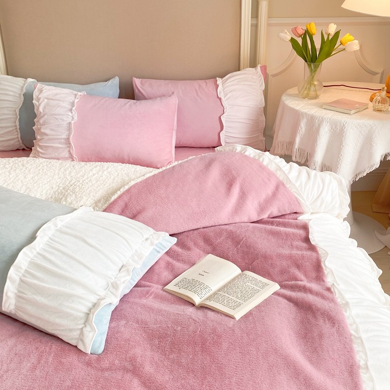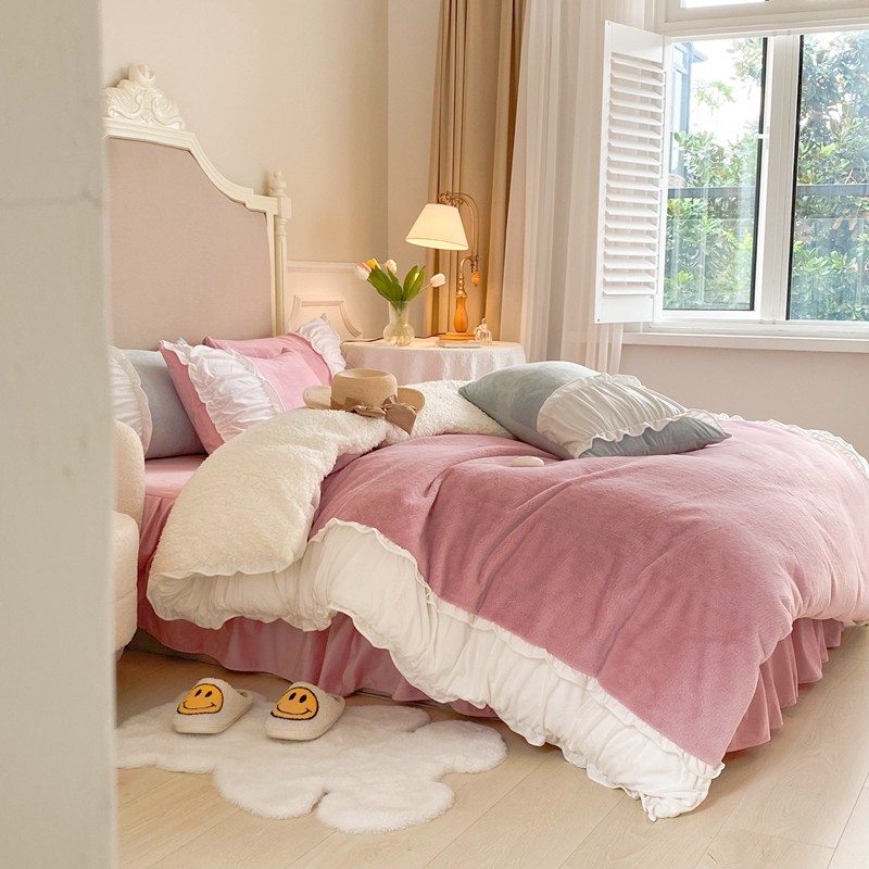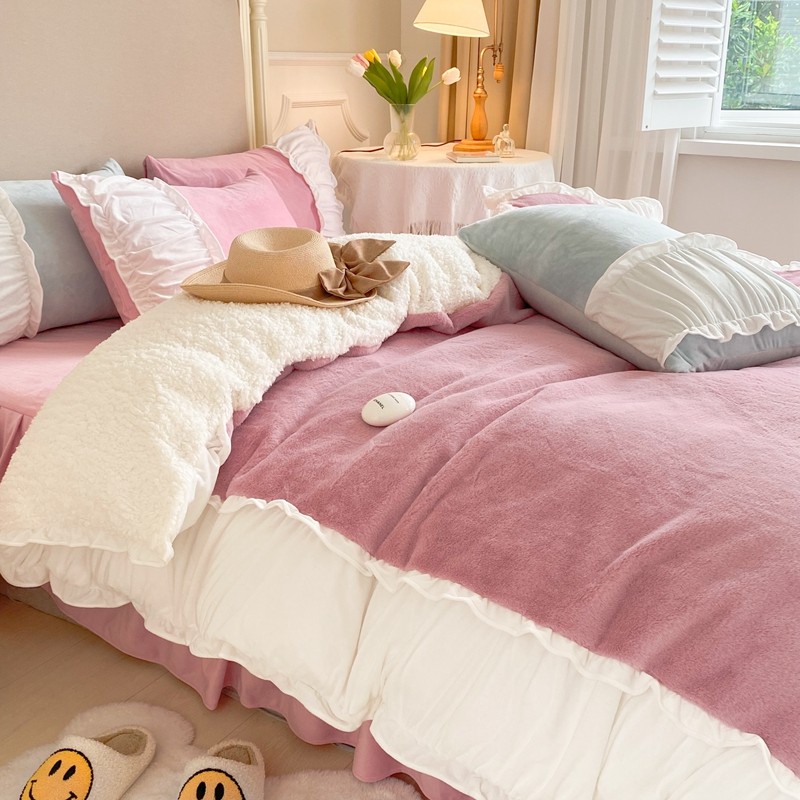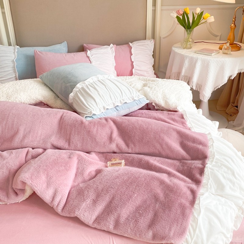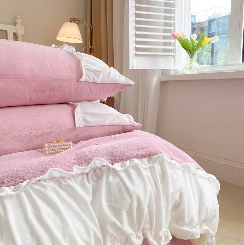 漫调 2021新款荷叶边兔兔绒韩版四件套 马卡龙粉