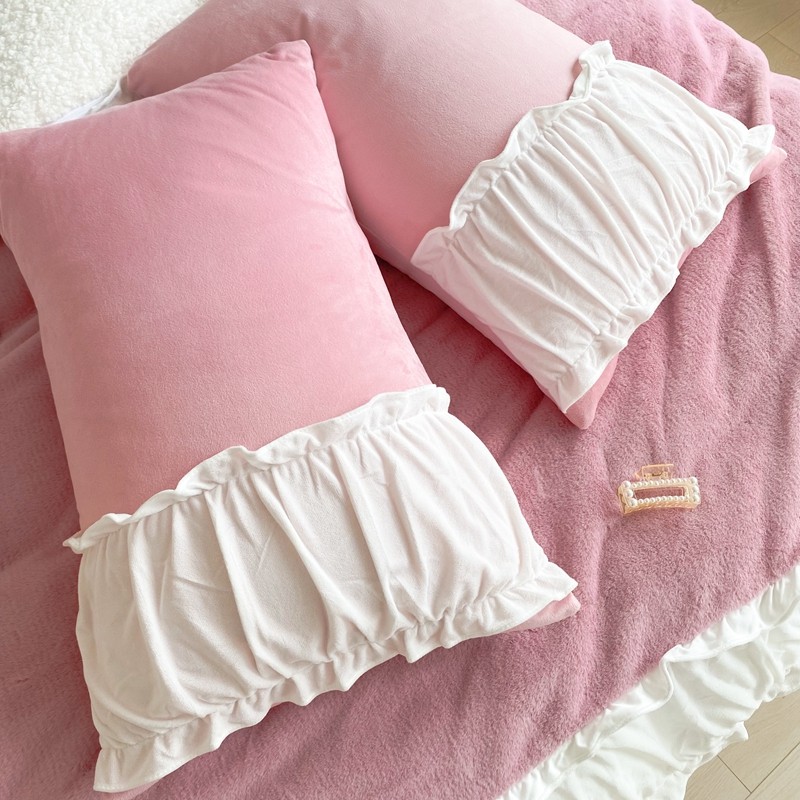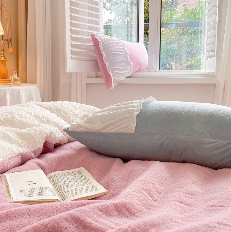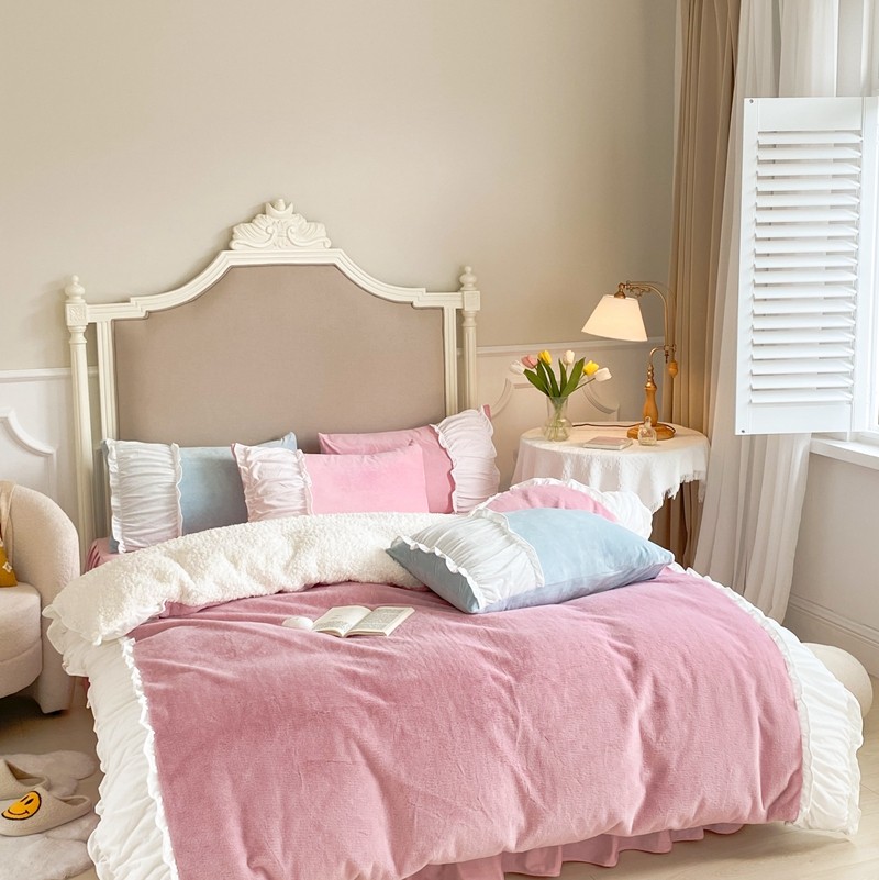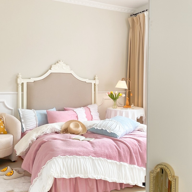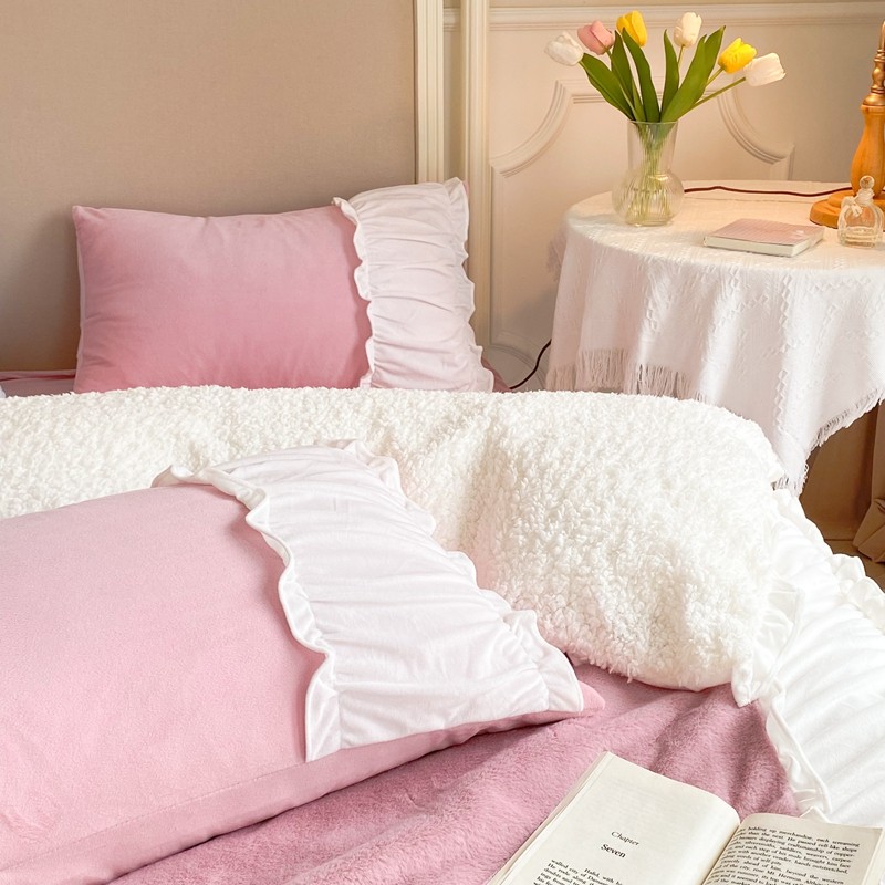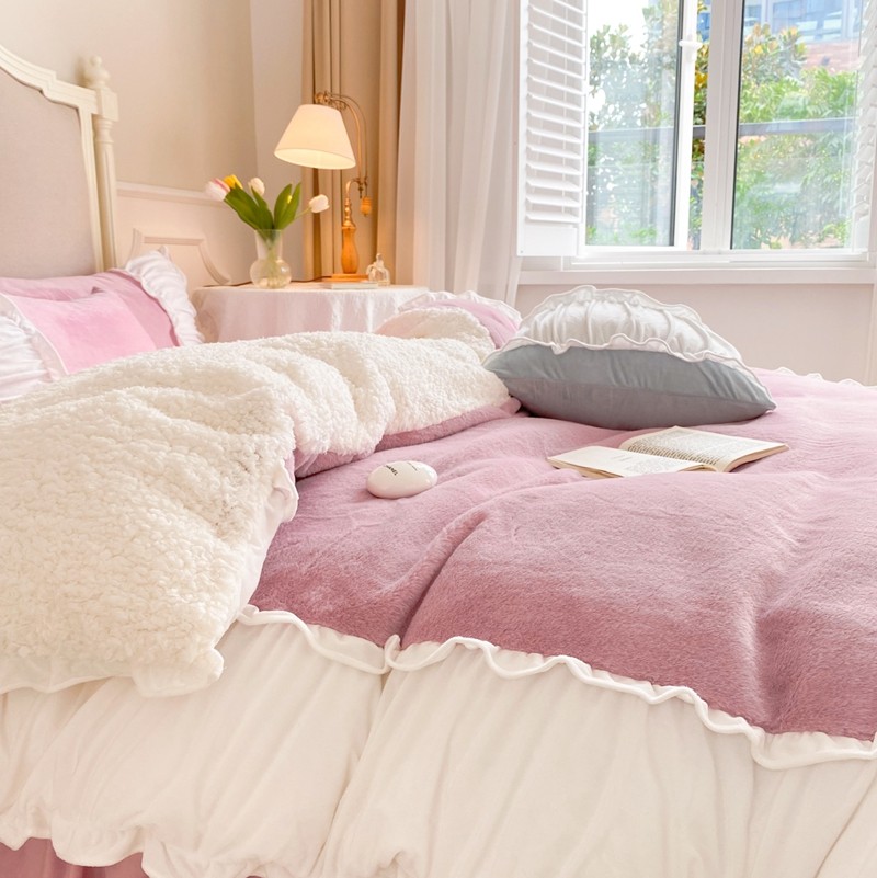 漫调 2021新款荷叶边兔兔绒韩版四件套 马卡龙粉