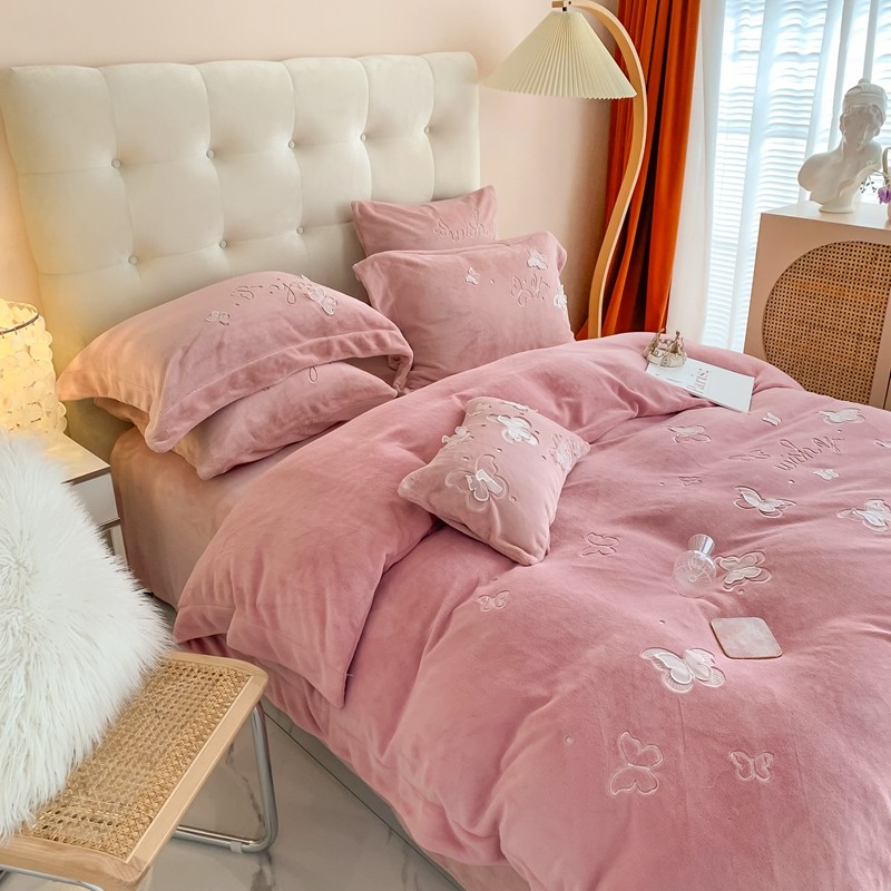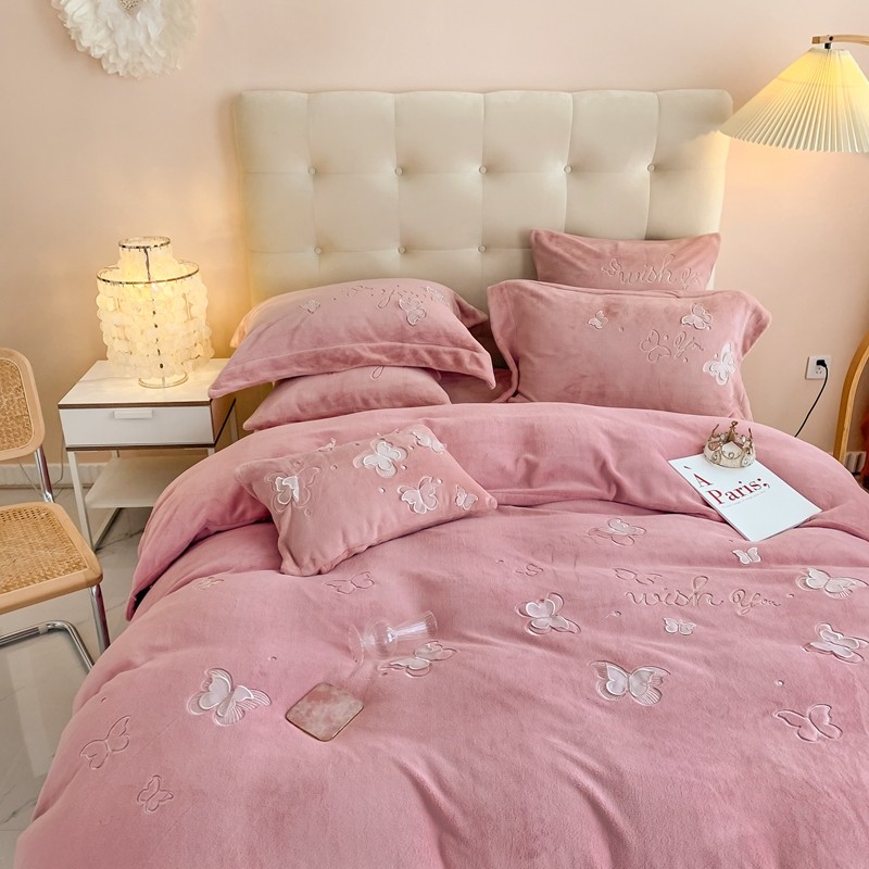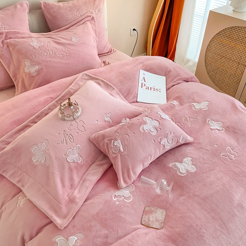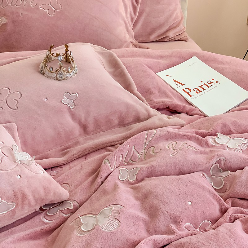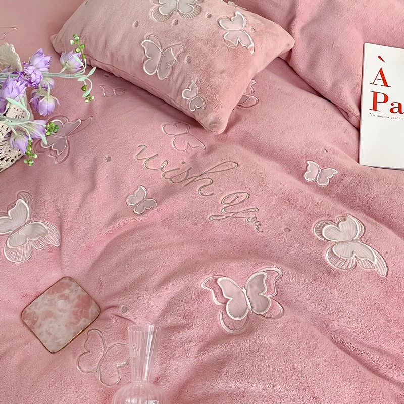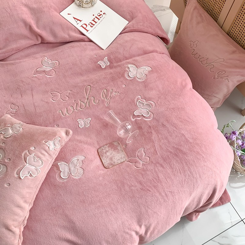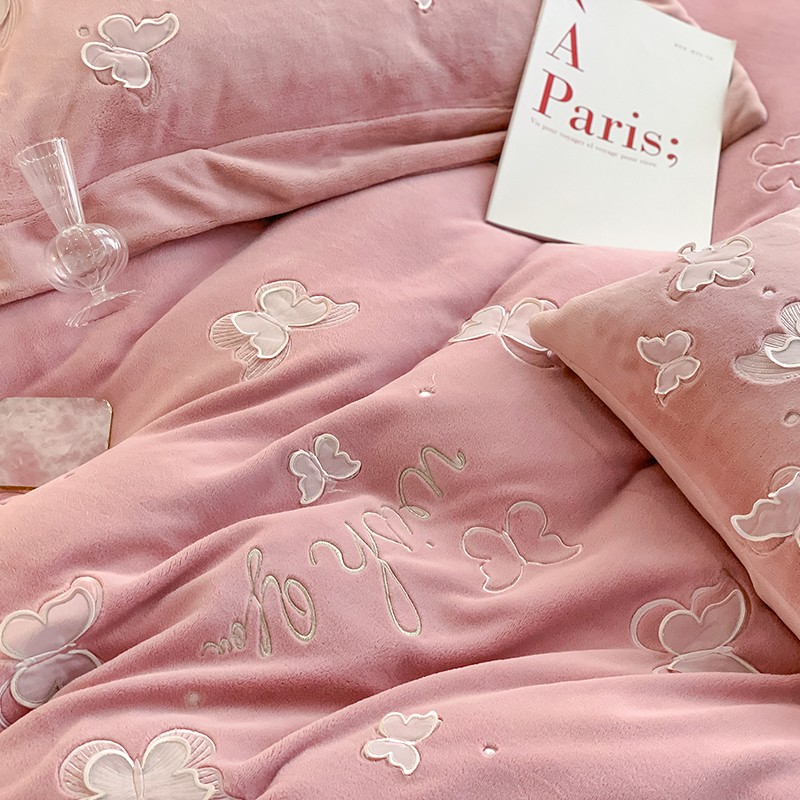 星尚 2021新款A类进口牛奶绒加厚水晶绒绣花四件套 蝴蝶仙子-豆沙