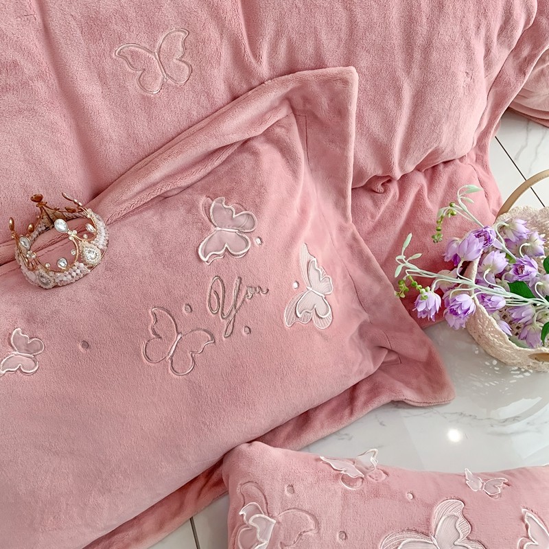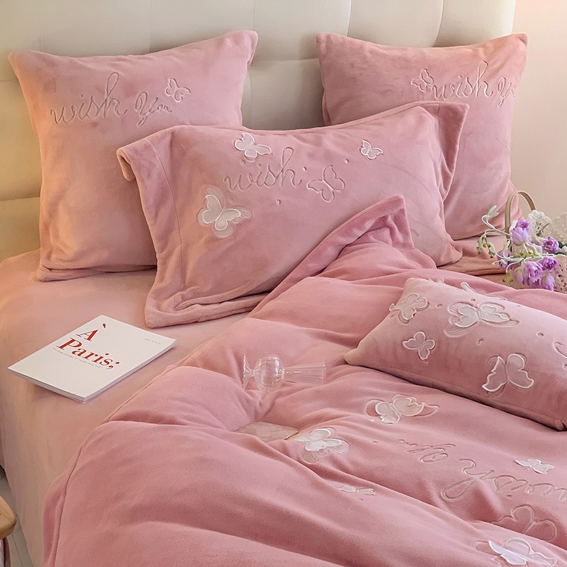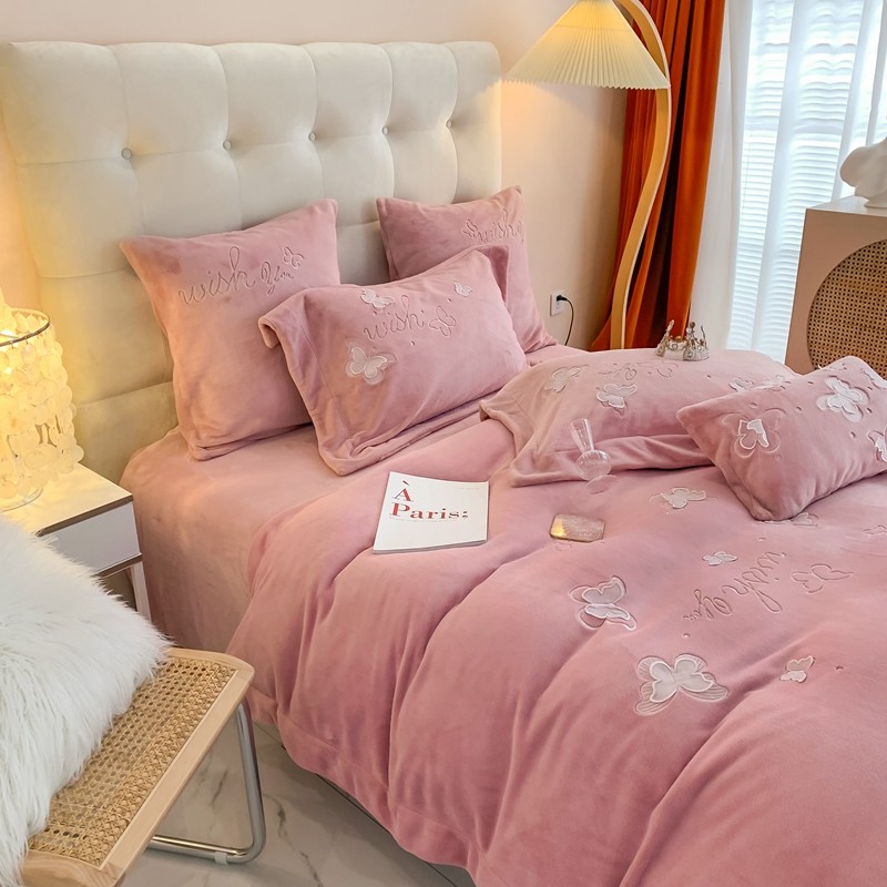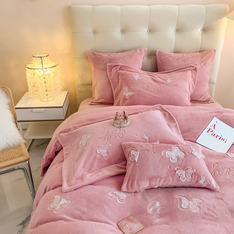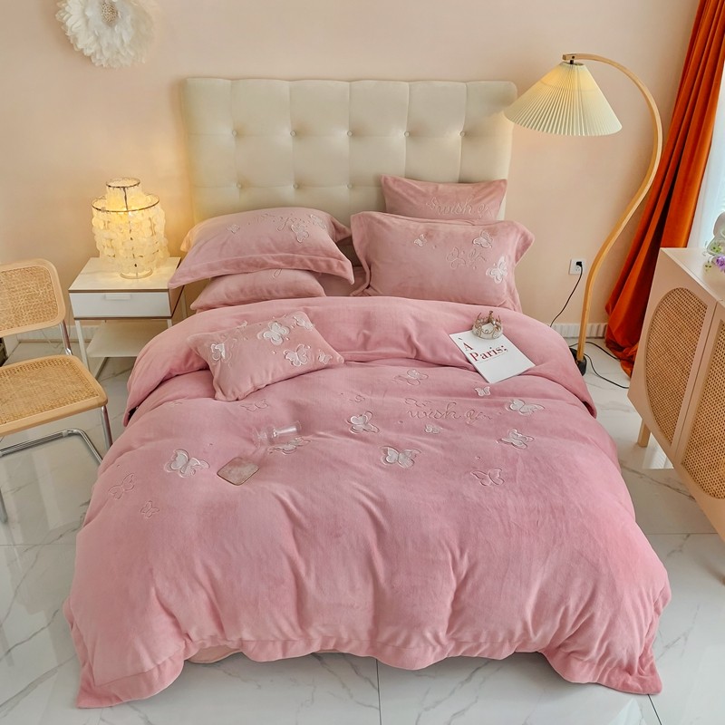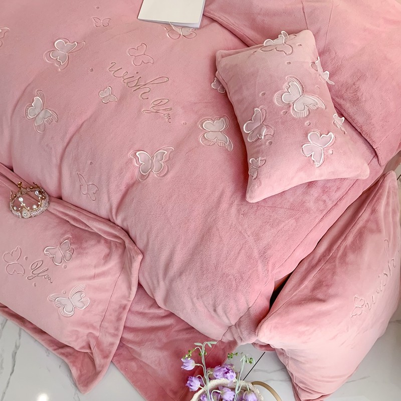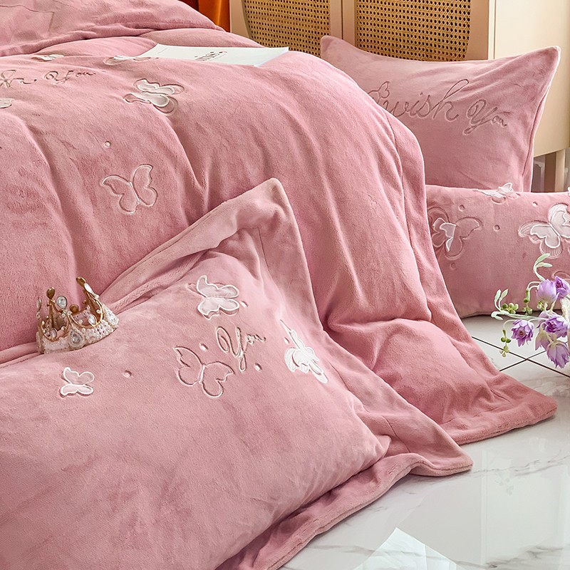 星尚 2021新款A类进口牛奶绒加厚水晶绒绣花四件套 蝴蝶仙子-豆沙