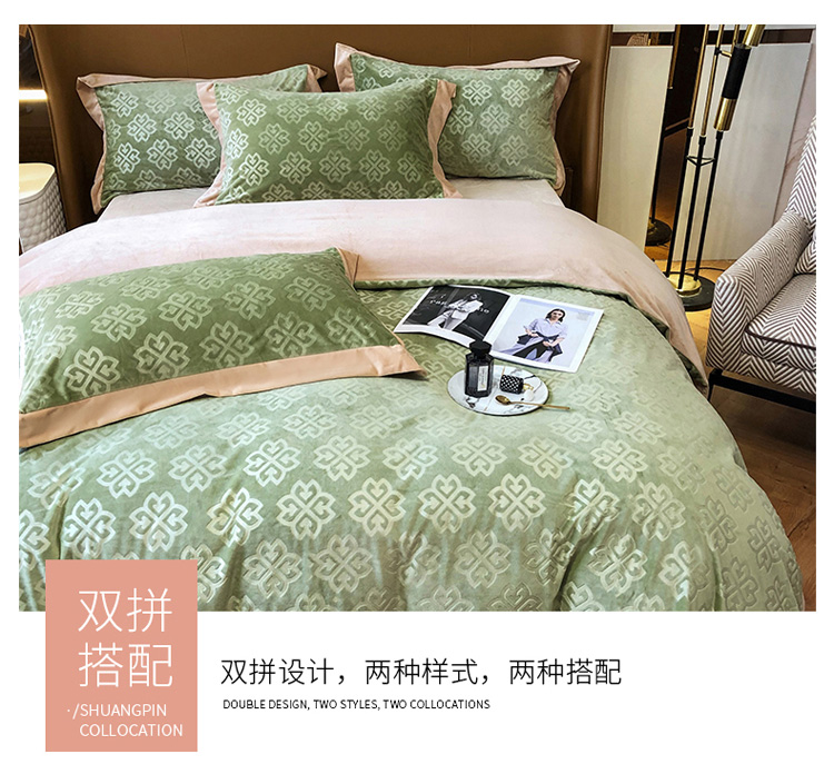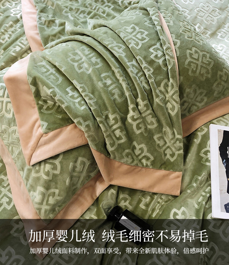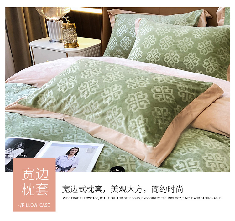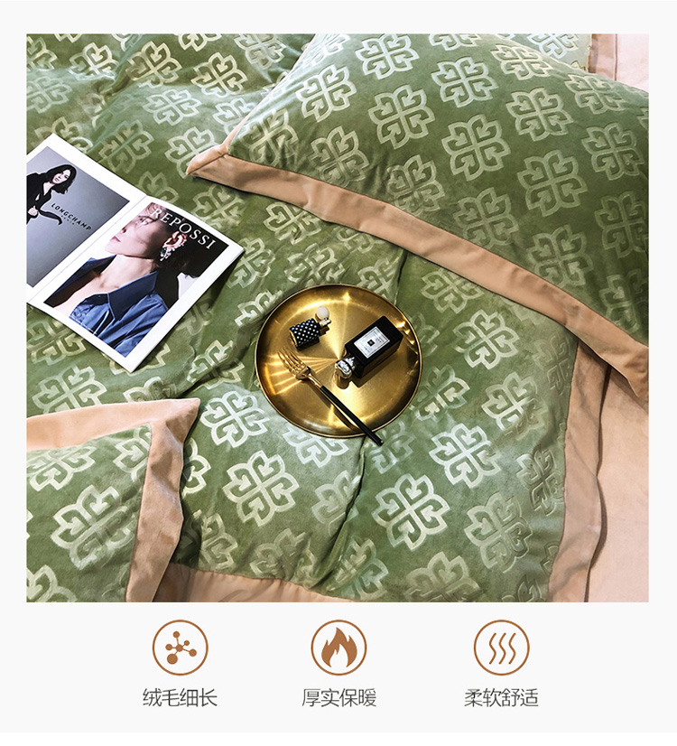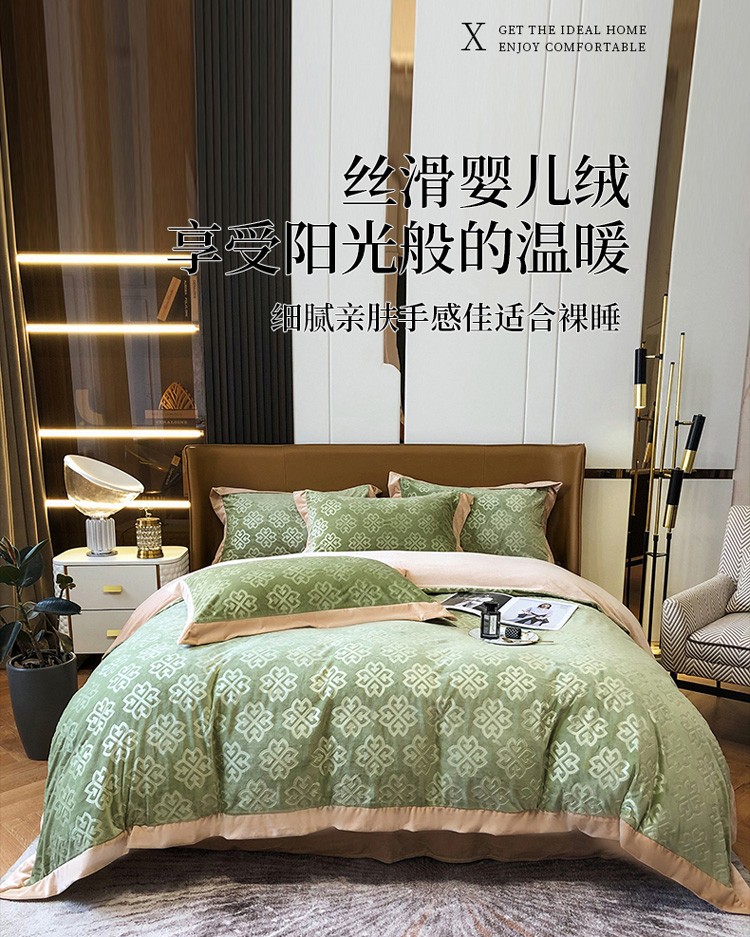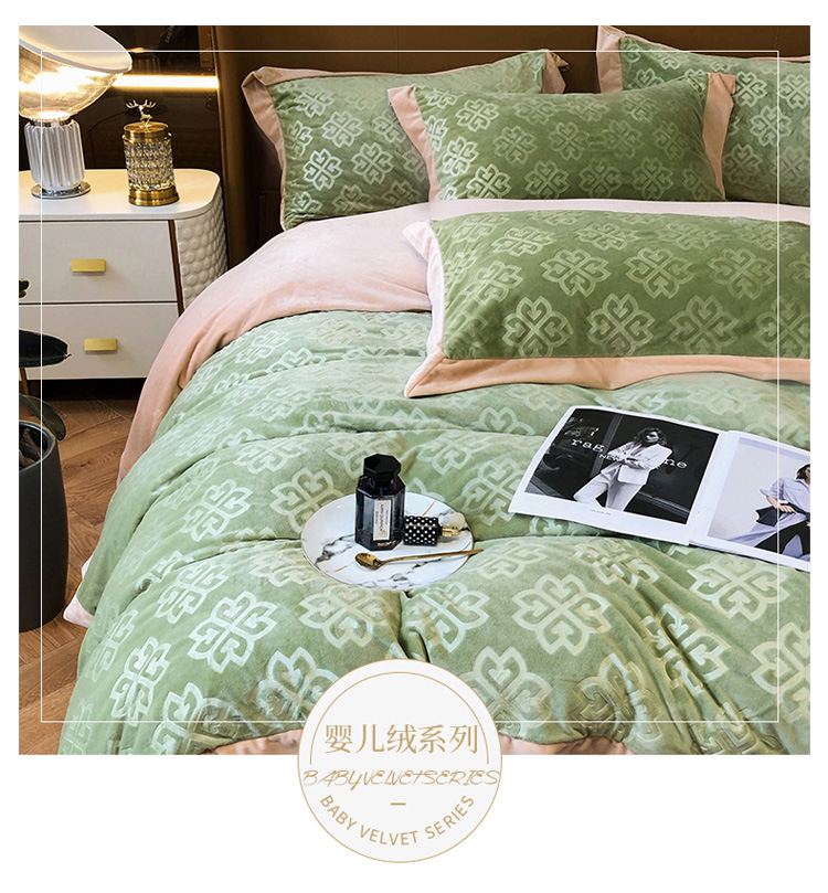 爱缦2021格调系列实拍230克婴儿绒四件套 迷雾绿