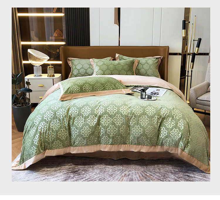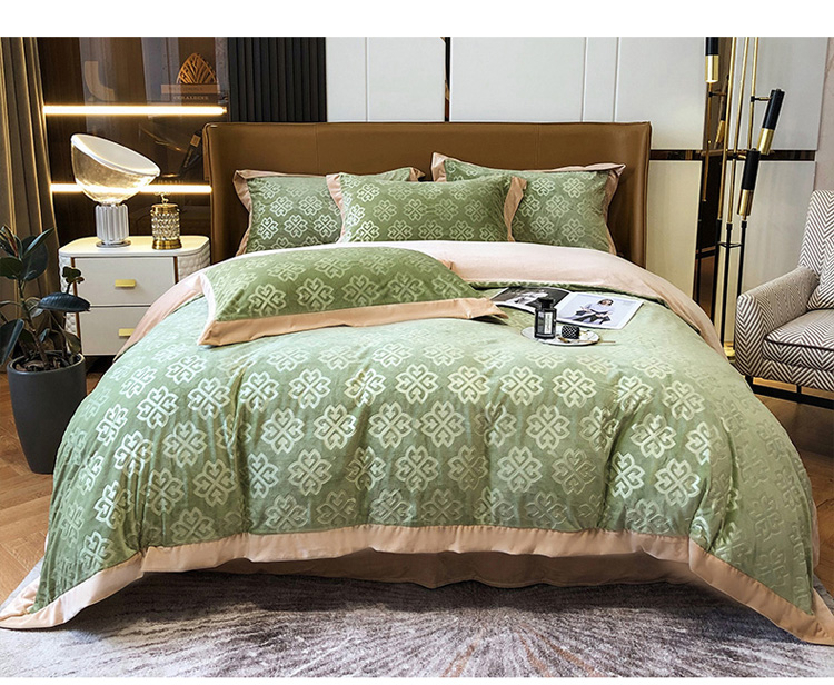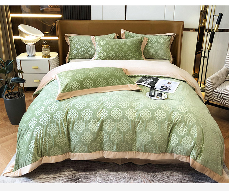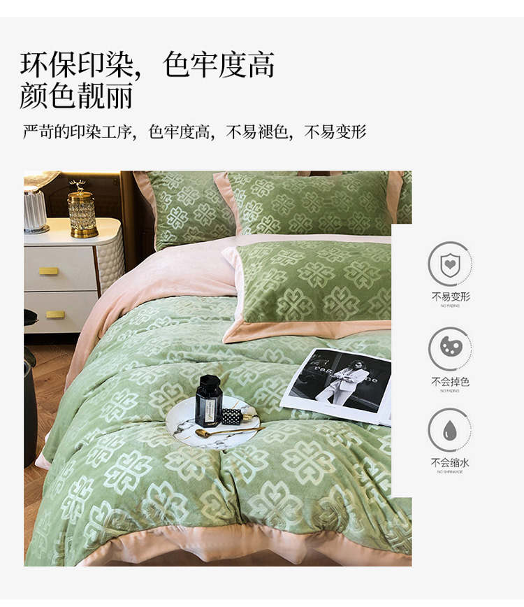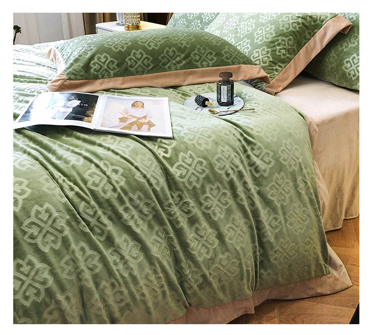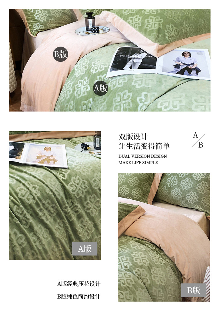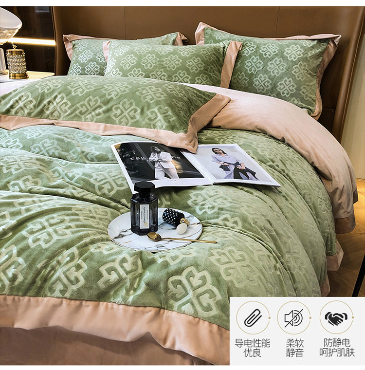 爱缦2021格调系列实拍230克婴儿绒四件套 迷雾绿