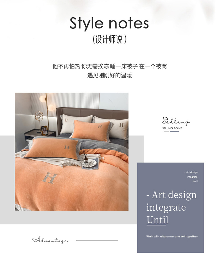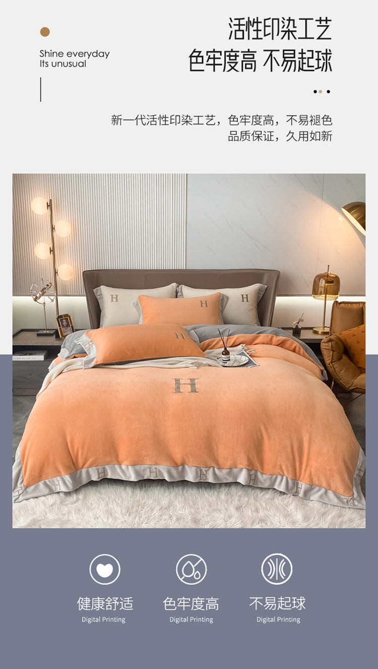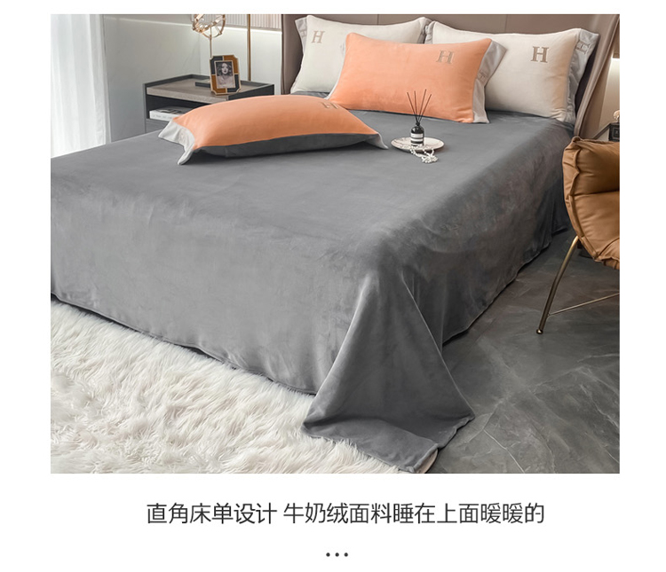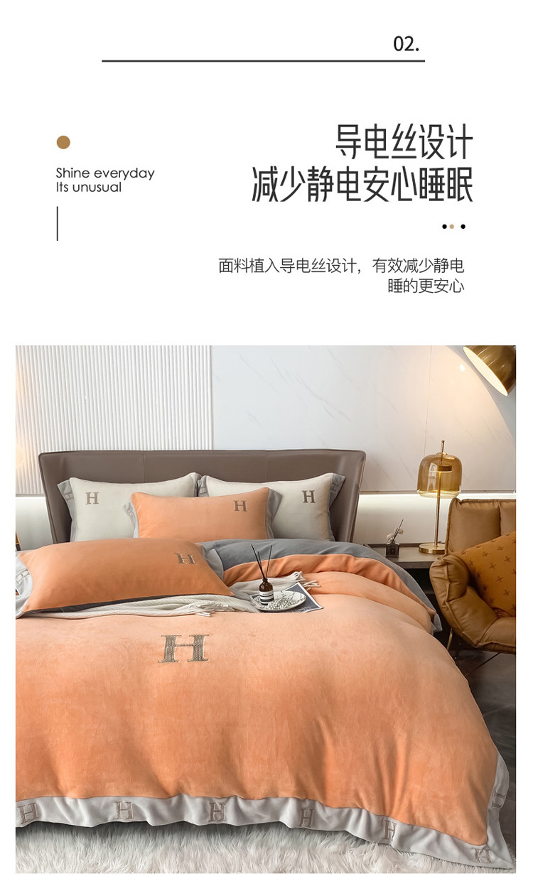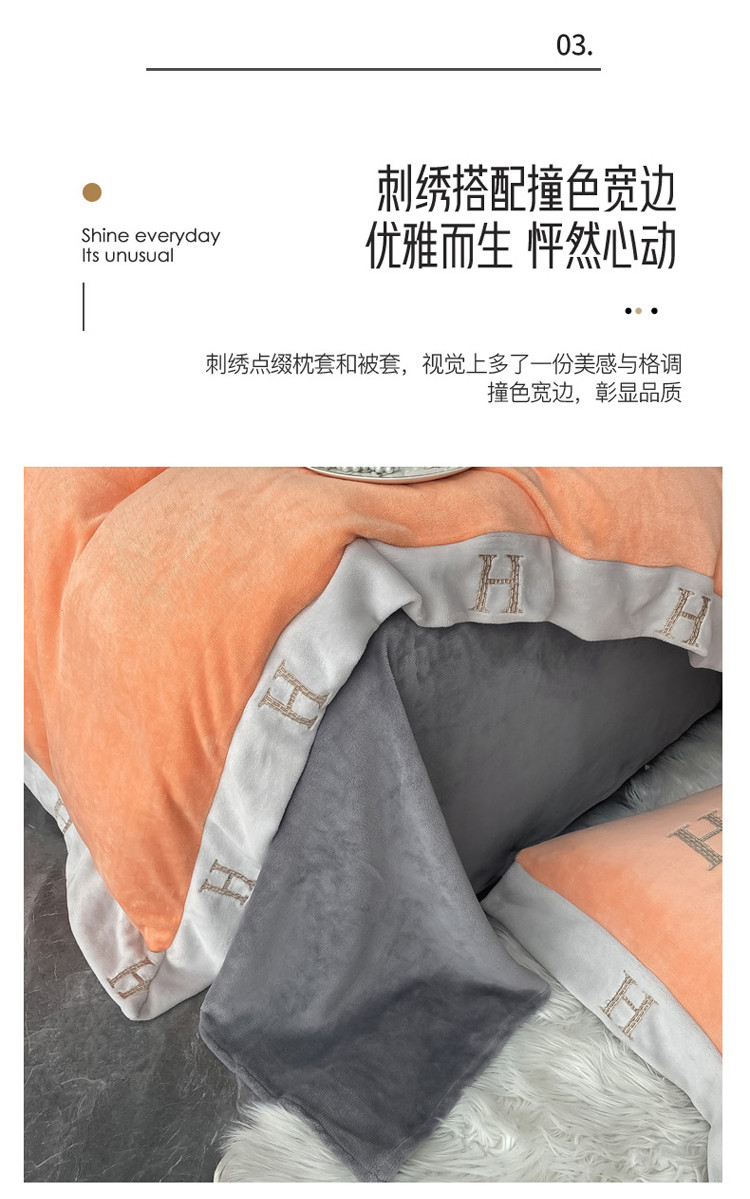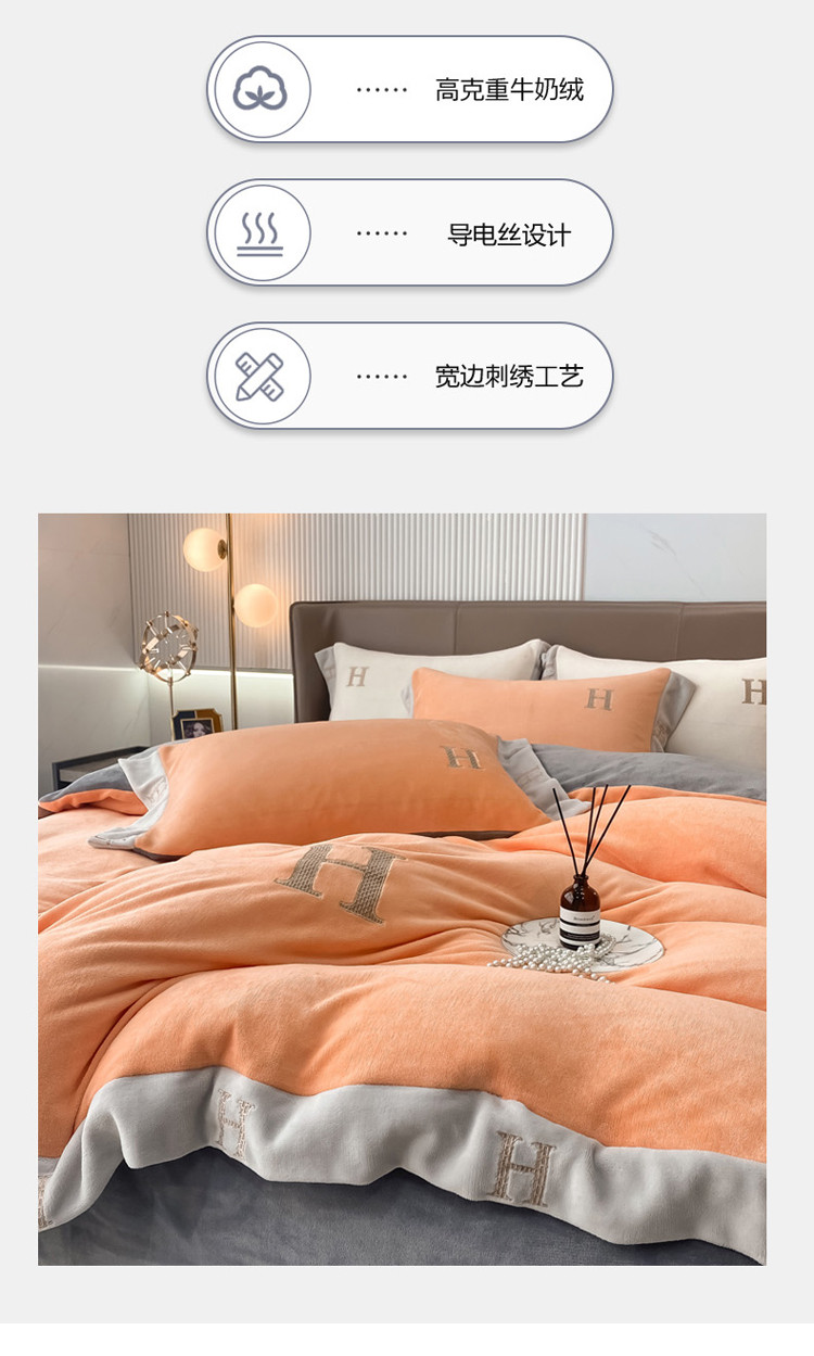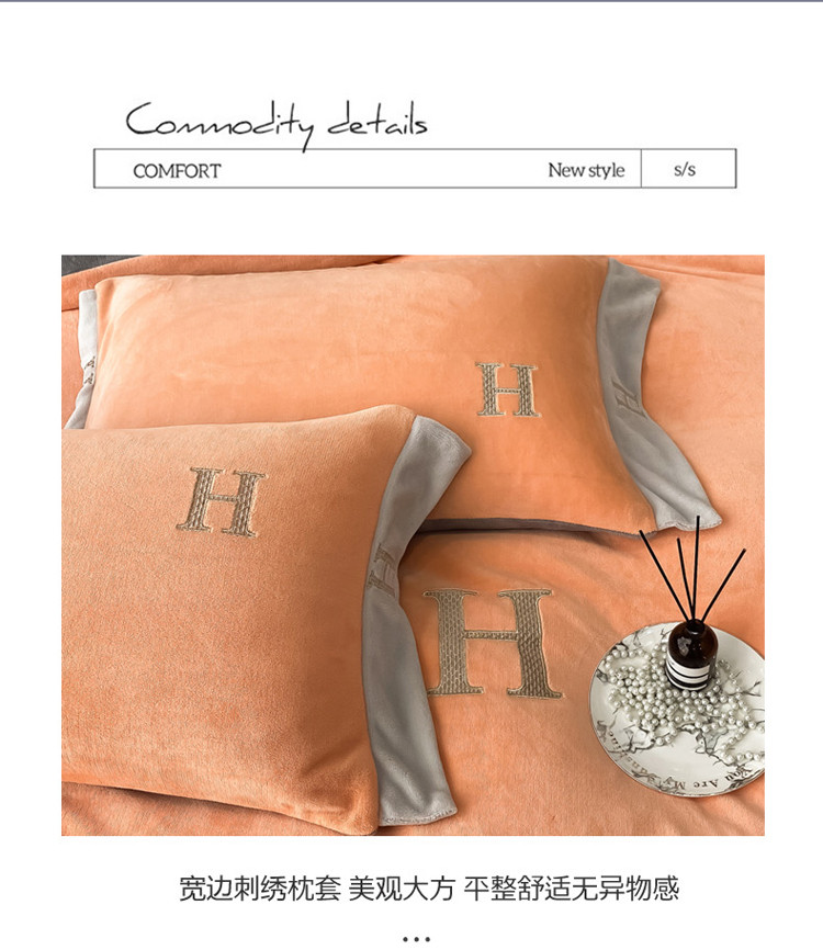 商品名称:米莱家纺 2021新款高克重牛奶绒宽边刺绣四件套 奶油橙