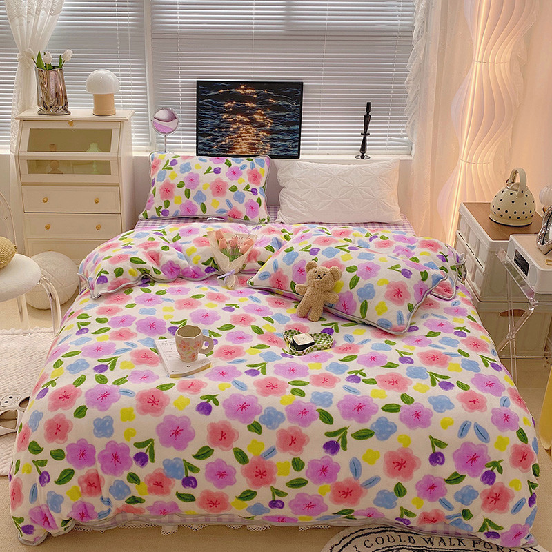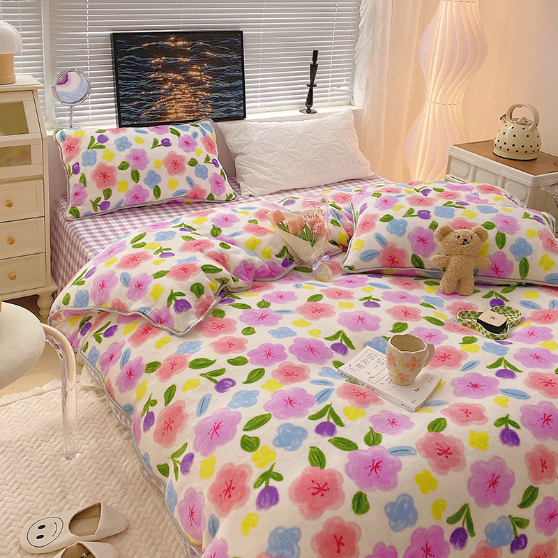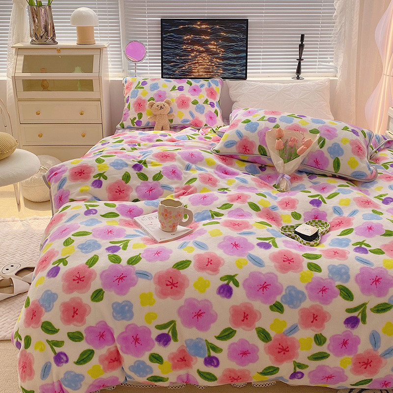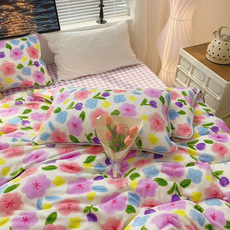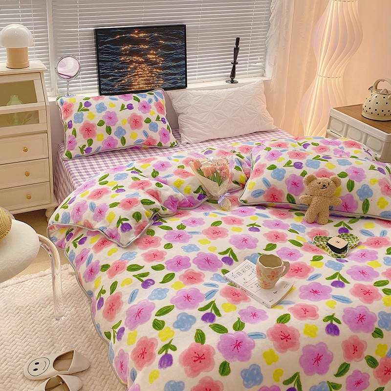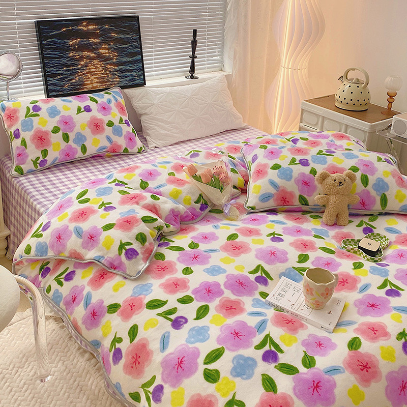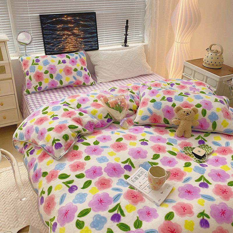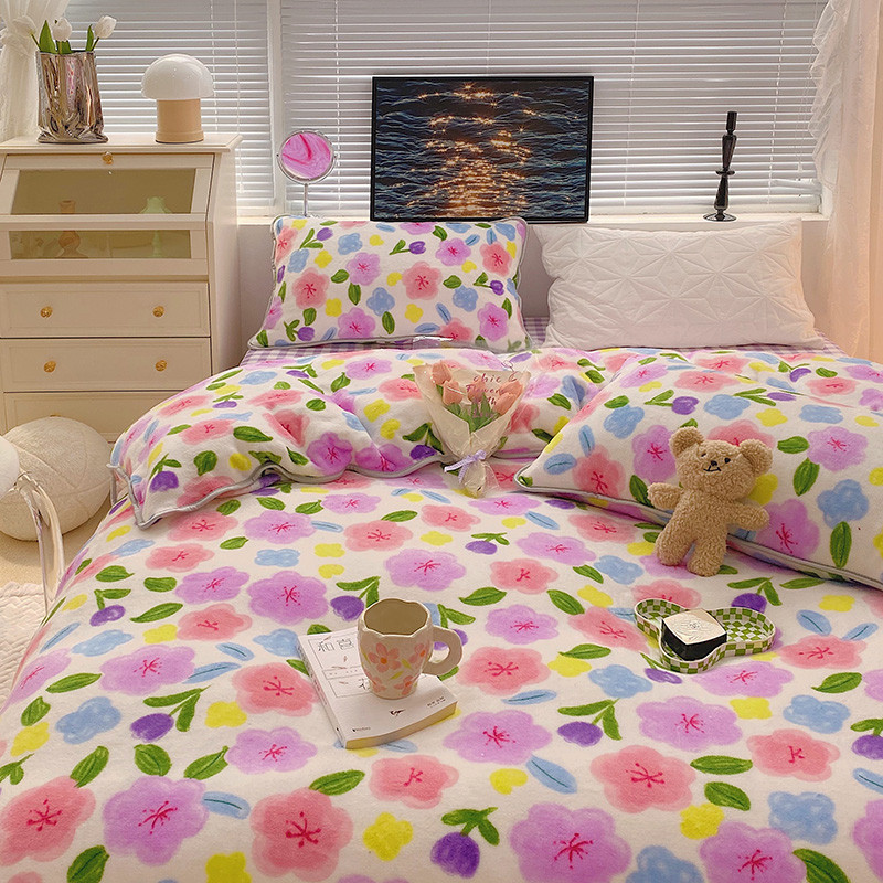 顾里2021新款ins韩国高端保暖牛奶绒四件套 花花世界