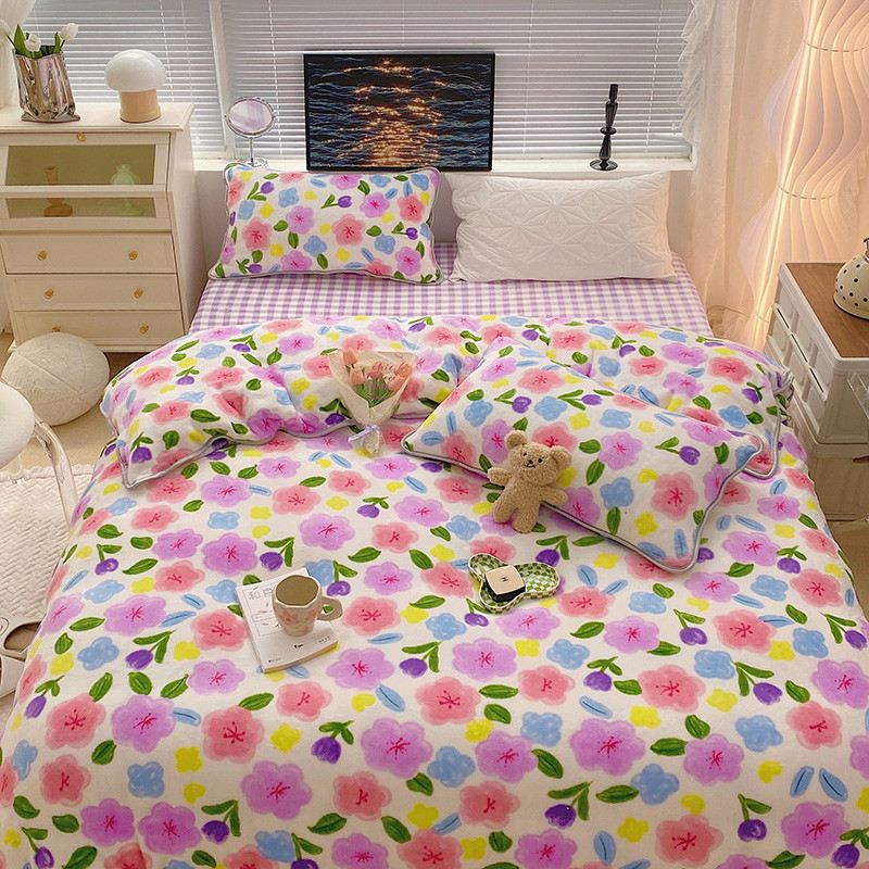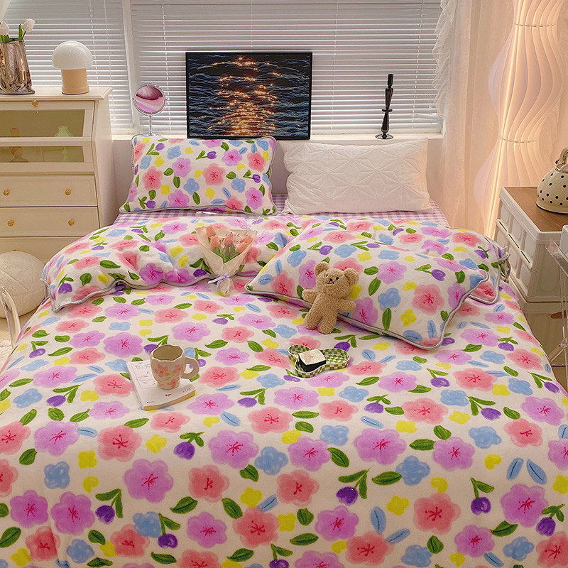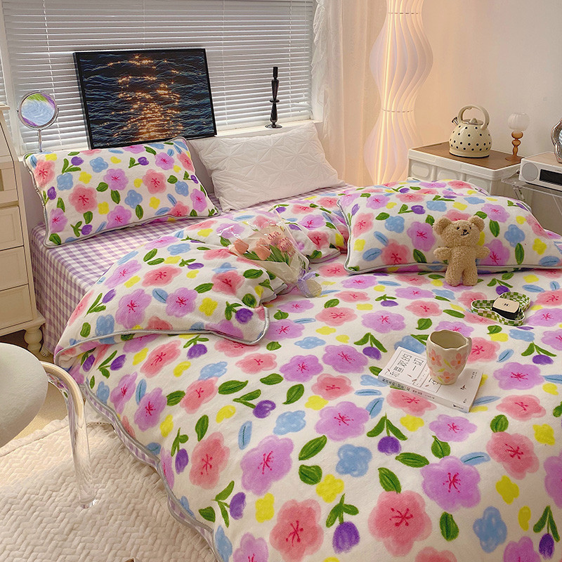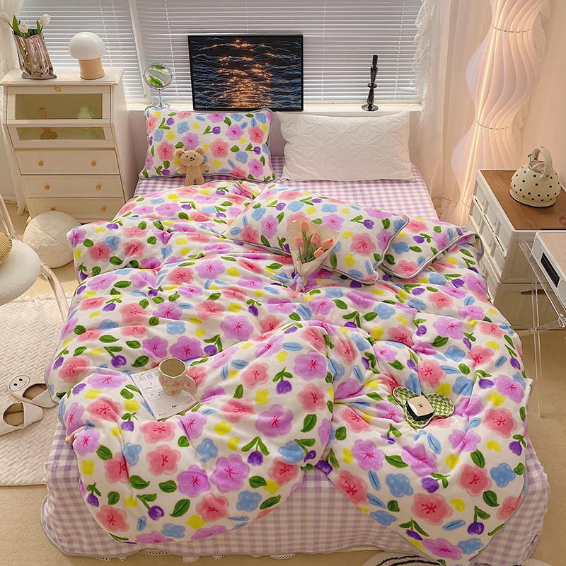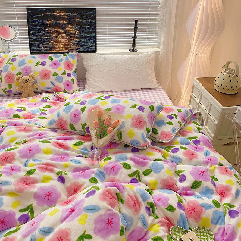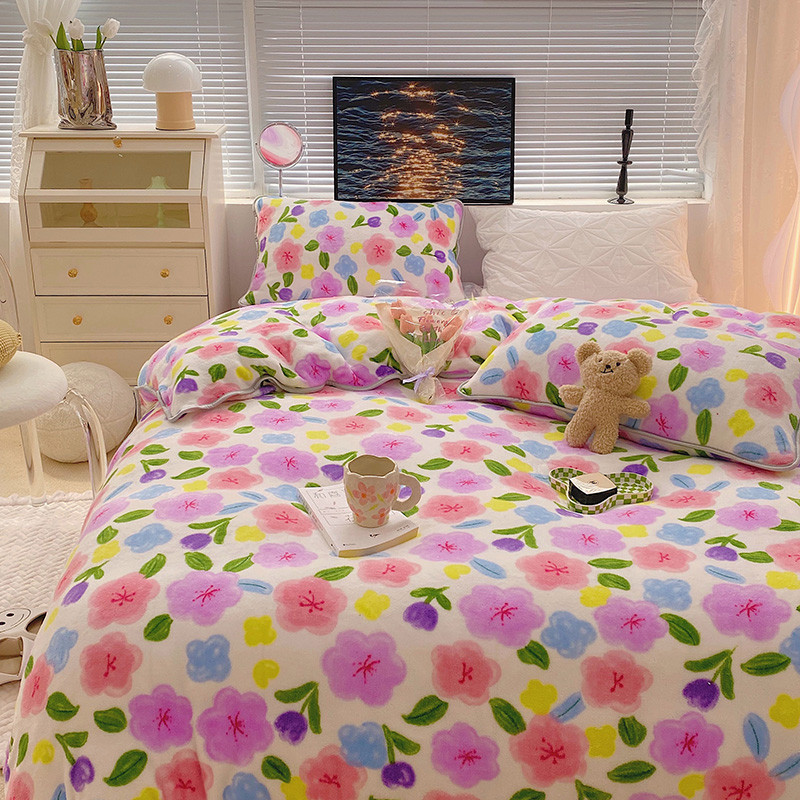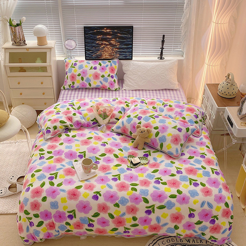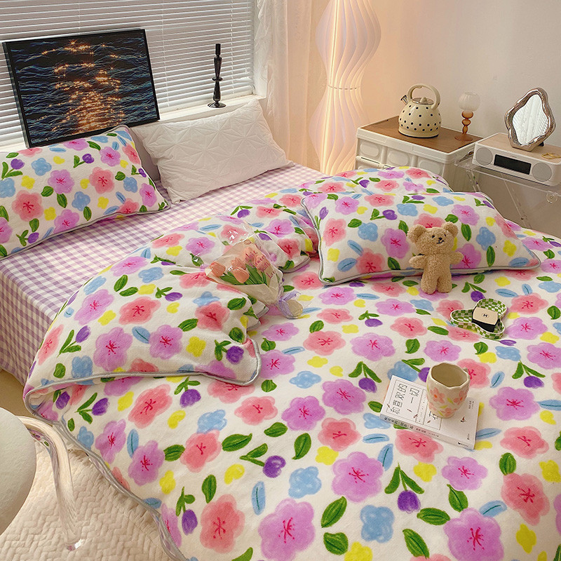 顾里2021新款ins韩国高端保暖牛奶绒四件套 花花世界