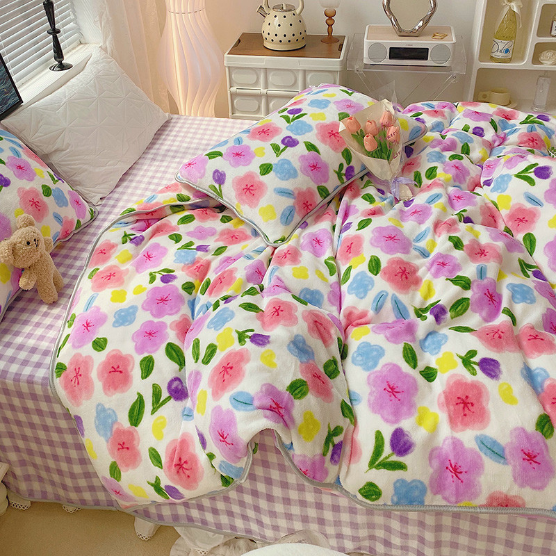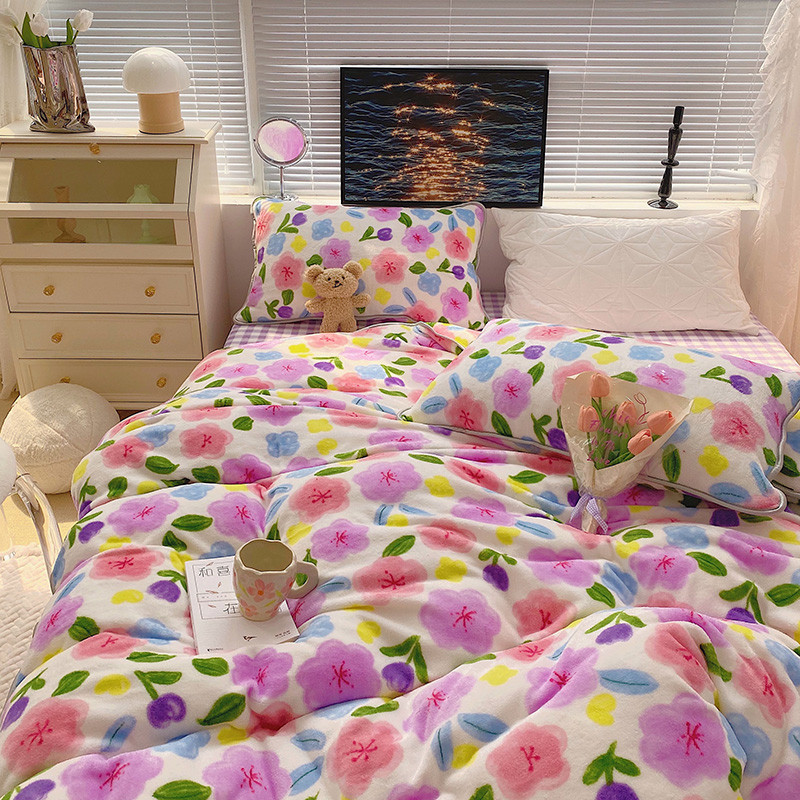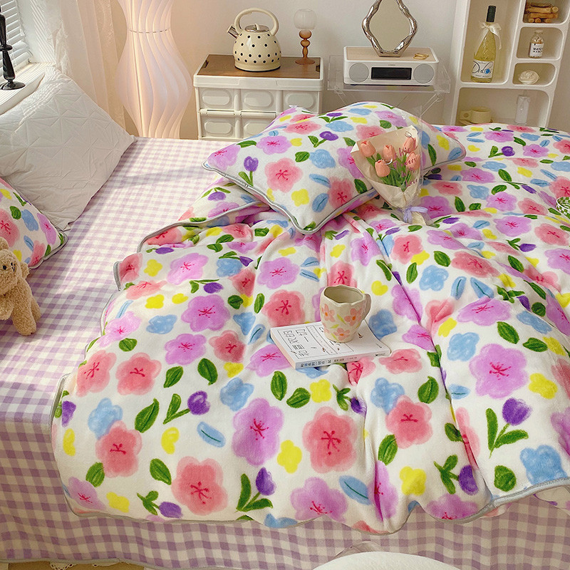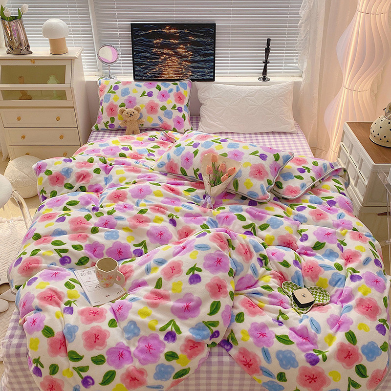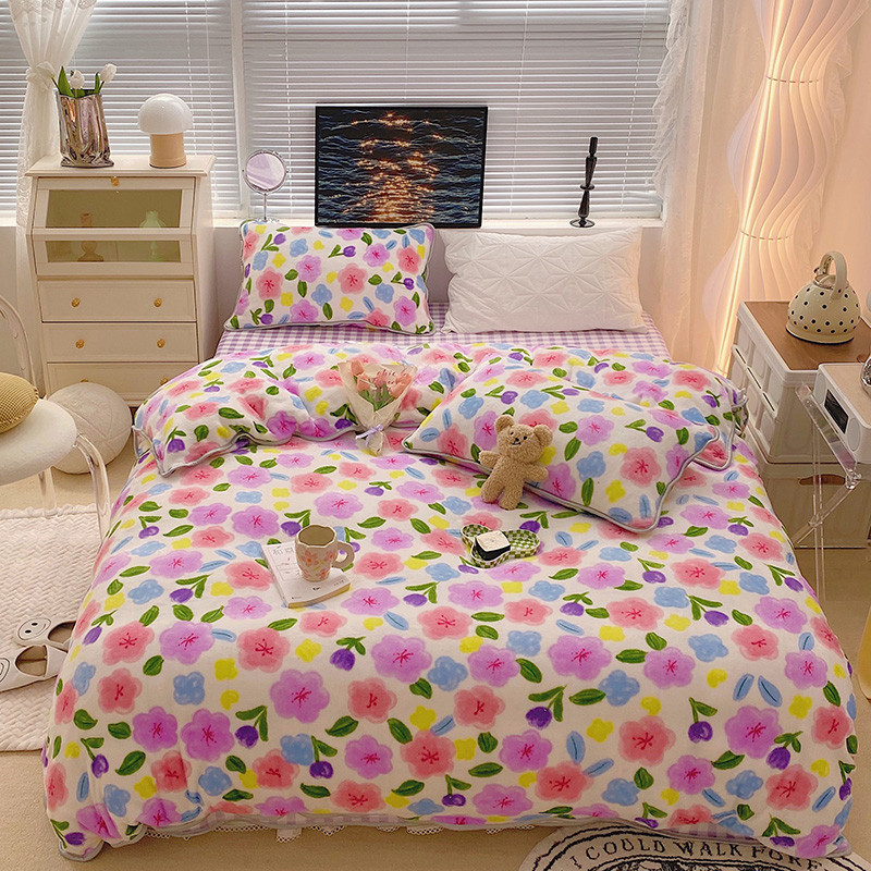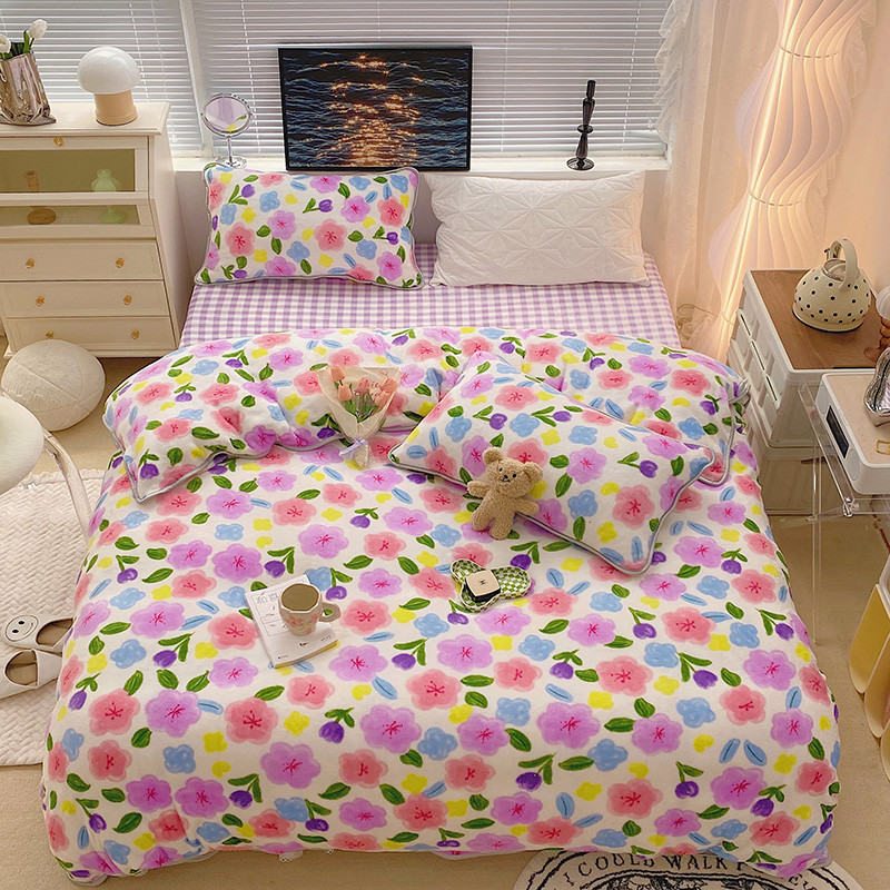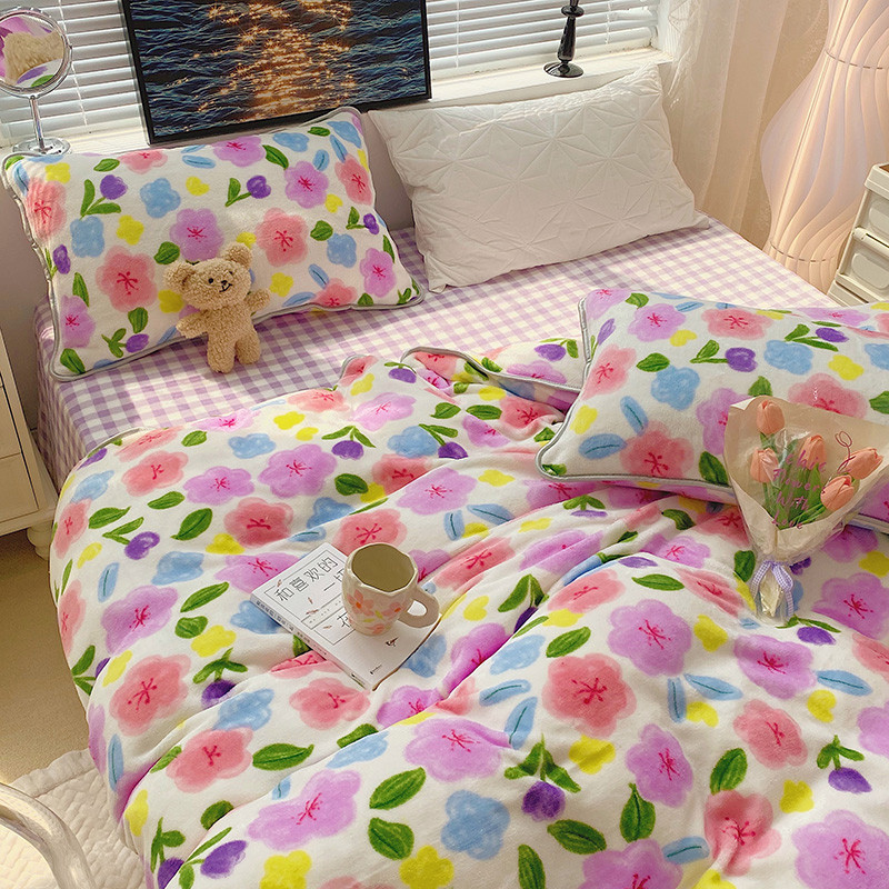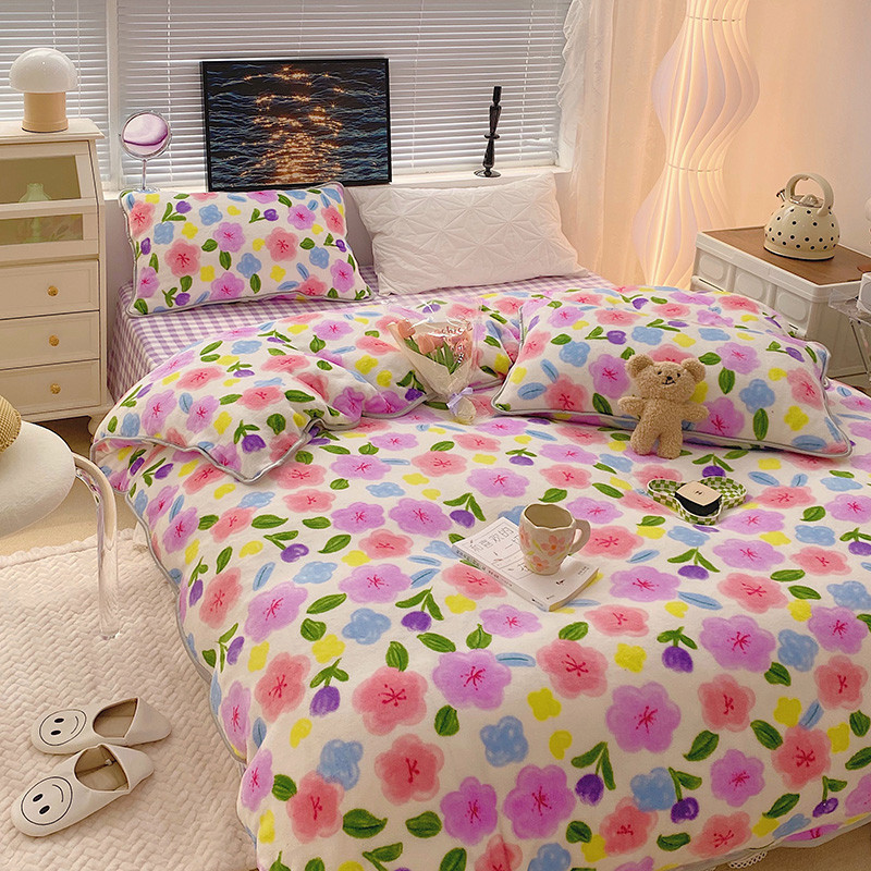 顾里2021新款ins韩国高端保暖牛奶绒四件套 花花世界