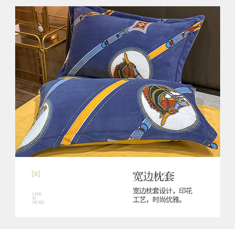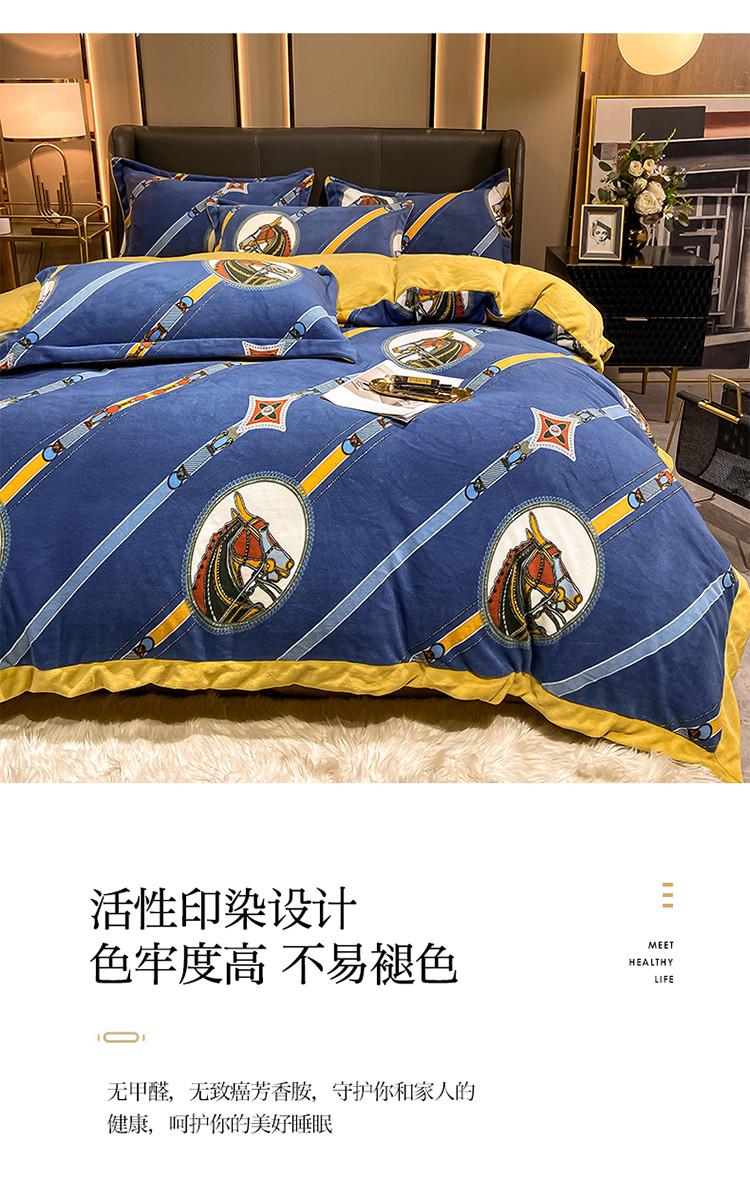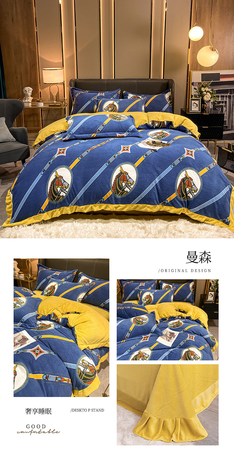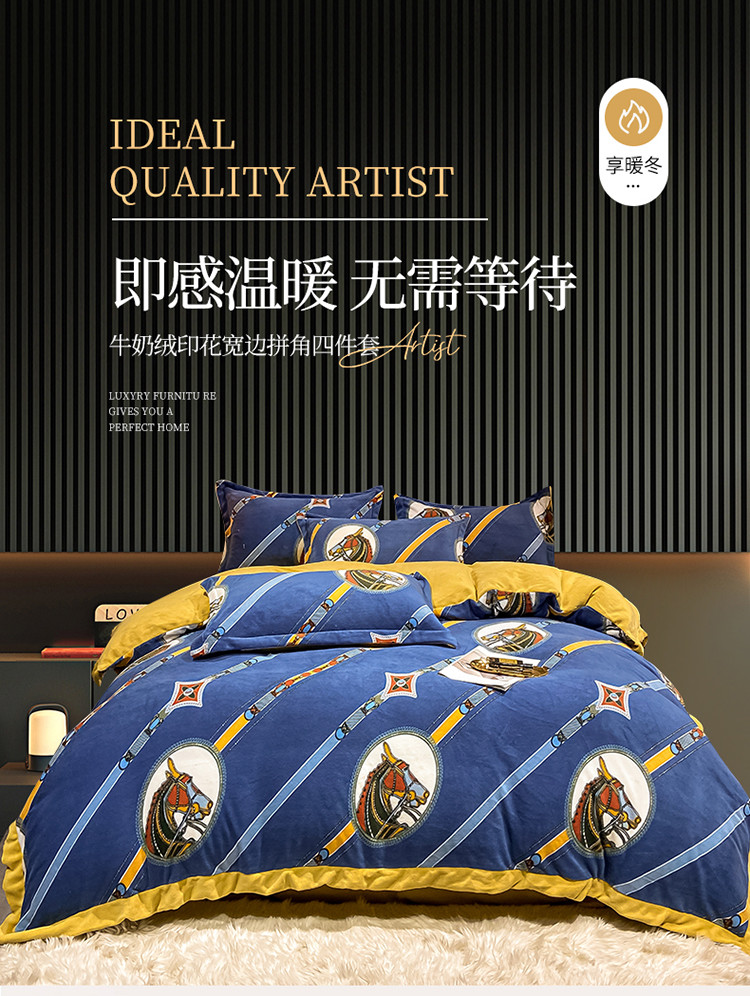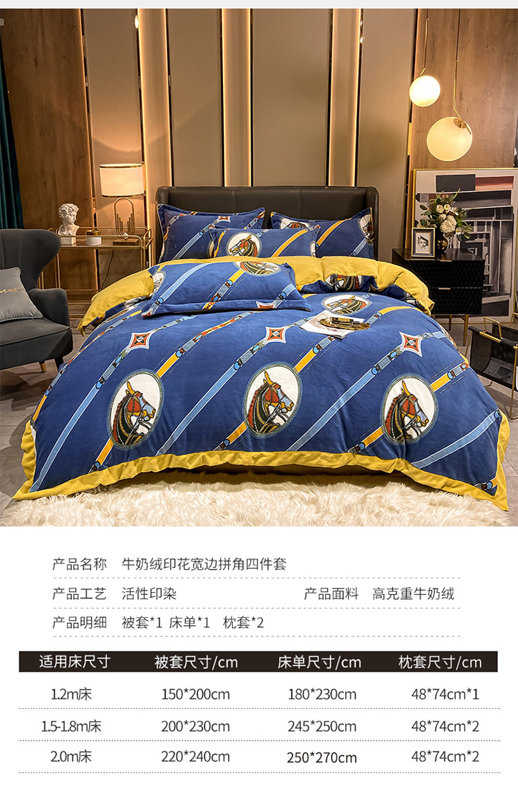 商品名称:眠帛 2021新款牛奶绒印花宽边拼角四件套 曼森