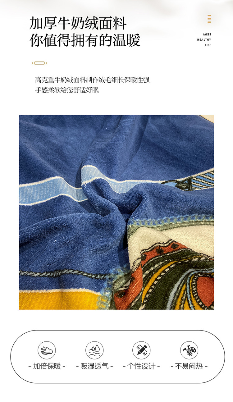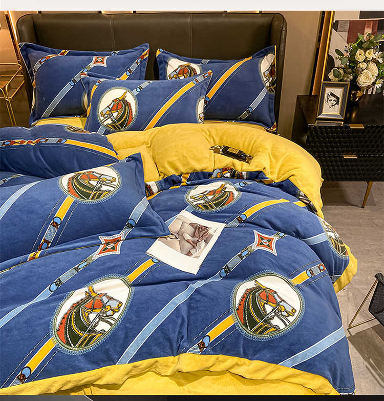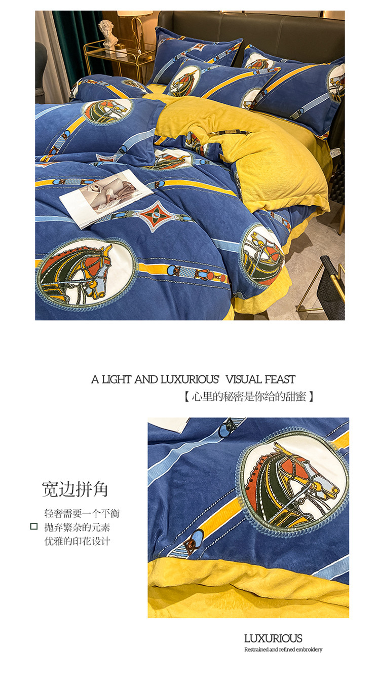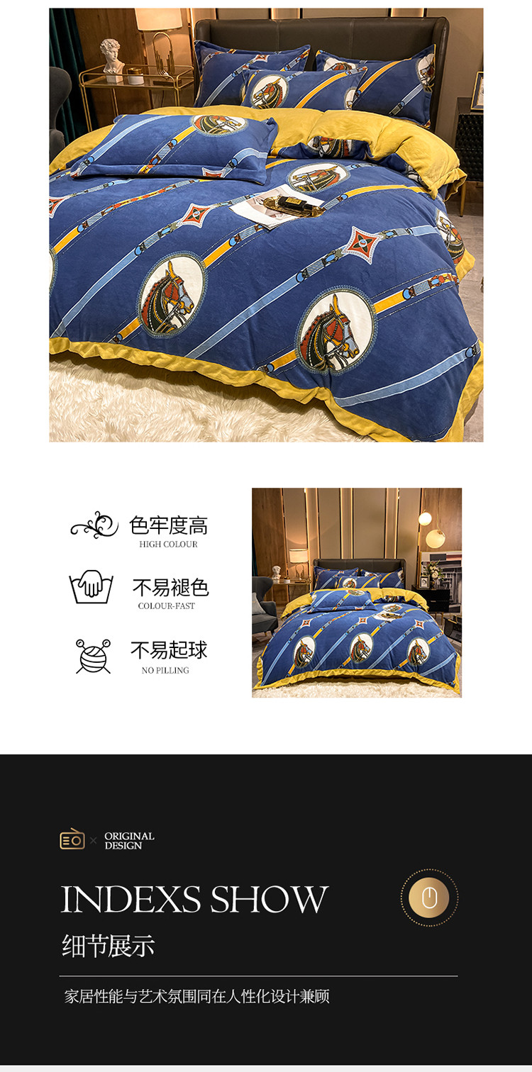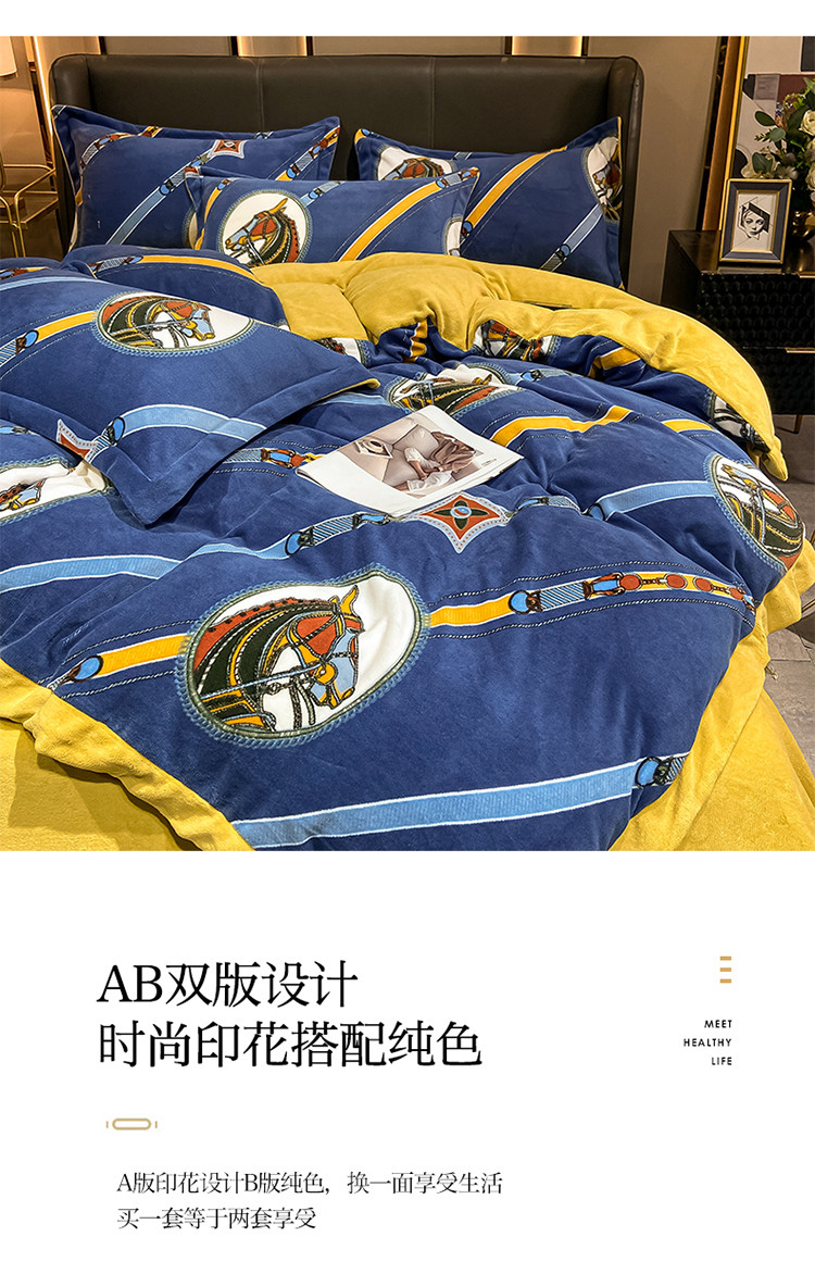 商品名称:眠帛 2021新款牛奶绒印花宽边拼角四件套 曼森