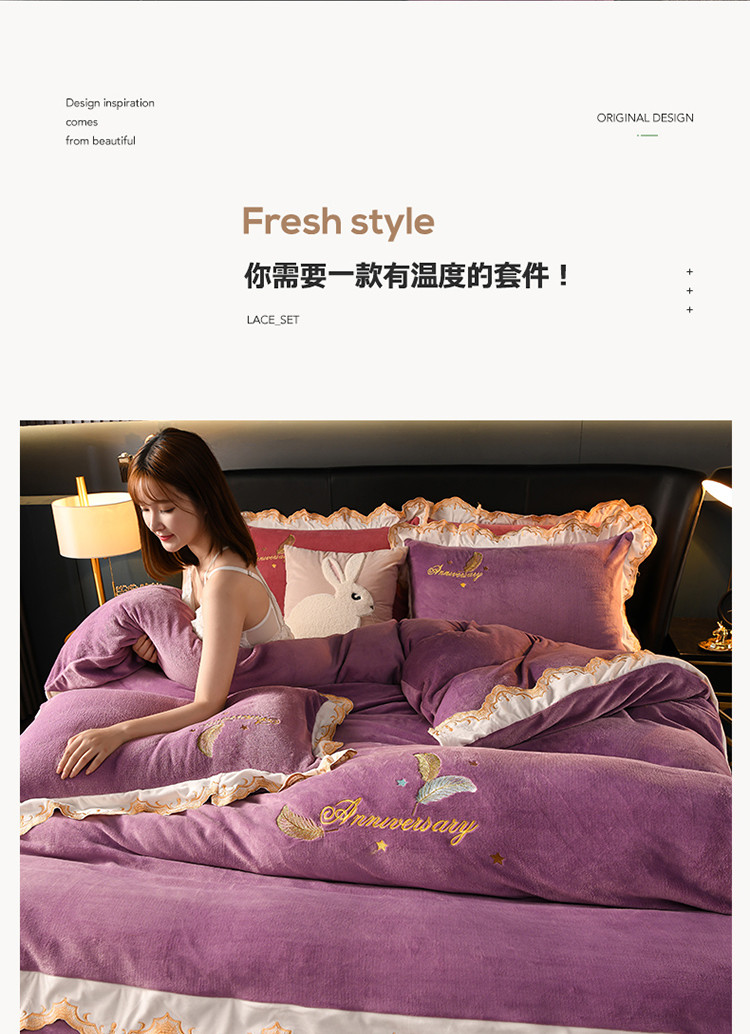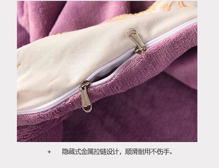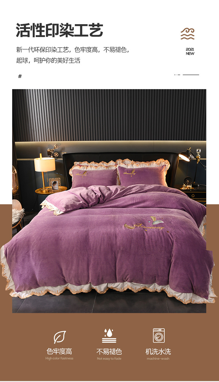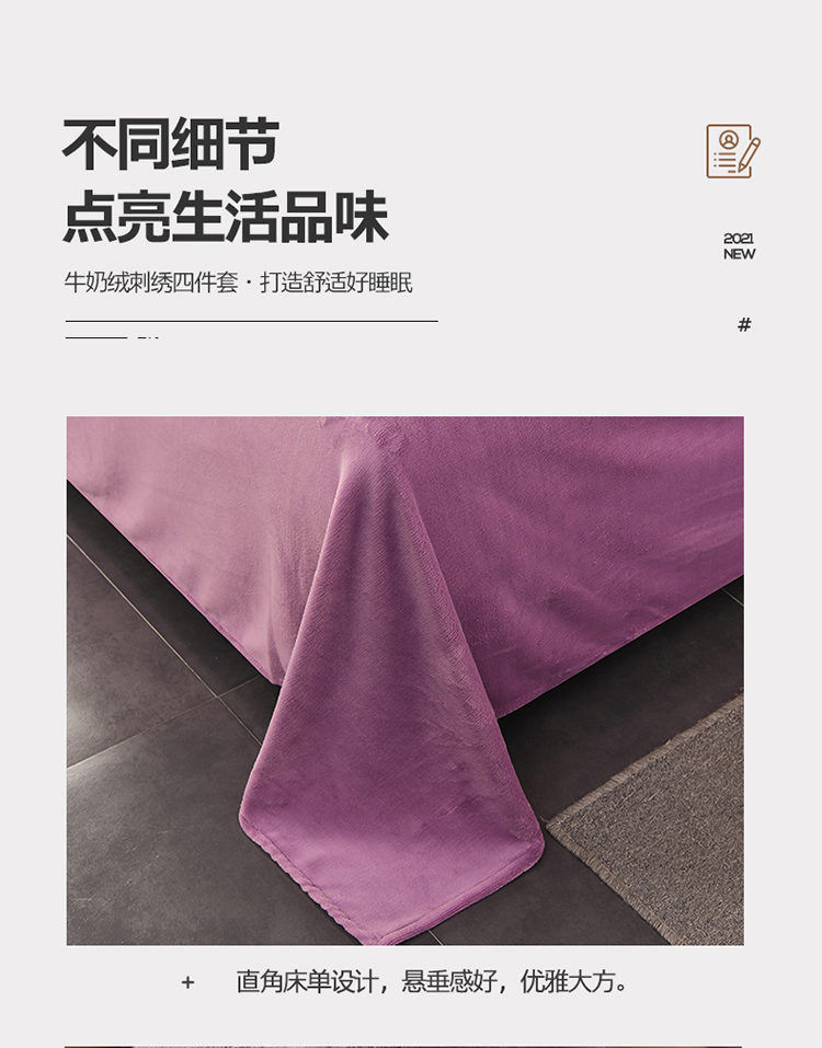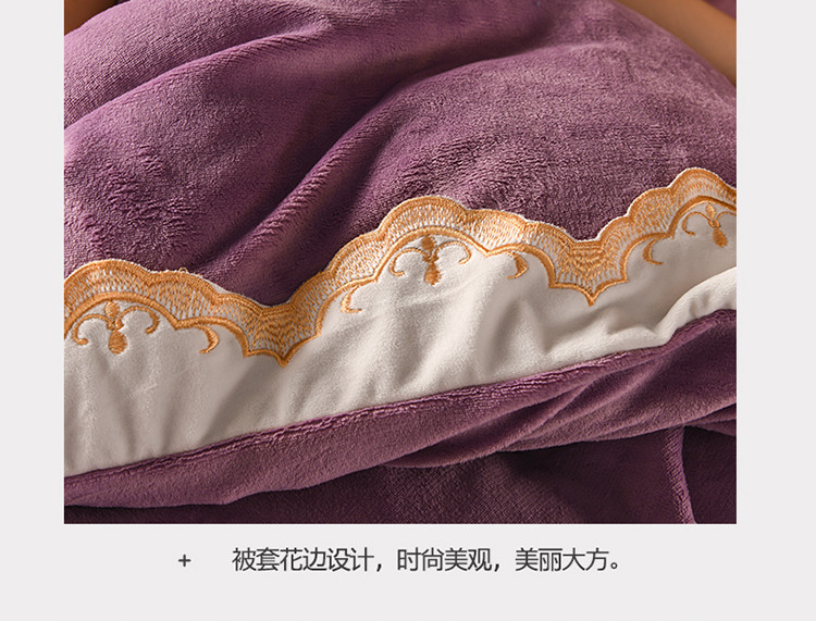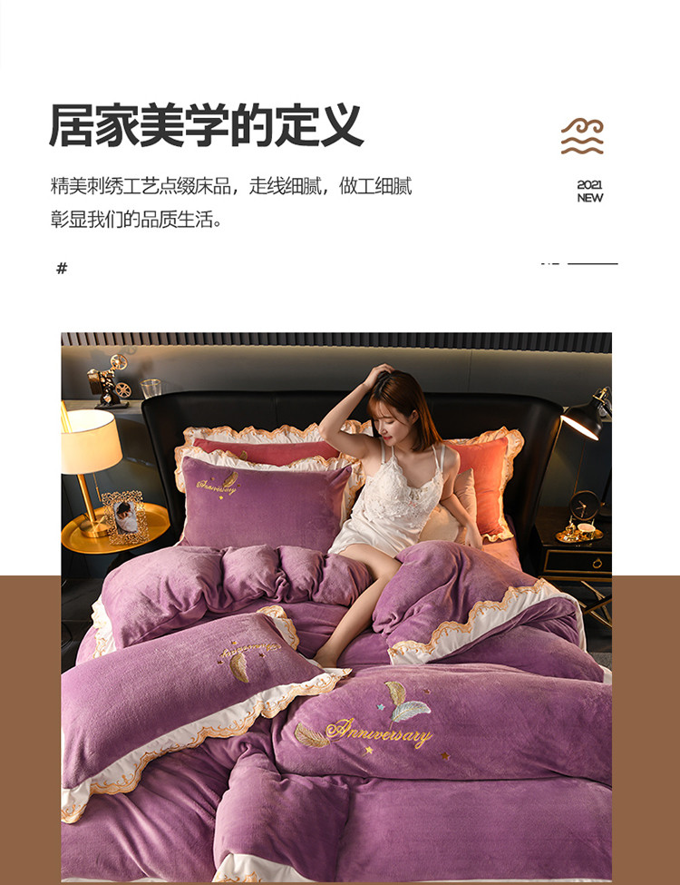 眠帛家居 2021新款秋冬牛奶绒刺绣工艺四件套 羽毛-富贵紫