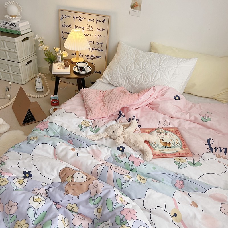 (总)星期八 2025新款全棉双层纱花边豆豆被四件套,夕雾,彩色蝴蝶结,丁香,风铃,狗狗乐园,蝴蝶结蓝,快乐狗狗,玫瑰,莫奈,木马,森林兔,碎花兔,小王子,小樱桃,紫鸢,组合
