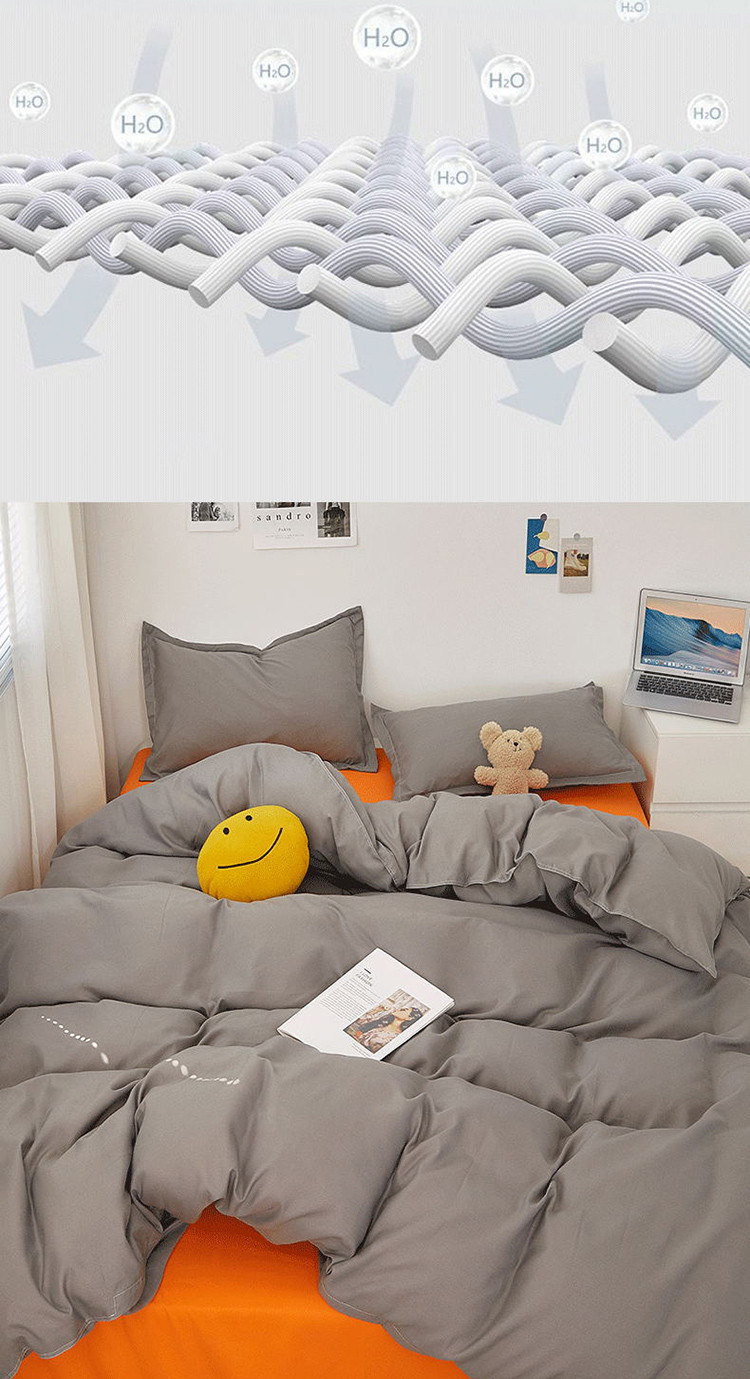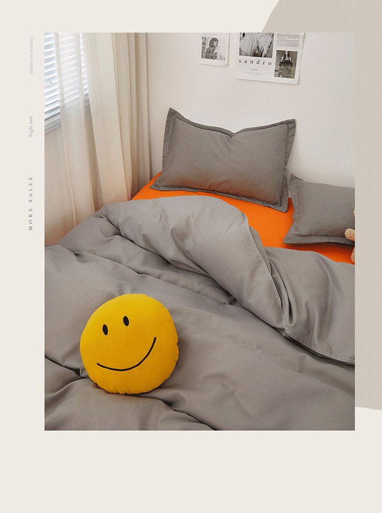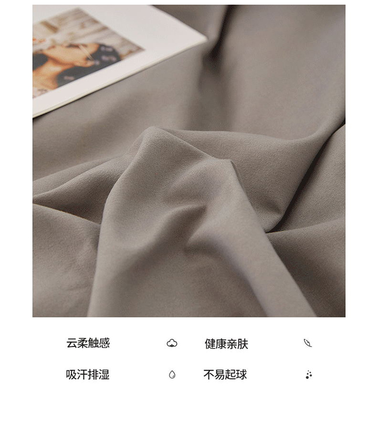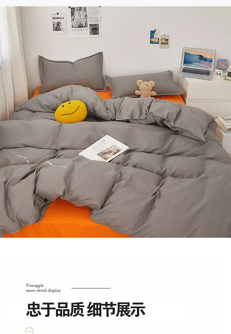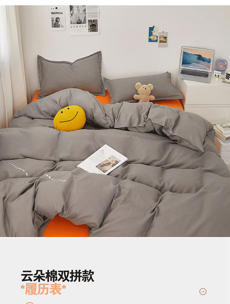 贝拉梦家纺 2021新款云朵棉亲肤纯色+双拼四件套 浅灰桔