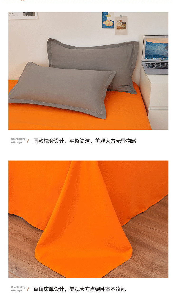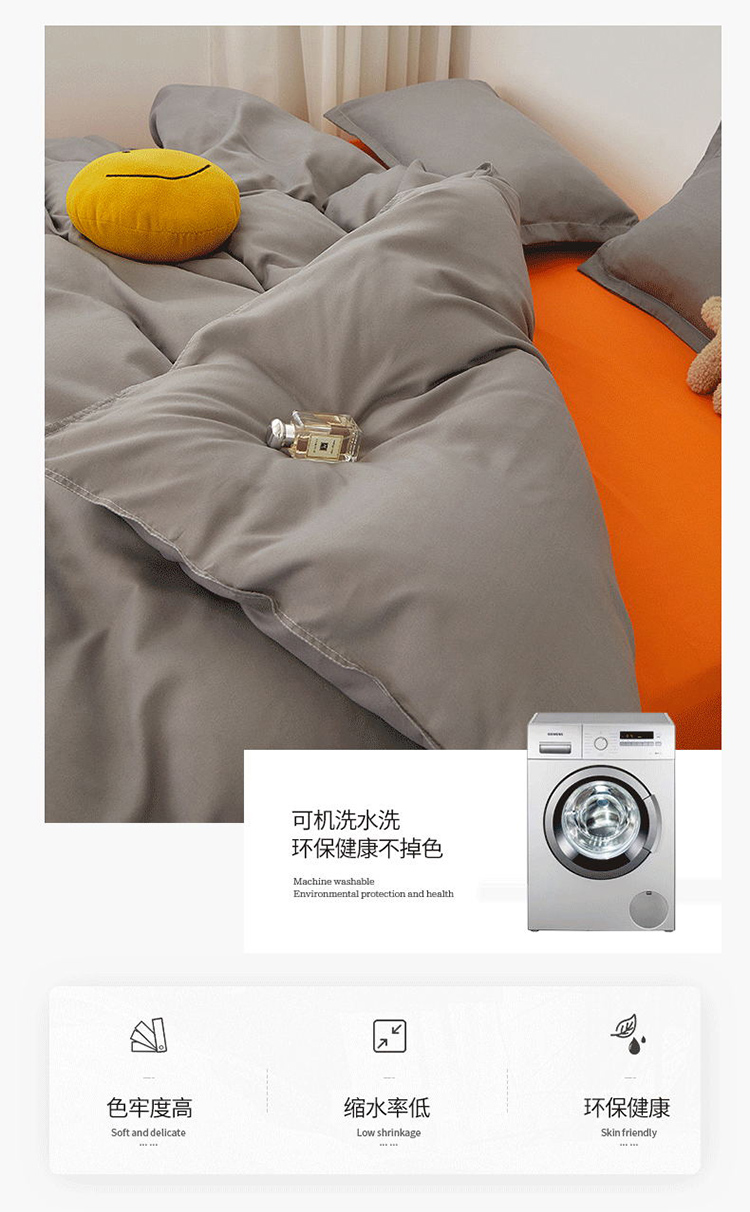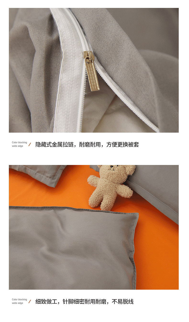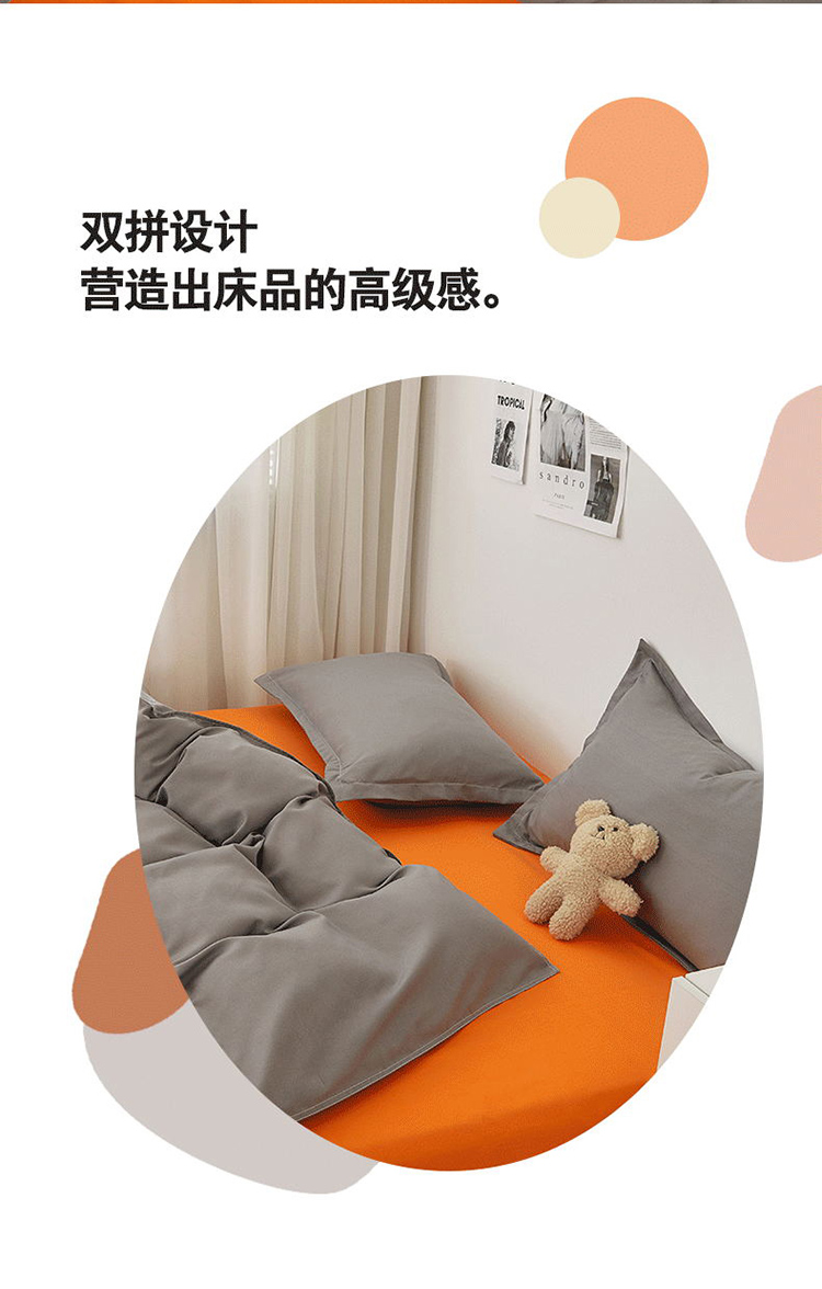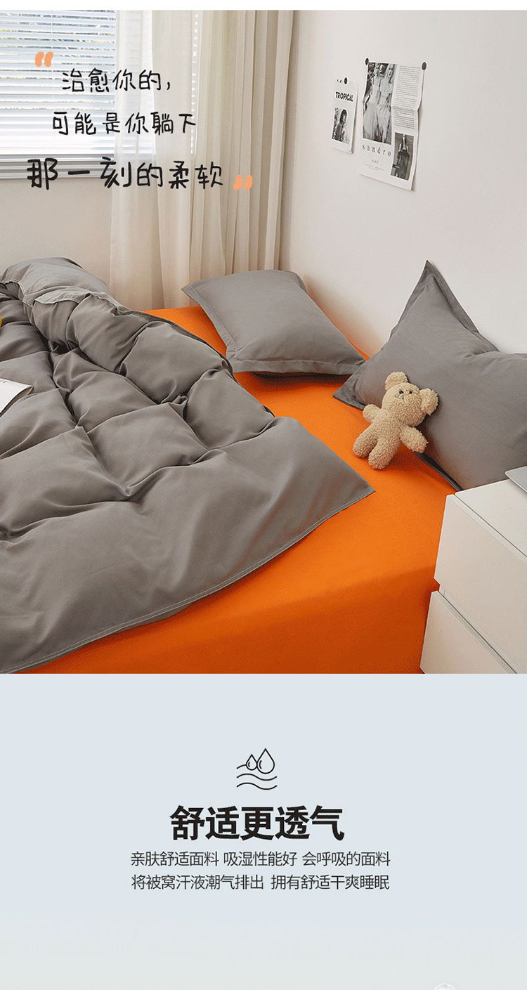 商品名称:贝拉梦家纺 2021新款云朵棉亲肤纯色+双拼四件套 浅灰桔