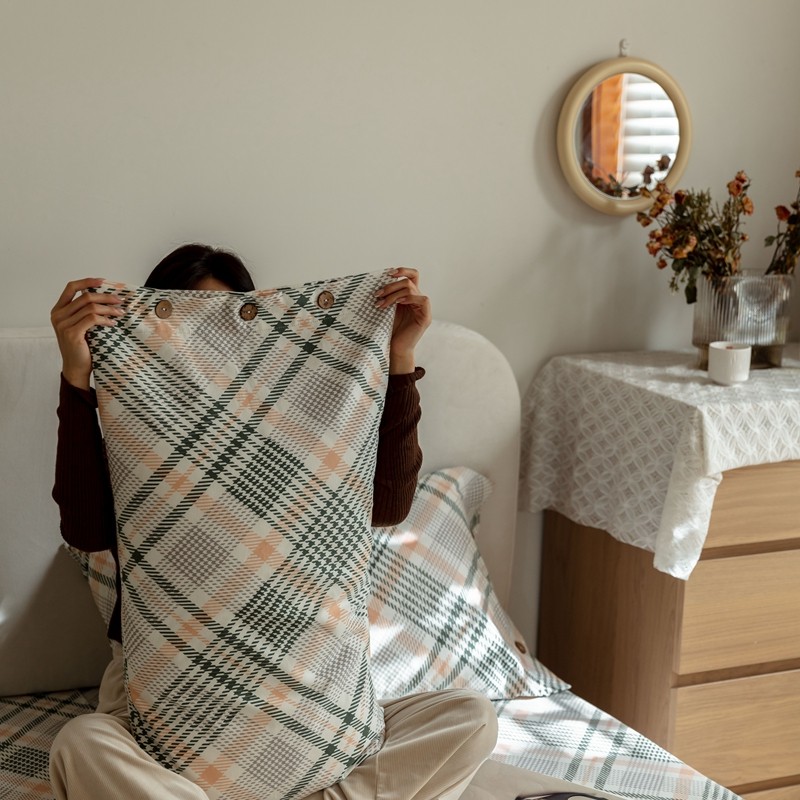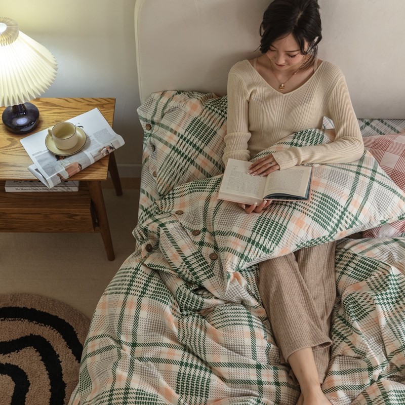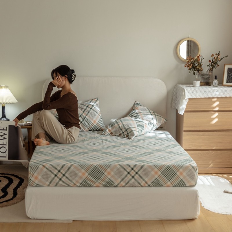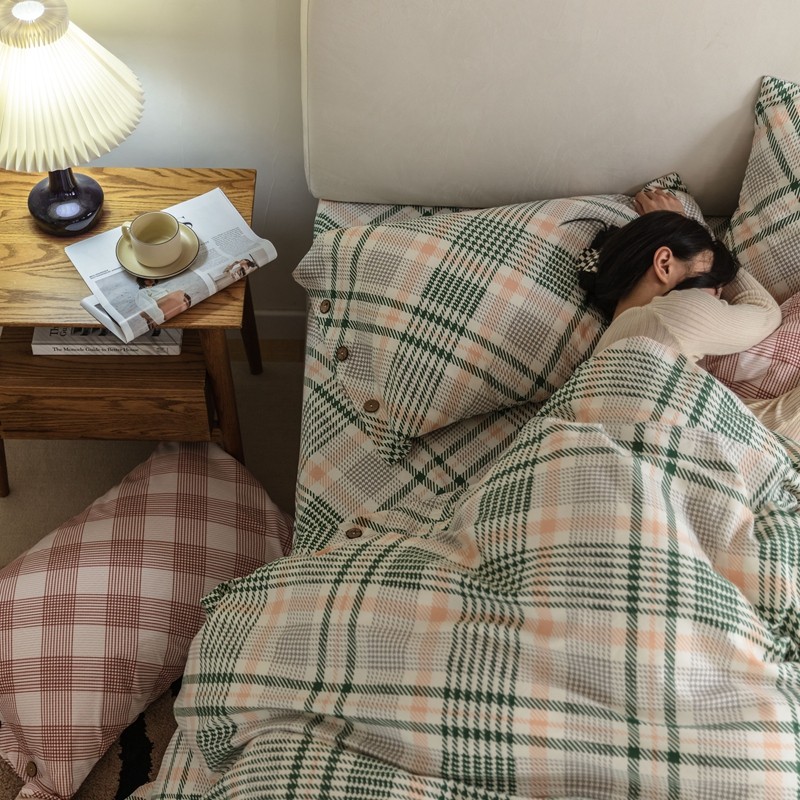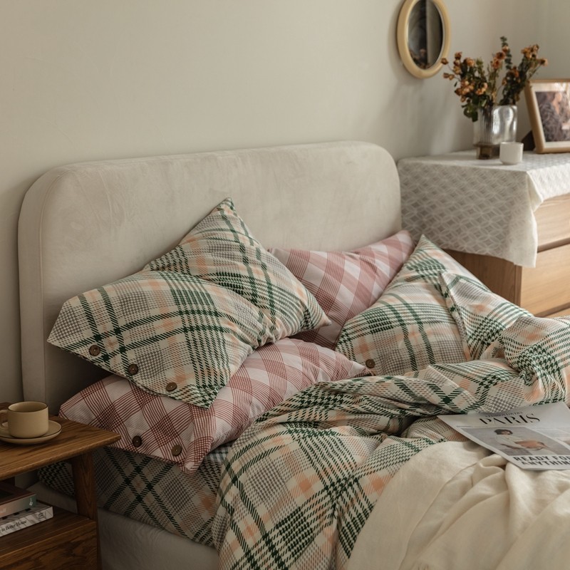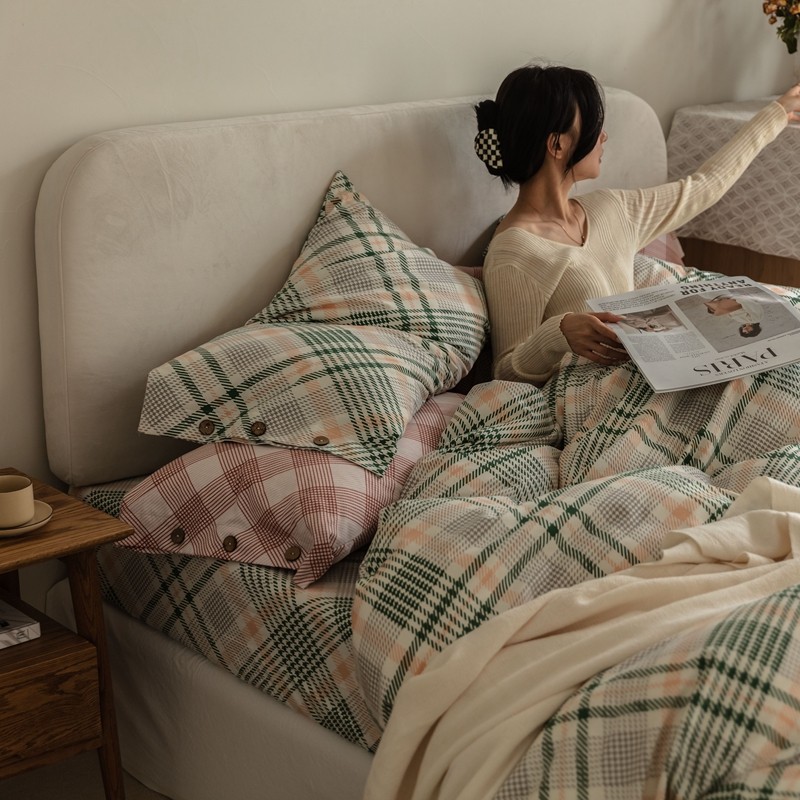当前位置: 91家纺网 > 商品网购 > 床品套件 > 四件套 > 全棉普通四件套 > 寐眠 2021新款全棉磨毛印花四件套 遇见-千鸟格绿