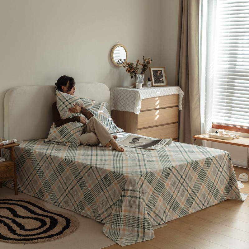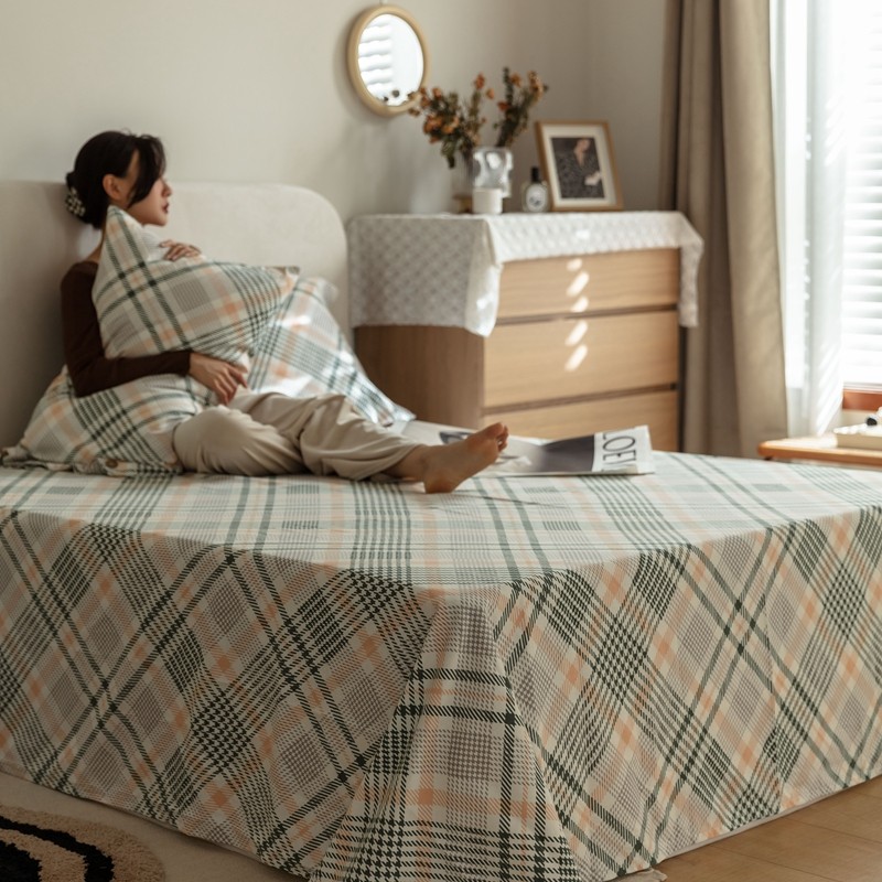 寐眠 2021新款全棉磨毛印花床单 遇见-千鸟格绿