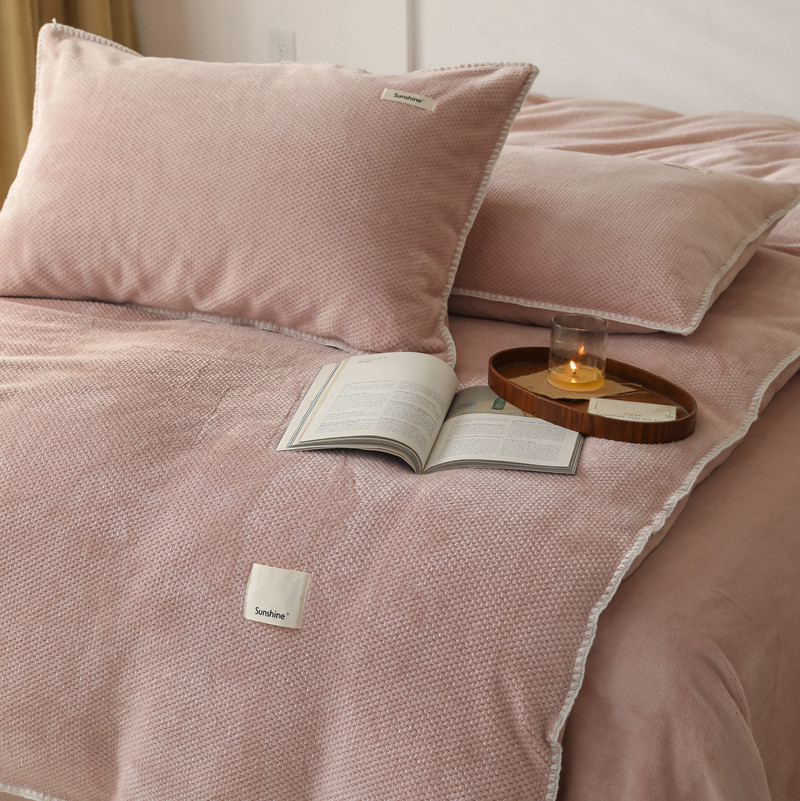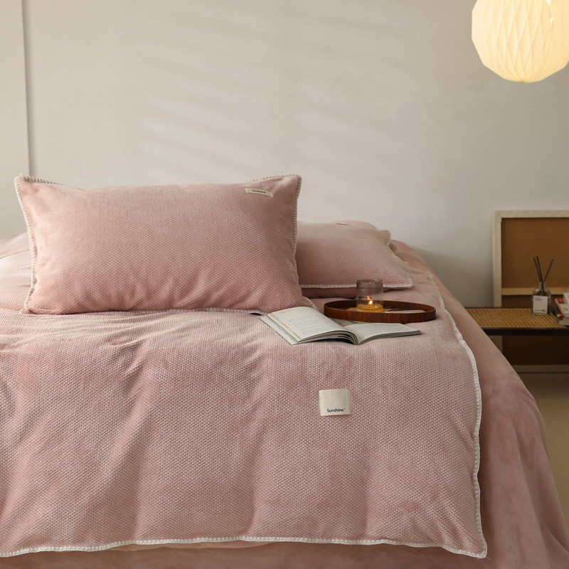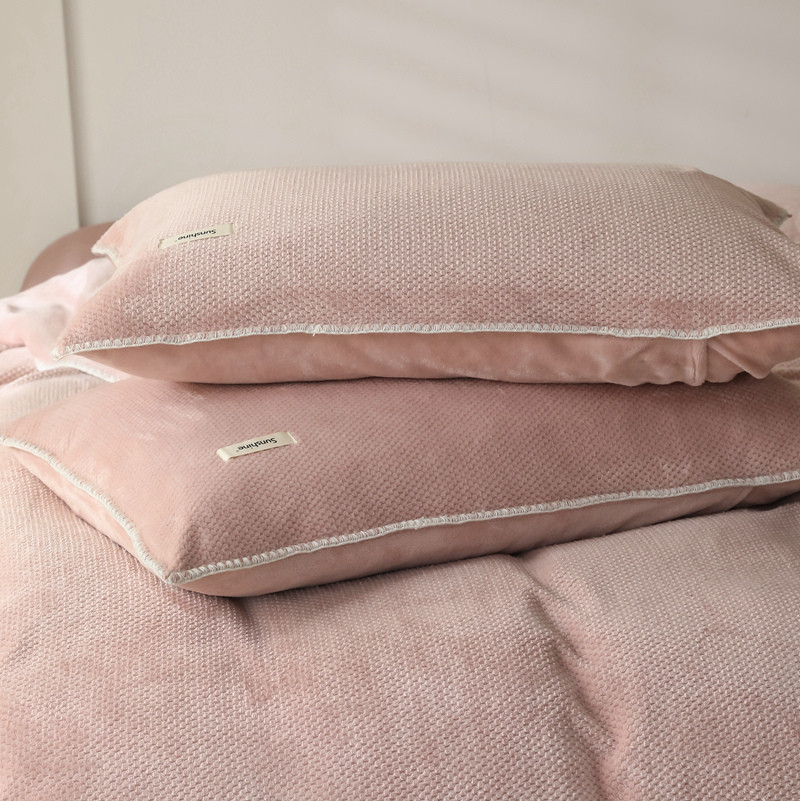 • 91家纺网 家纺一手货源 找家纺 富瑞阁 2024新款太阳格加厚提花牛奶绒枕套对装 烟粉