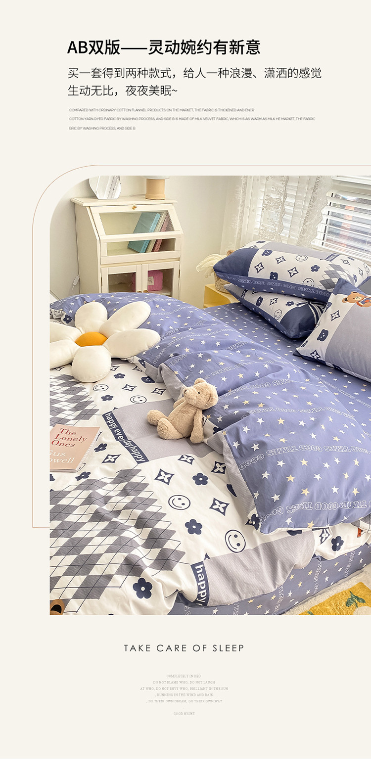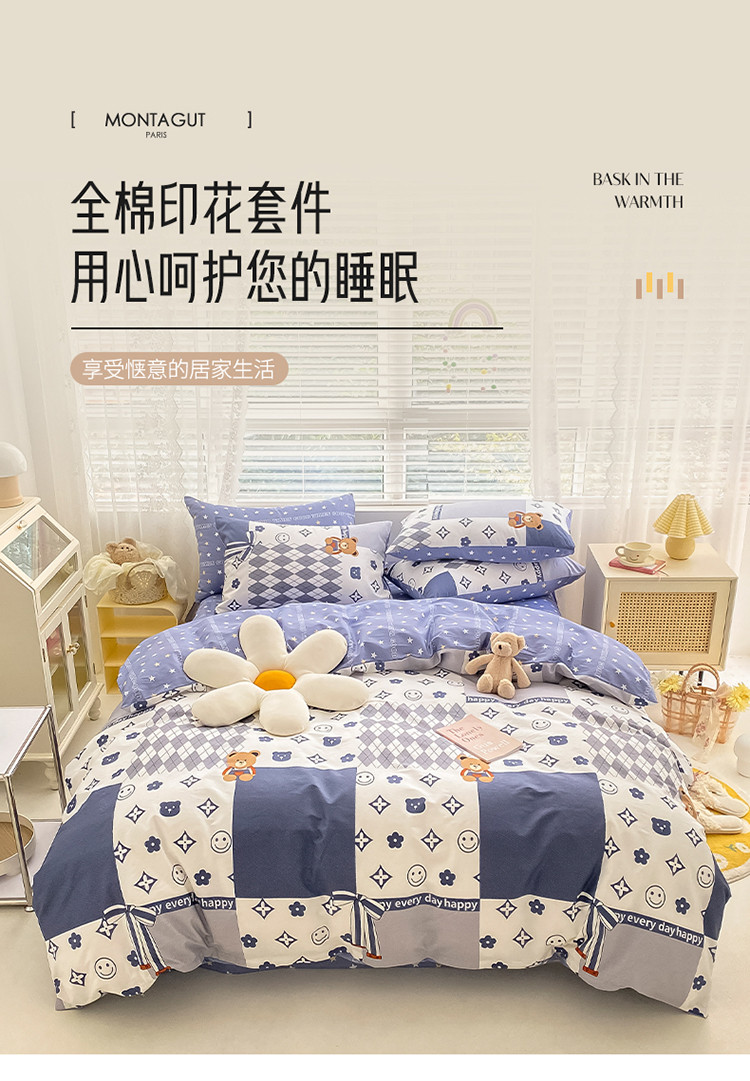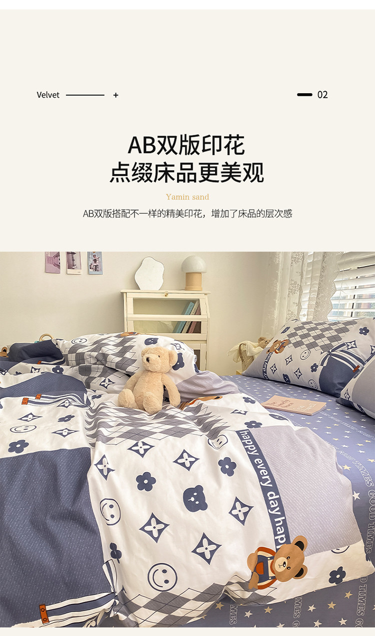 (总)曼之夏 2025新款原棉加厚磨毛印花四件套,比心,布鲁兔,春风十里,大都会,简兮,麦琪熊,麦语-灰,梦游记,眠时光,奇想,轻奢生活,塔维尔(米),甜心小熊,威斯丁,闲趣时光,意林(兰)