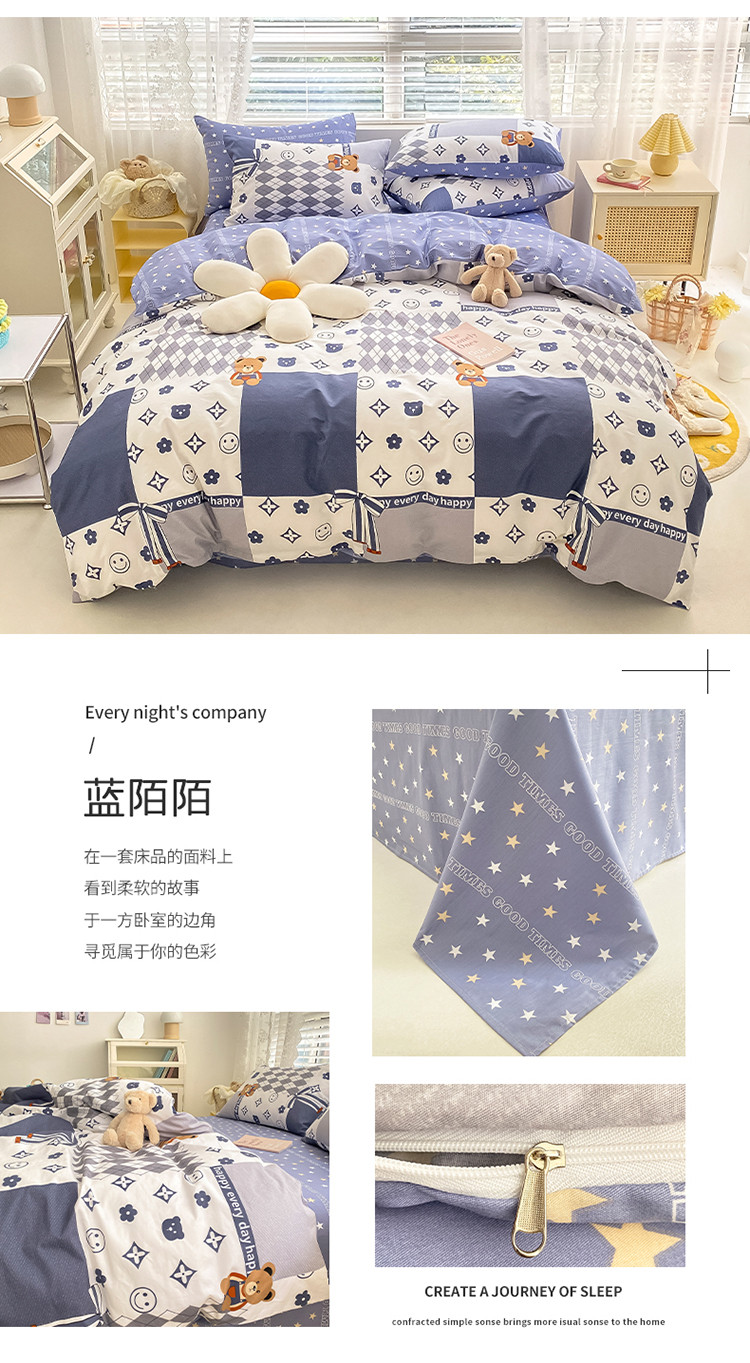 商品名称:曼之夏 2022新款全棉清新印花四件套 蓝陌陌