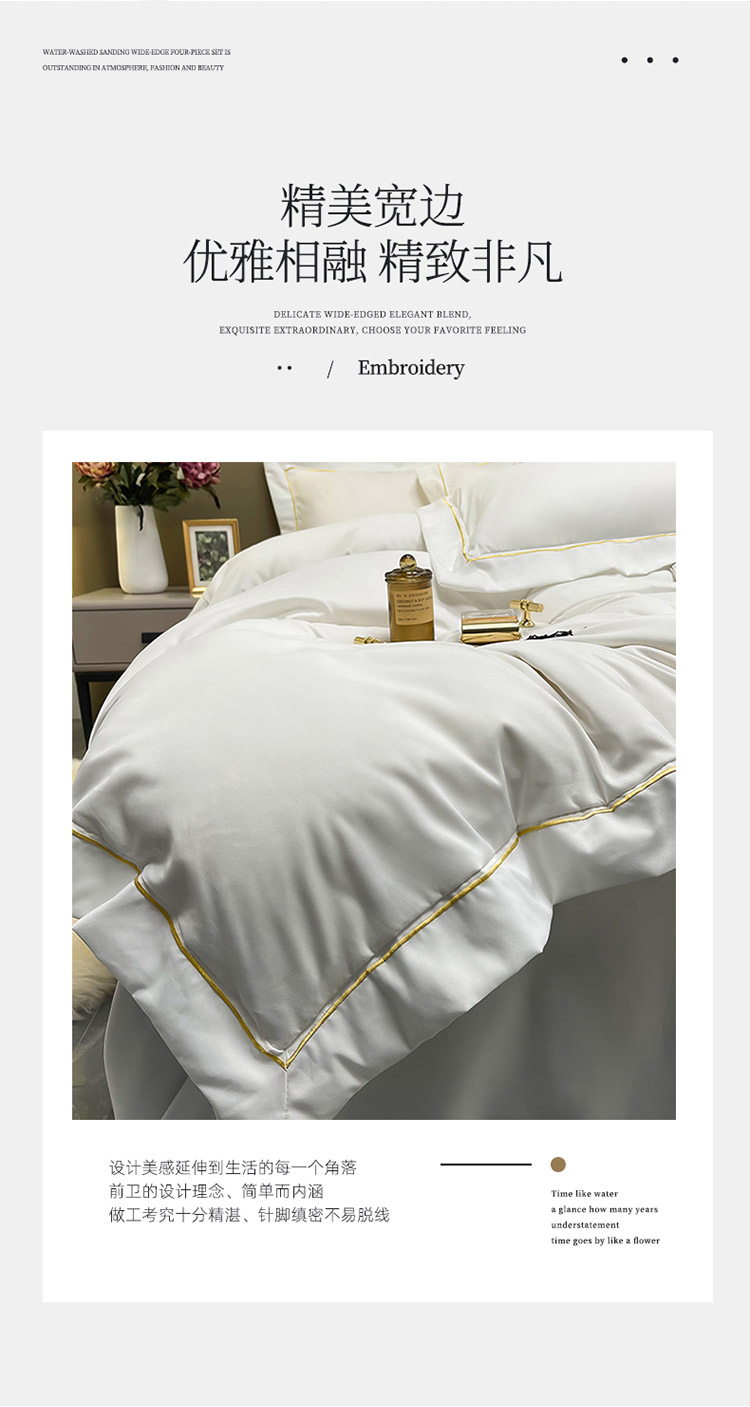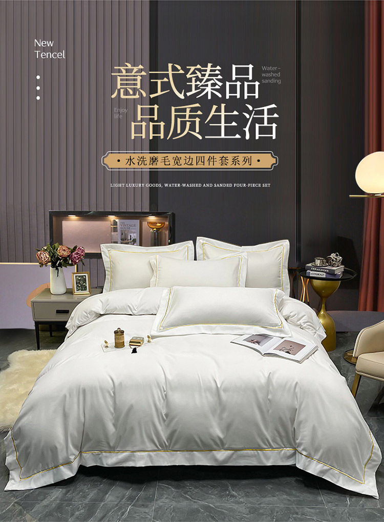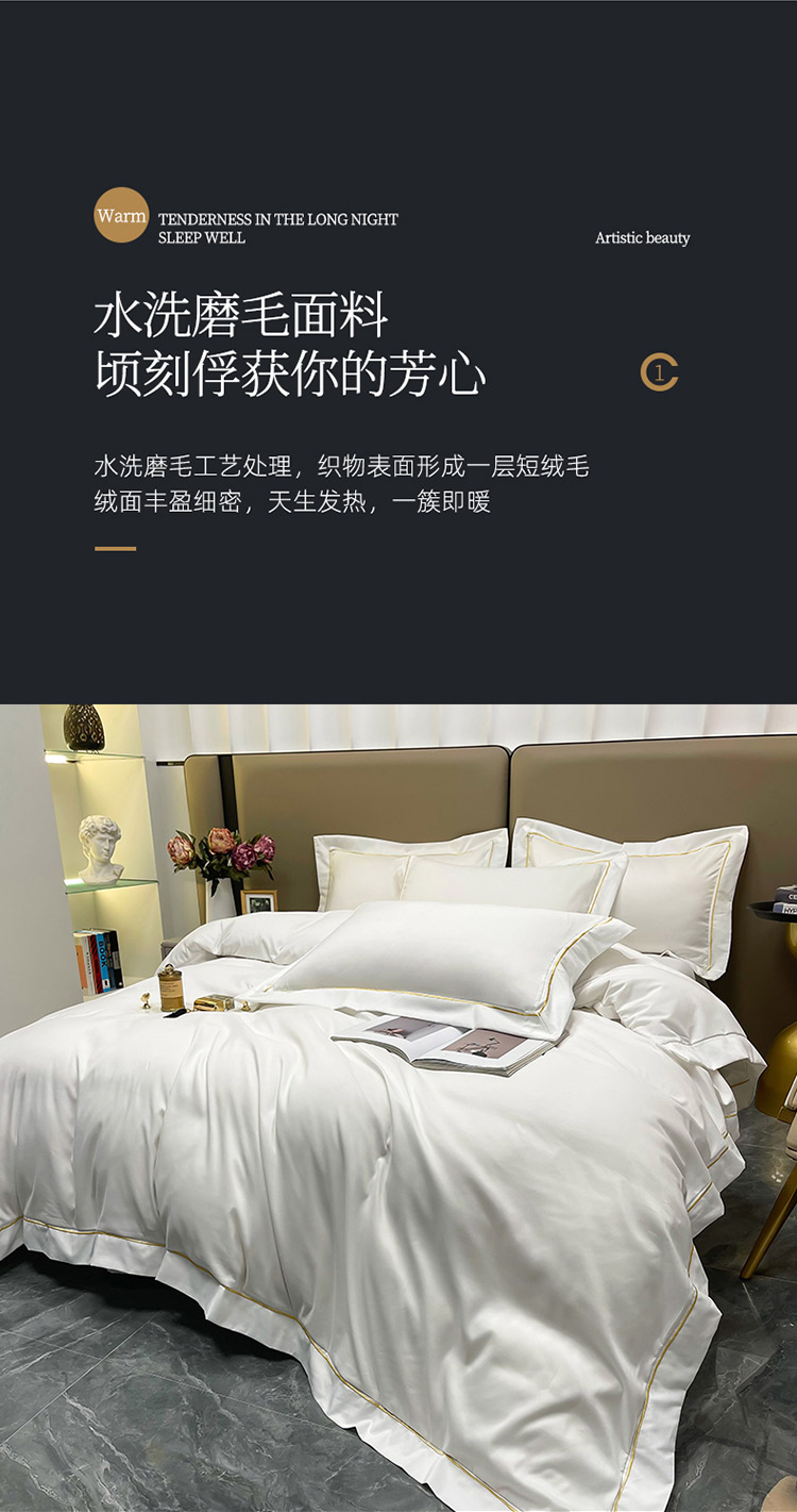 总千希家纺 2022新款高克重水洗棉磨毛酒店风简约四件套不起球