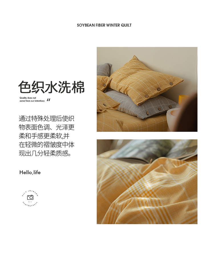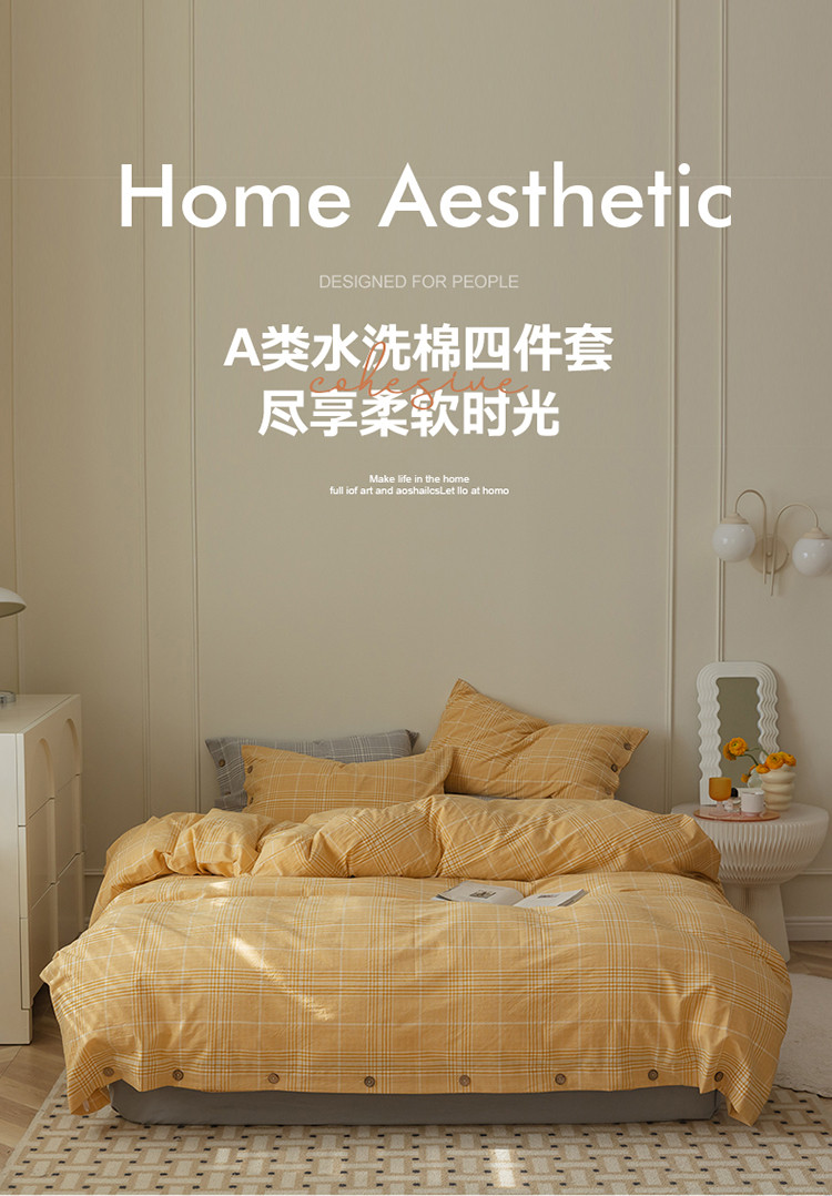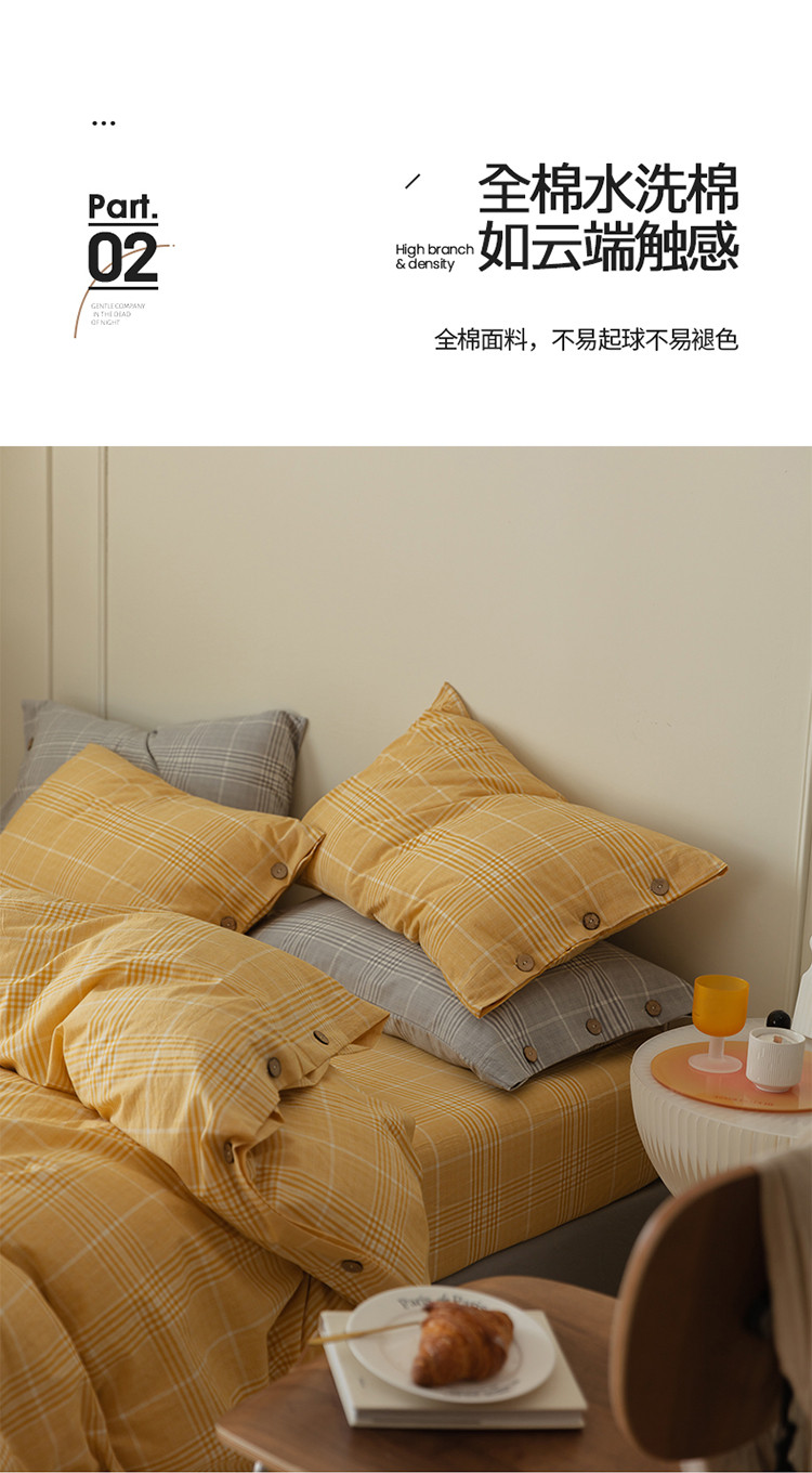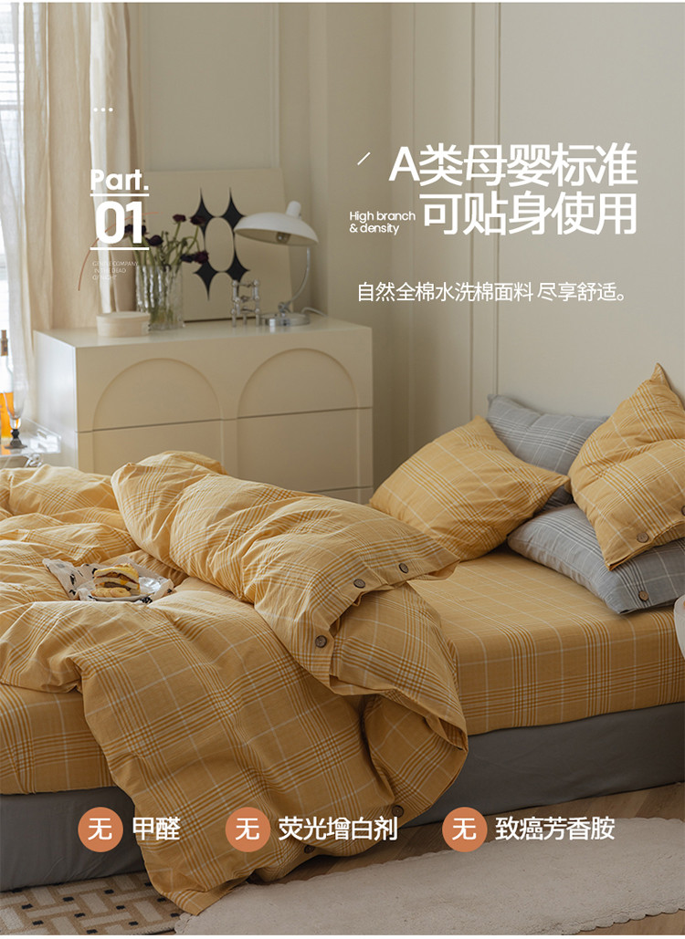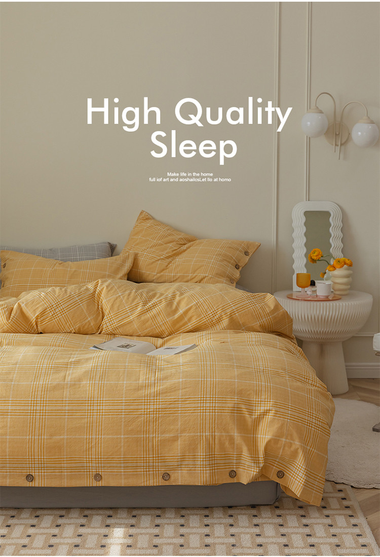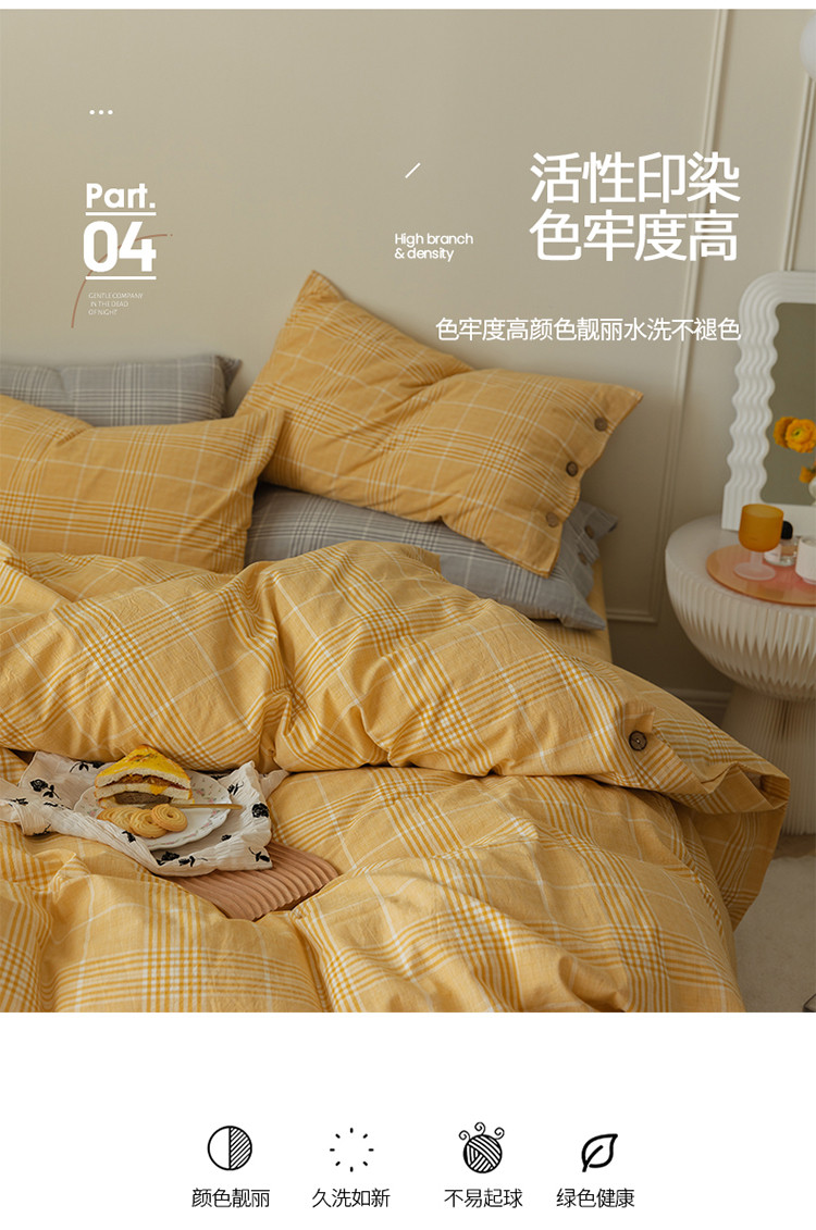当前位置: 91家纺网 > 商品网购 > 床品套件 > 四件套 > 水洗棉四件套 > 寐眠 22年A类水洗棉全棉纽扣款四件套 柠檬黄格纽扣款