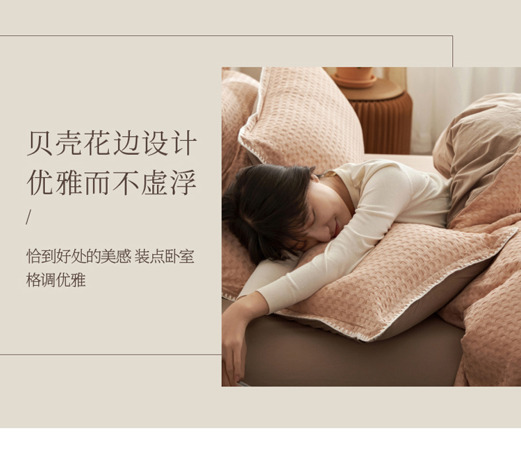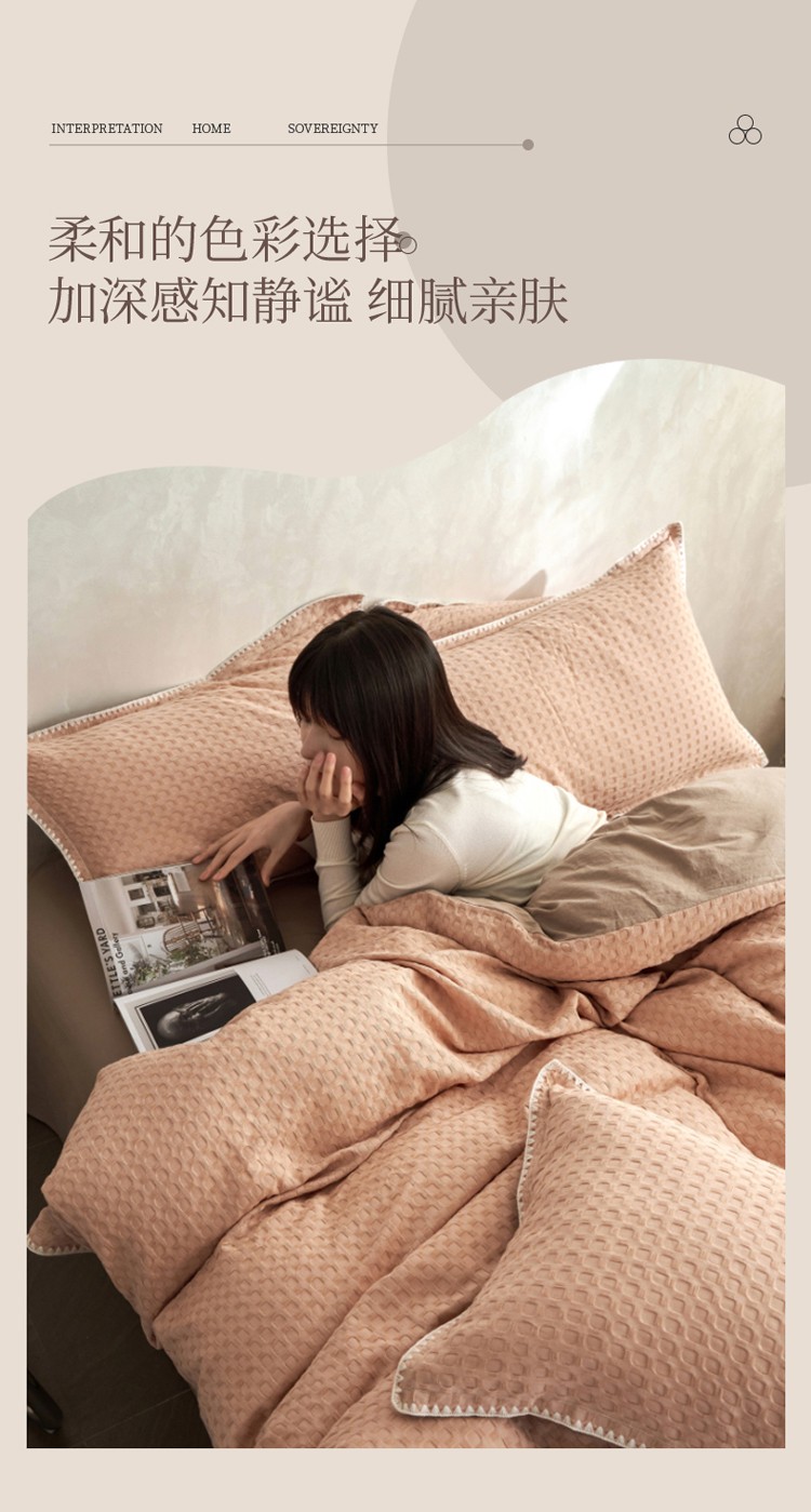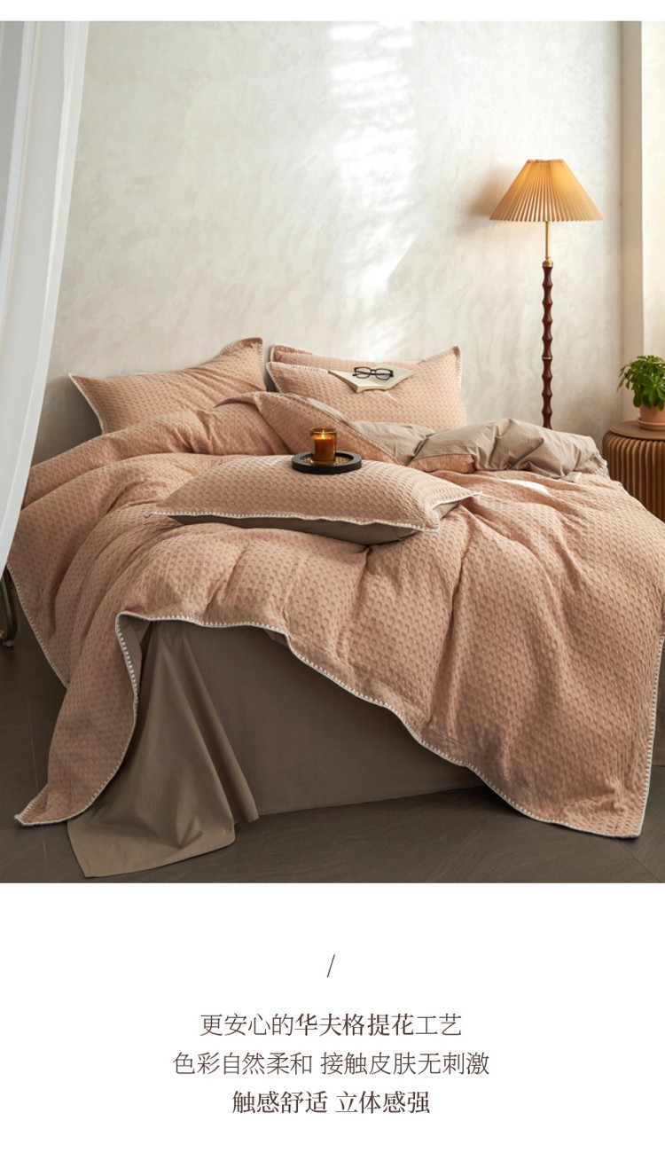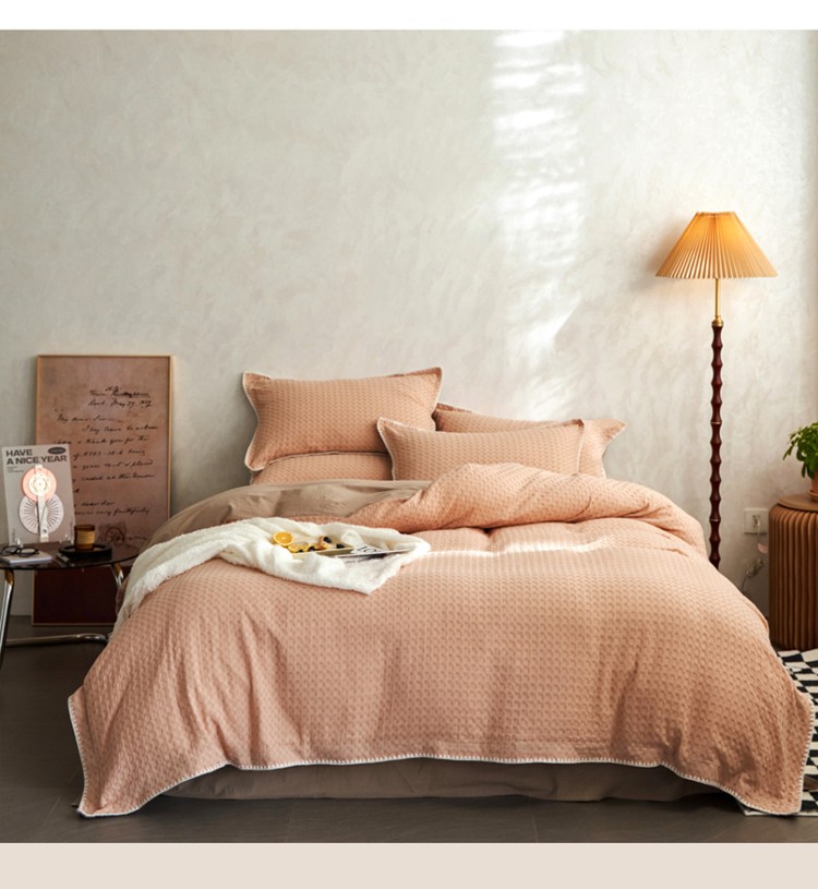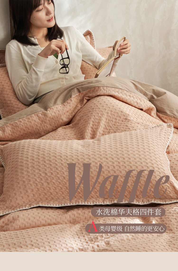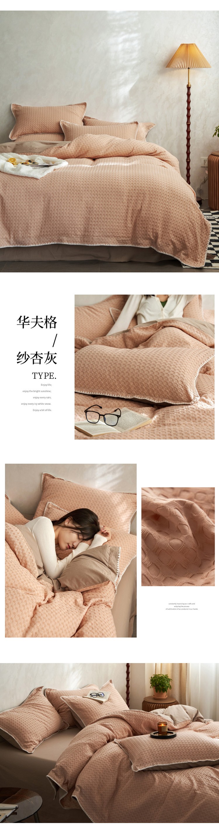 商品名称:风向标2022新款40s华夫格水洗棉四件套 华夫格-纱杏灰