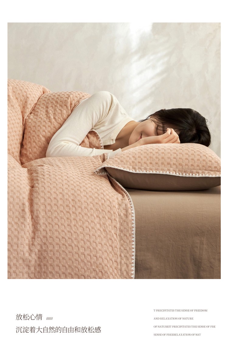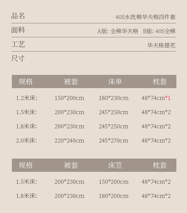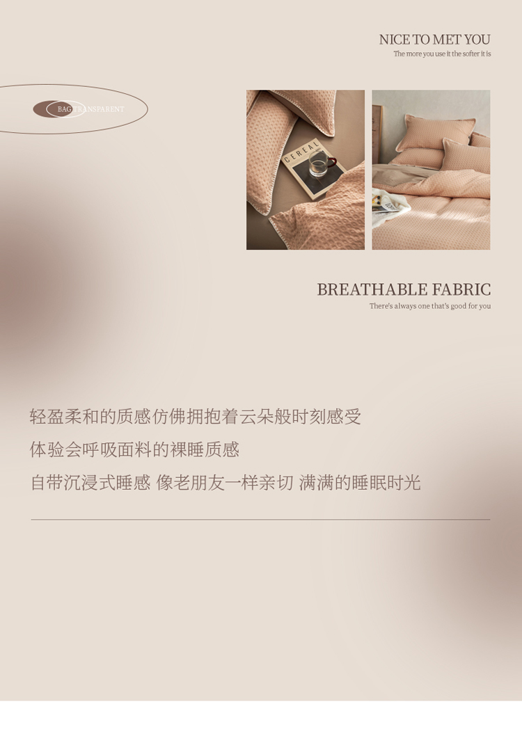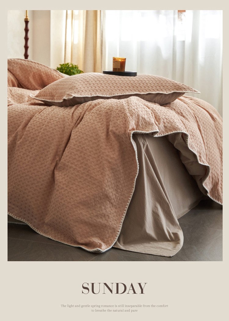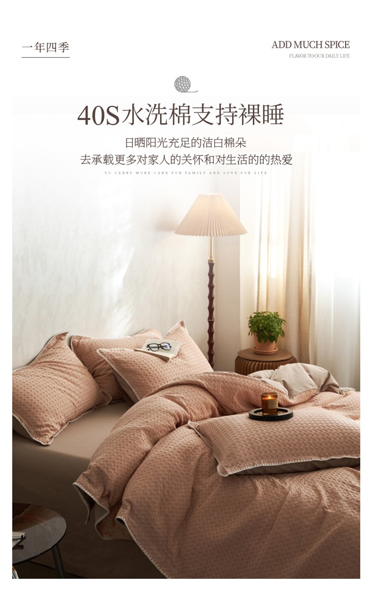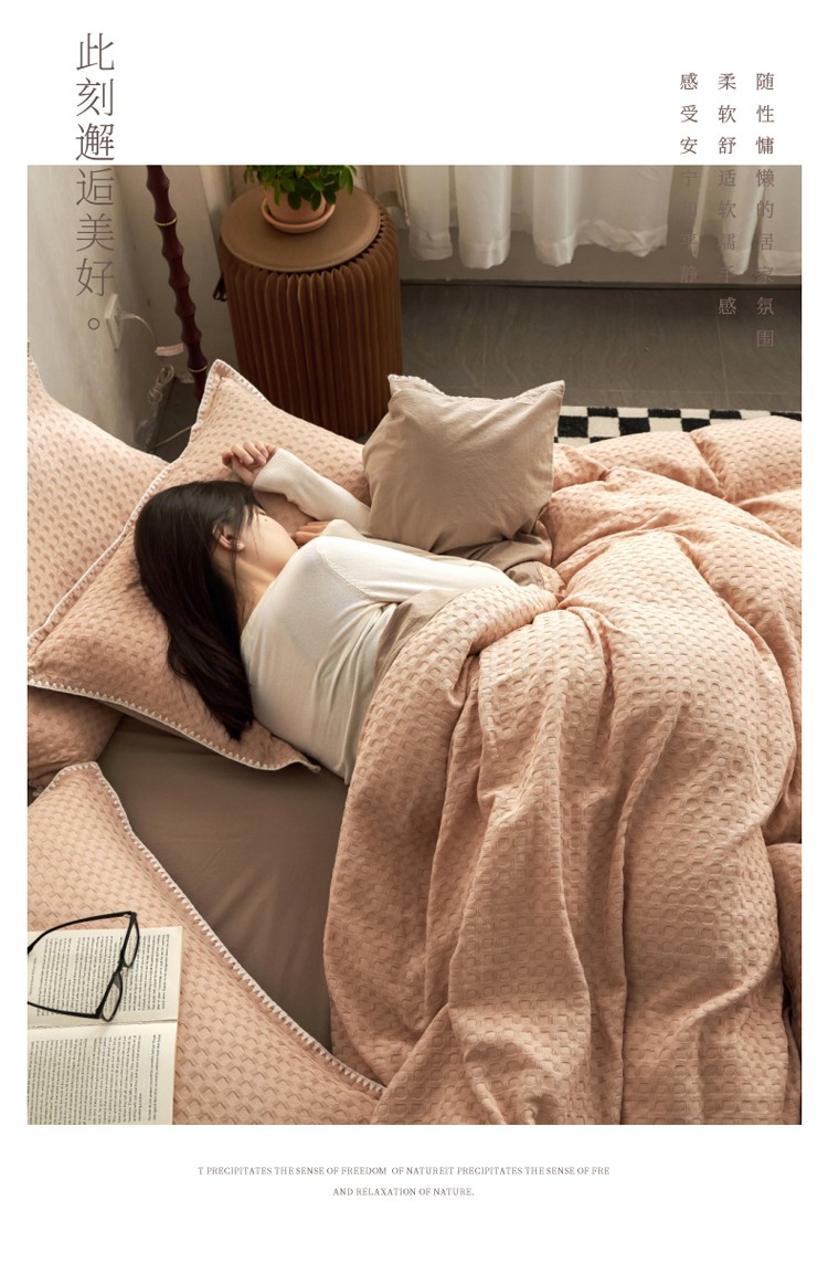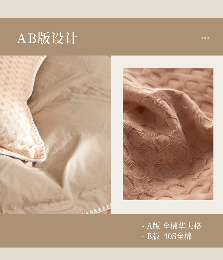 商品名称:风向标2022新款40s华夫格水洗棉四件套 华夫格-纱杏灰