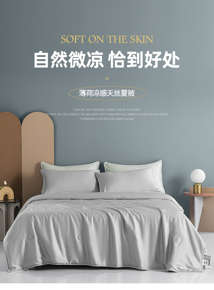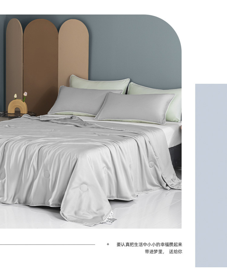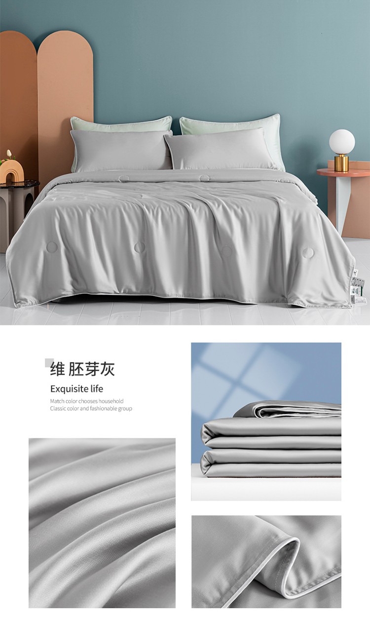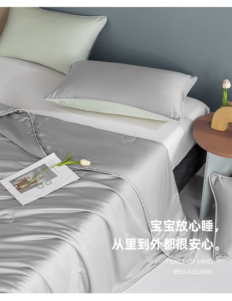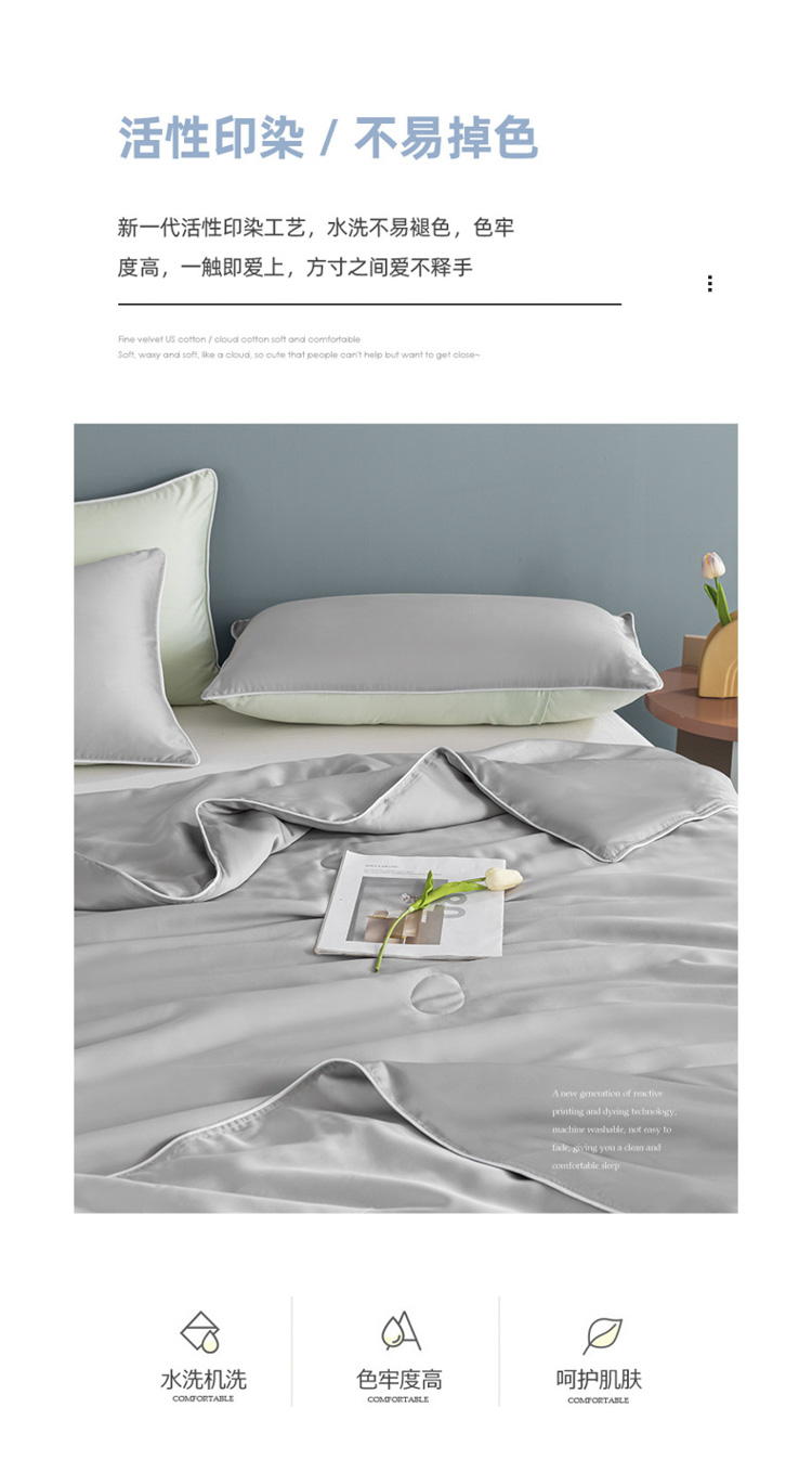 (总)利欧 2025新款直播电商爆款水洗真丝夏被四件套夏凉被空调被,翠绿,淡紫,米黄,浅玉,香槟,银灰,淡绿,海蓝,姜黄