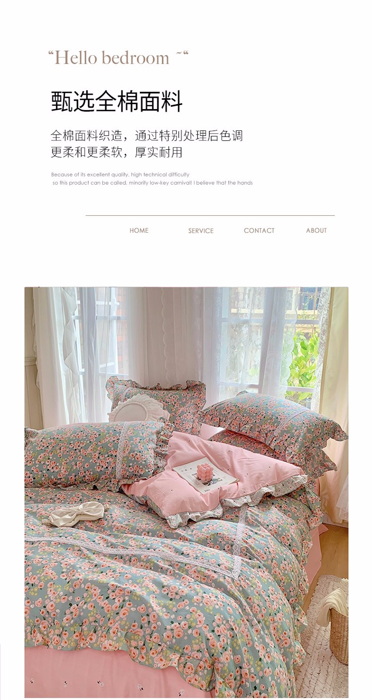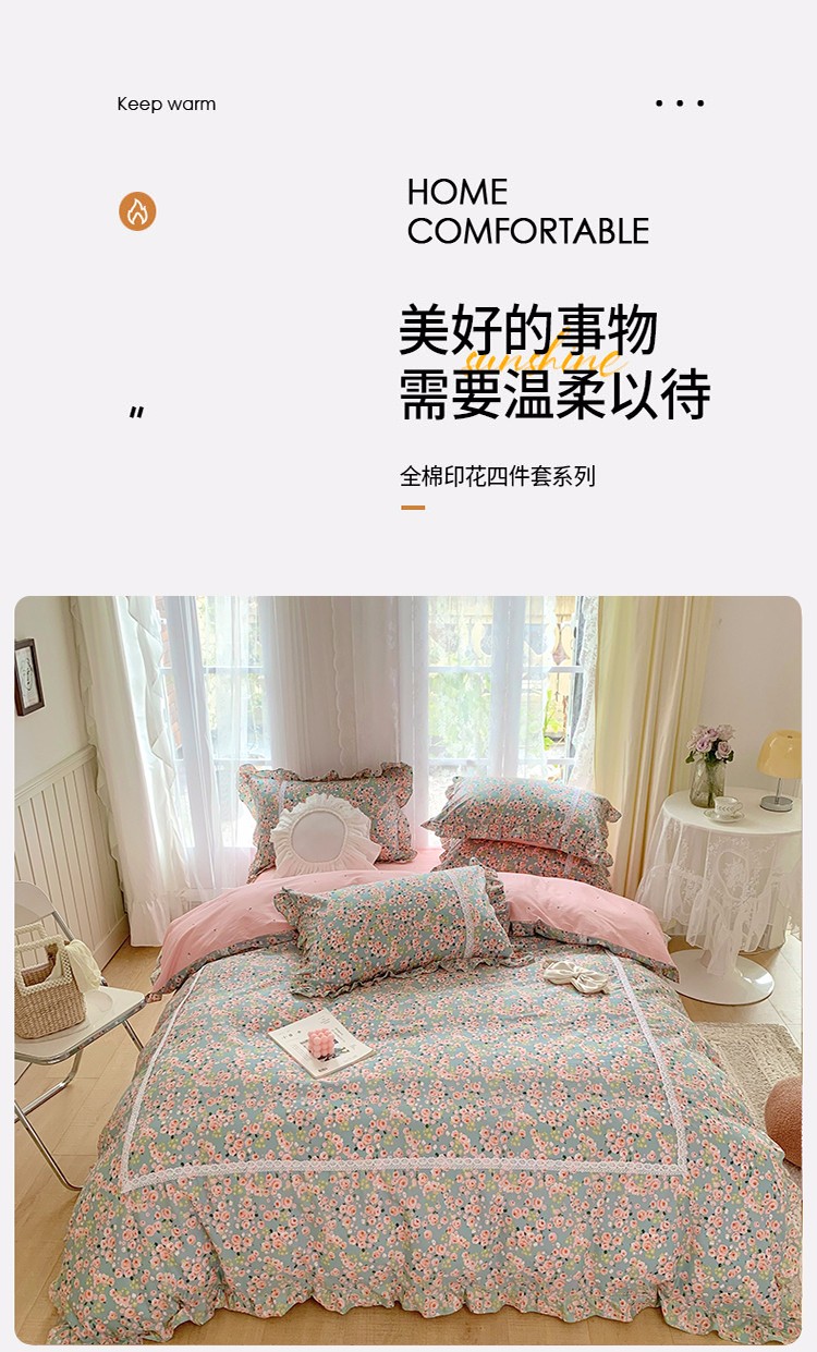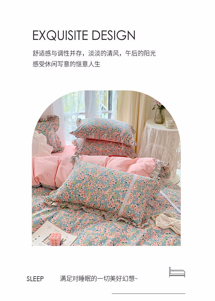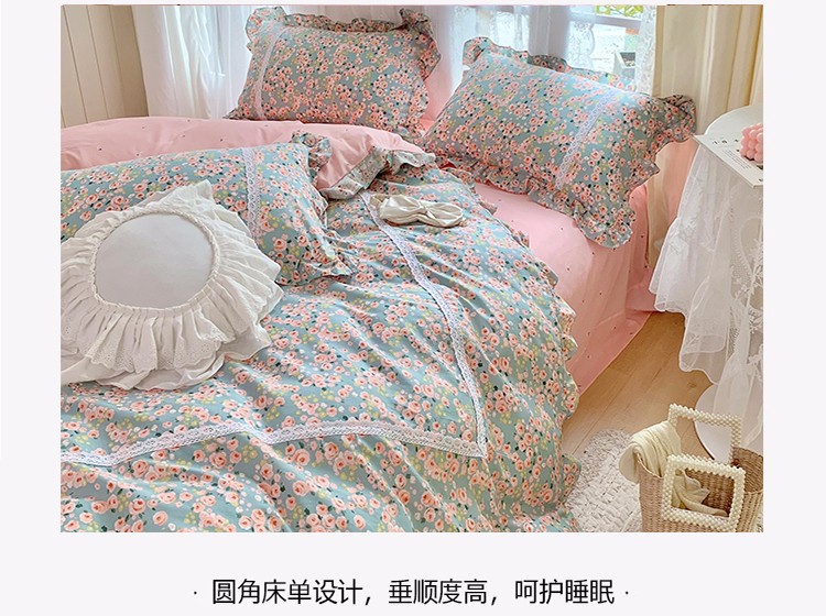 眠屿 2022新款全棉小碎花法式花边四件套 梦妆花园