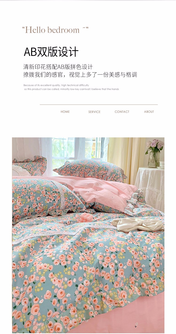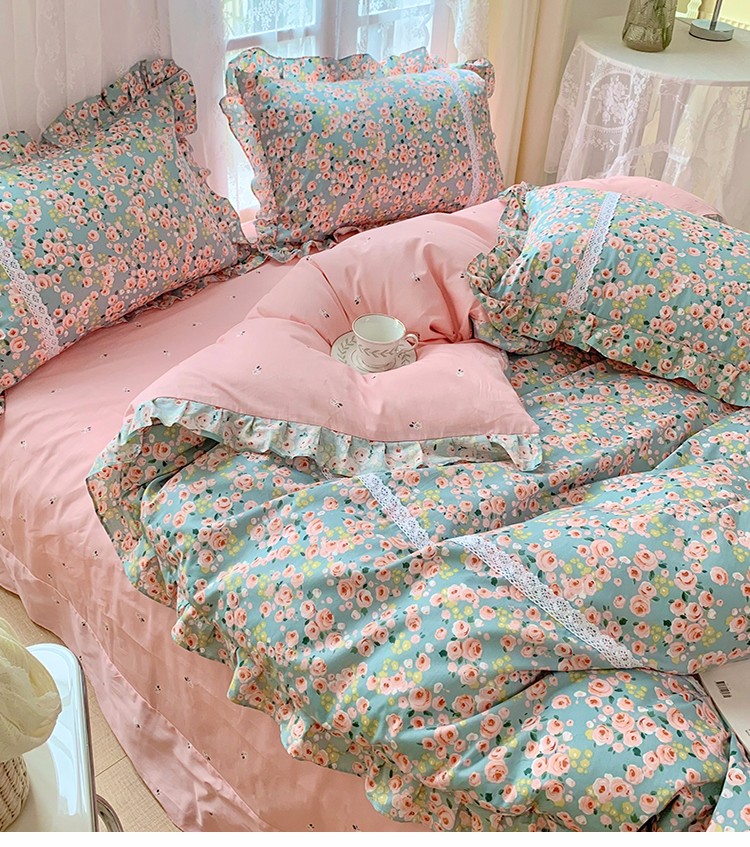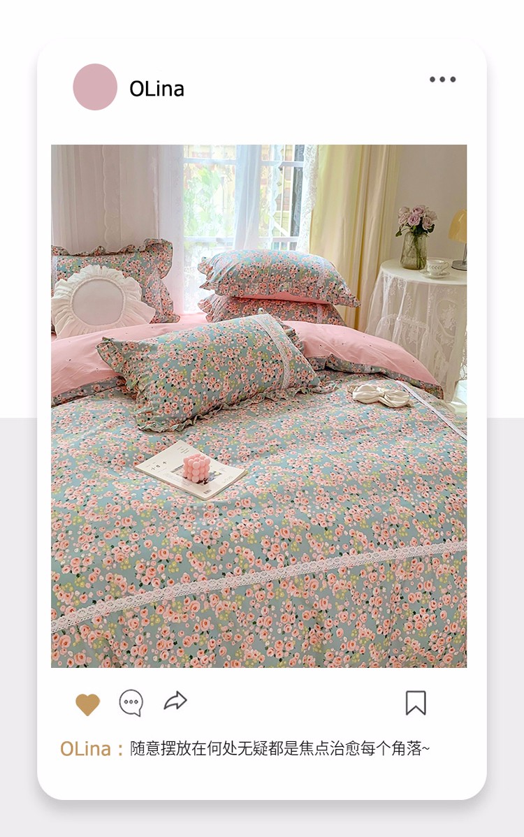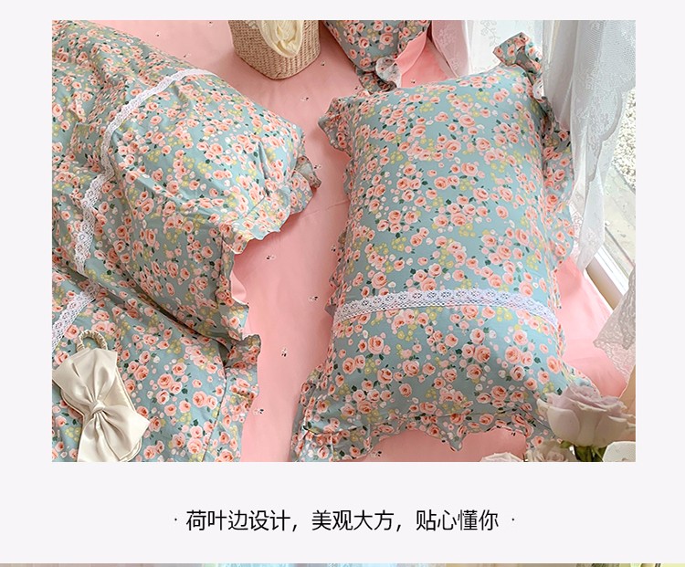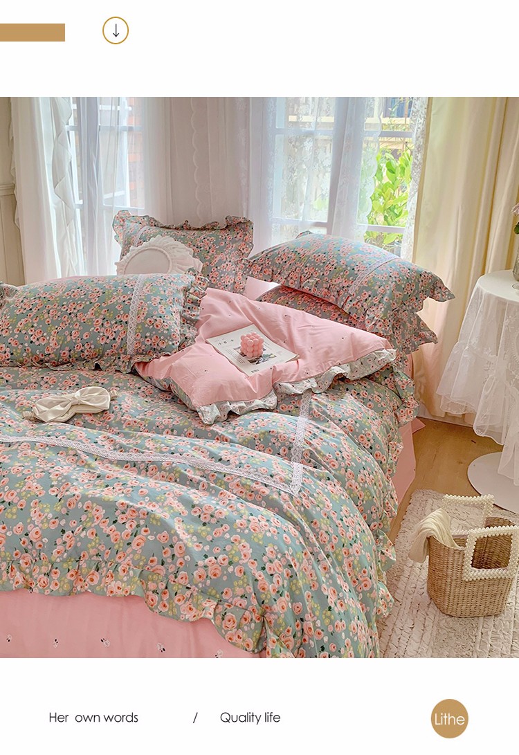眠屿 2022新款全棉小碎花法式花边四件套 梦妆花园