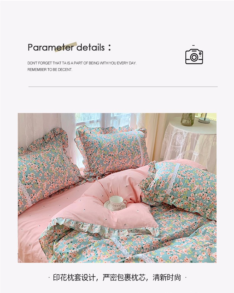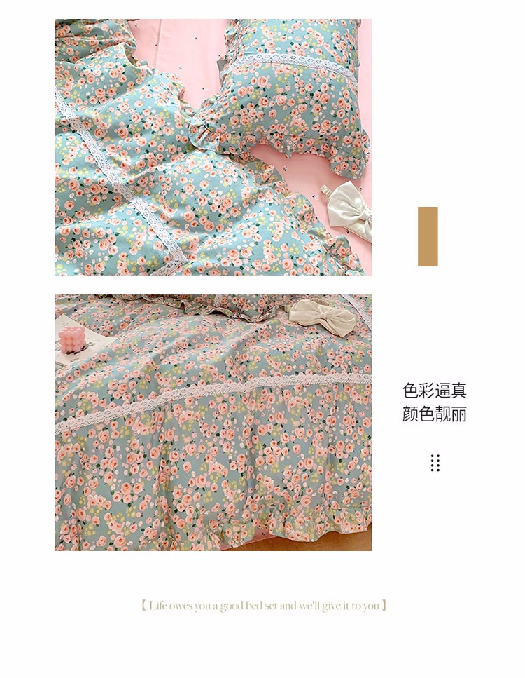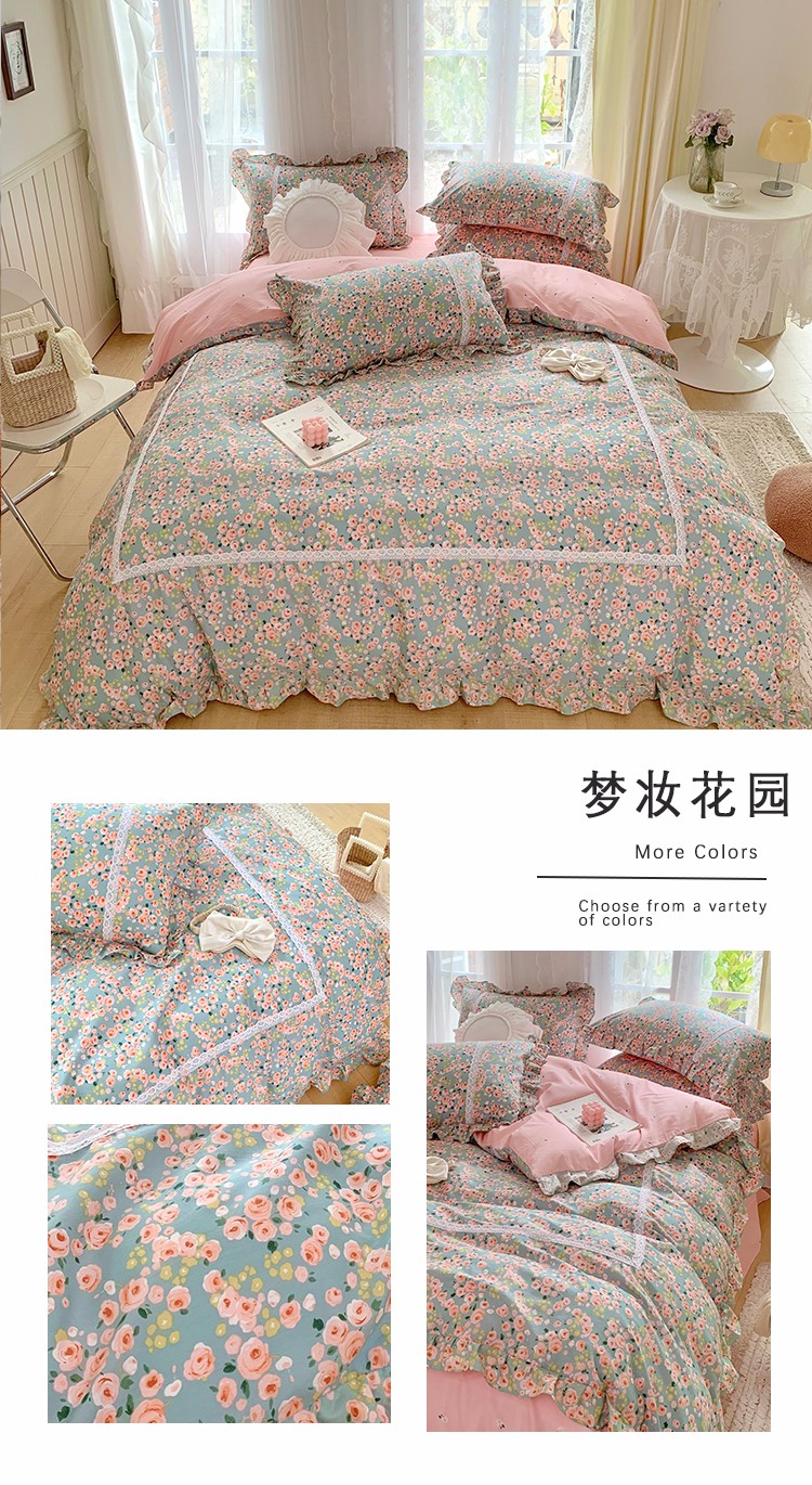 商品名称:眠屿 2022新款全棉小碎花法式花边四件套 梦妆花园