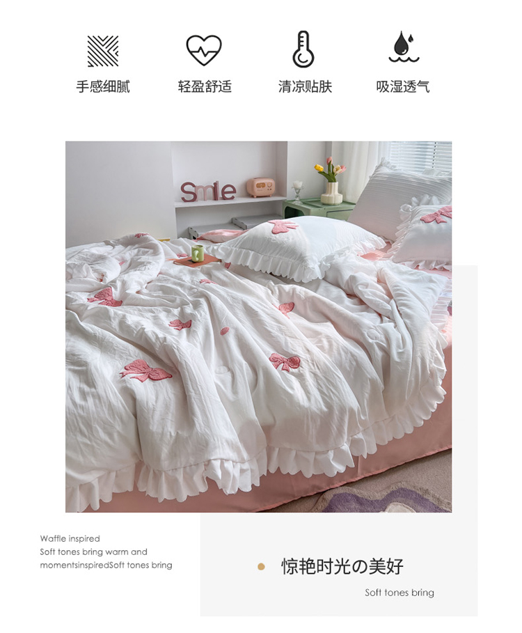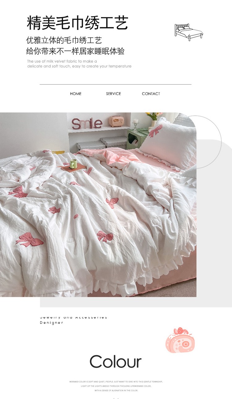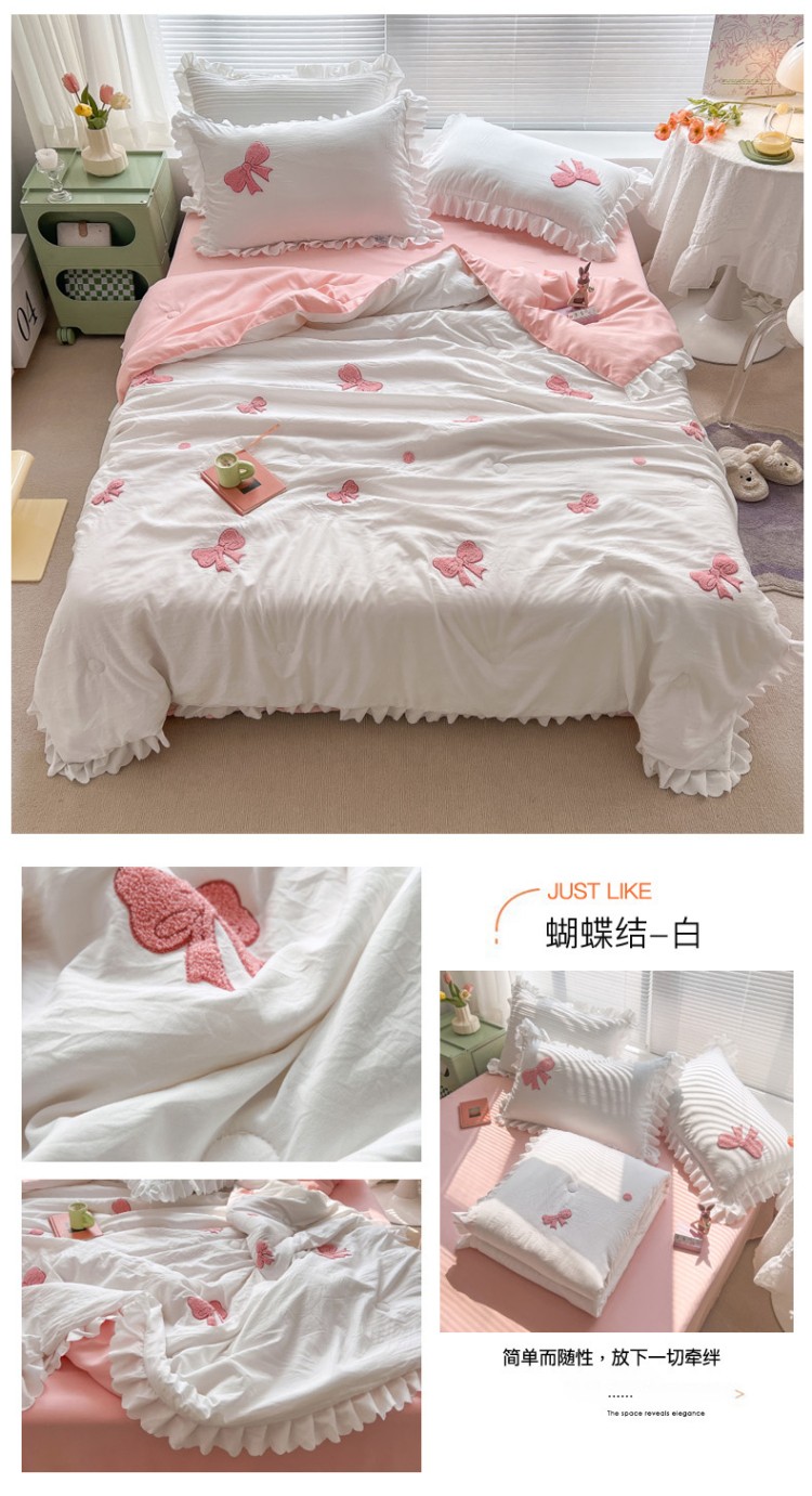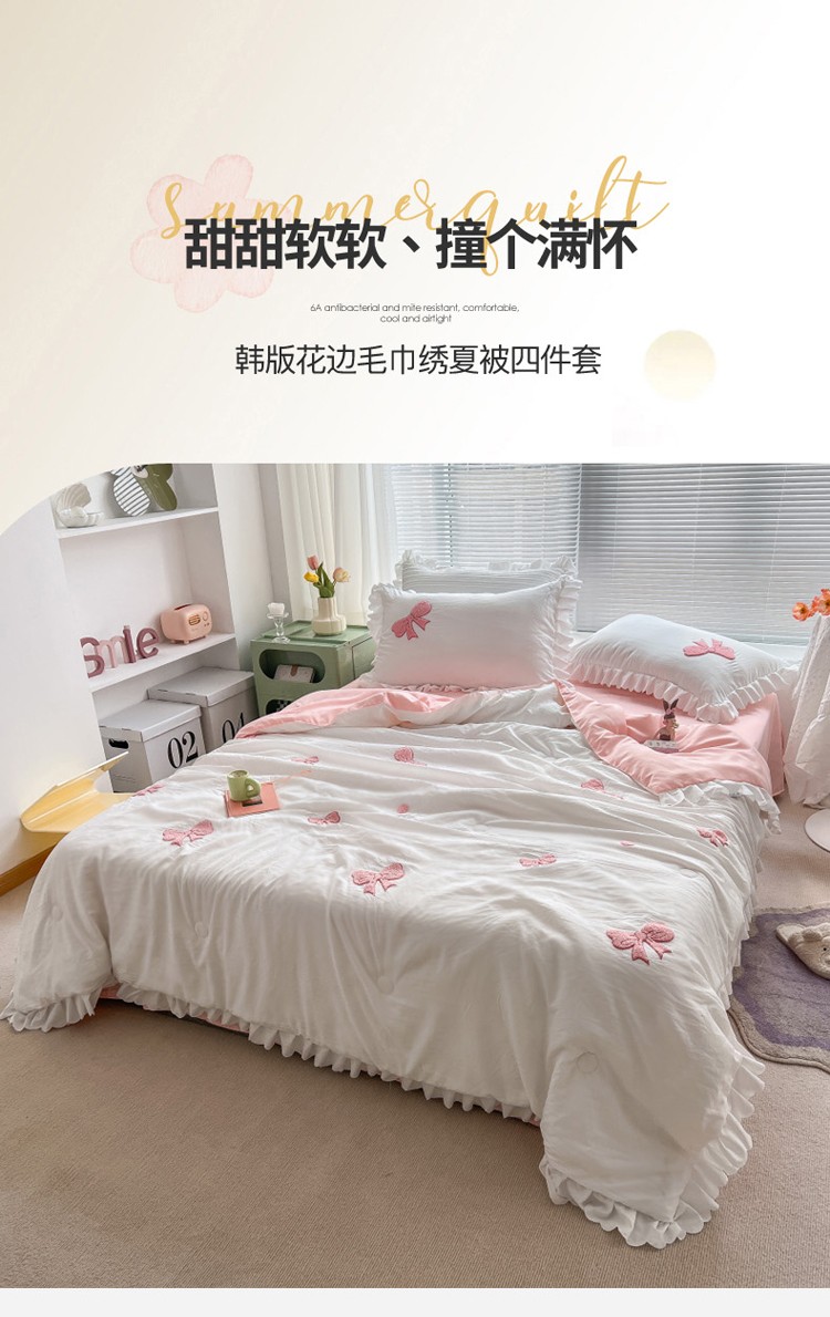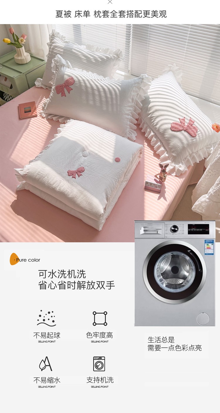 商品名称:沐慕 2022新款毛巾绣洛卡棉夏被四件套 蝴蝶结-白色