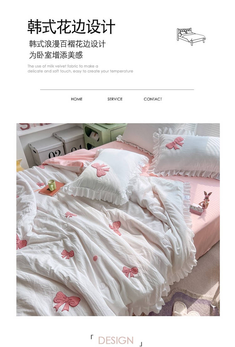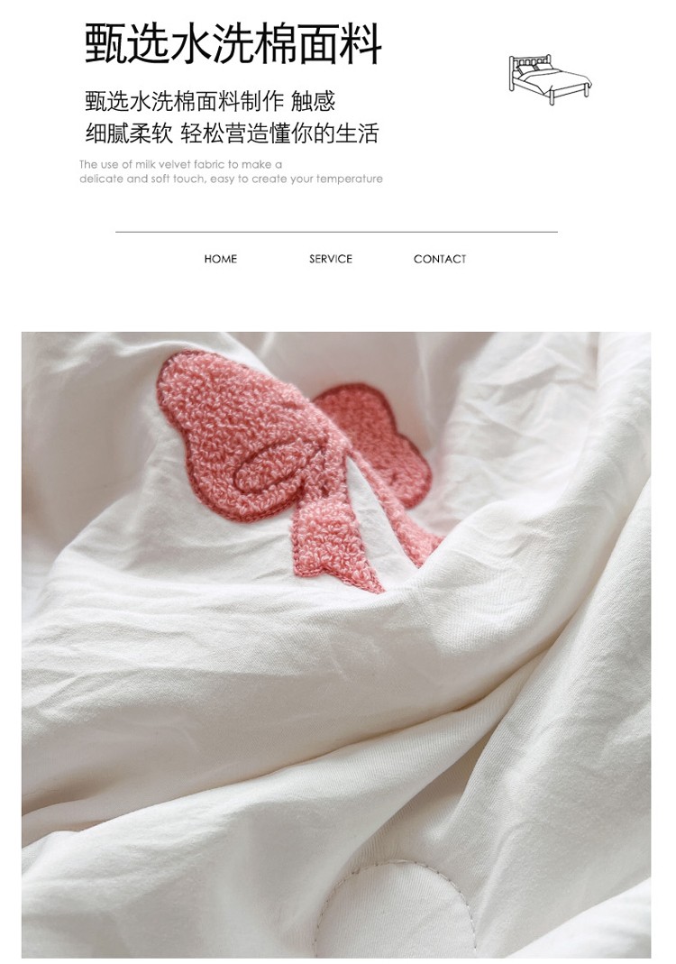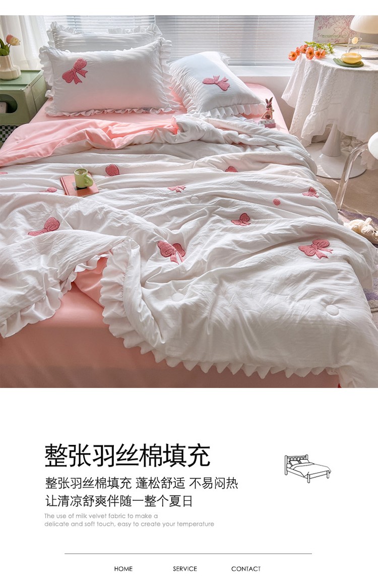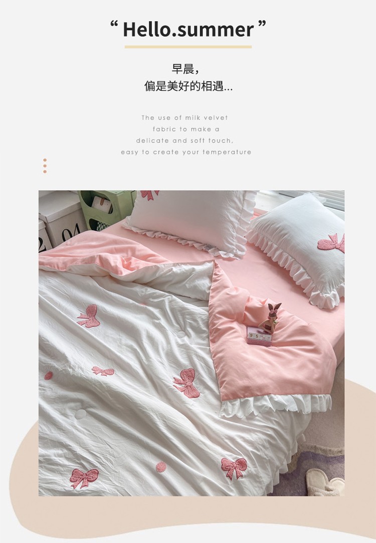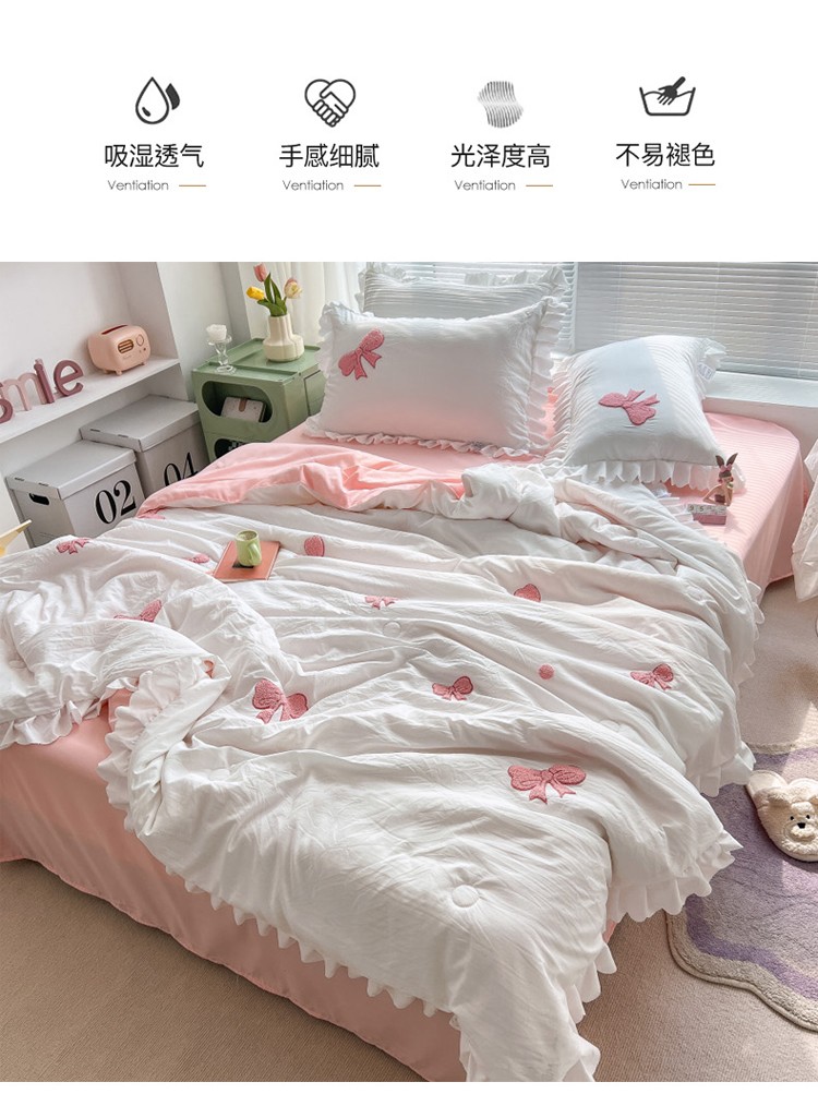 商品名称:沐慕 2022新款毛巾绣洛卡棉夏被四件套 蝴蝶结-白色