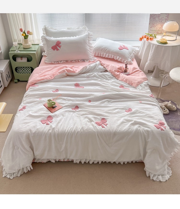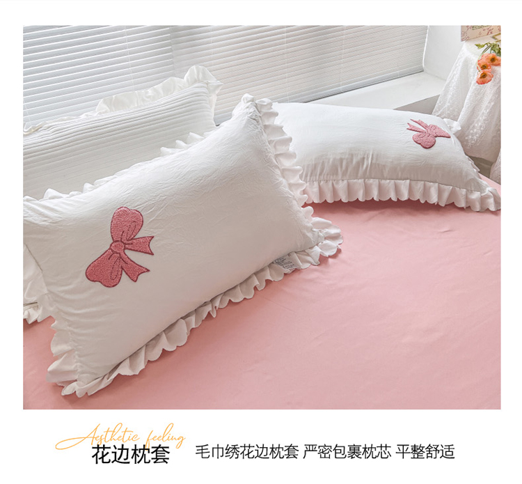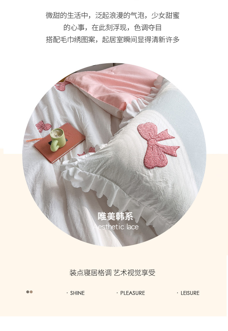 沐慕 2022新款毛巾绣洛卡棉夏被四件套 蝴蝶结-白色
