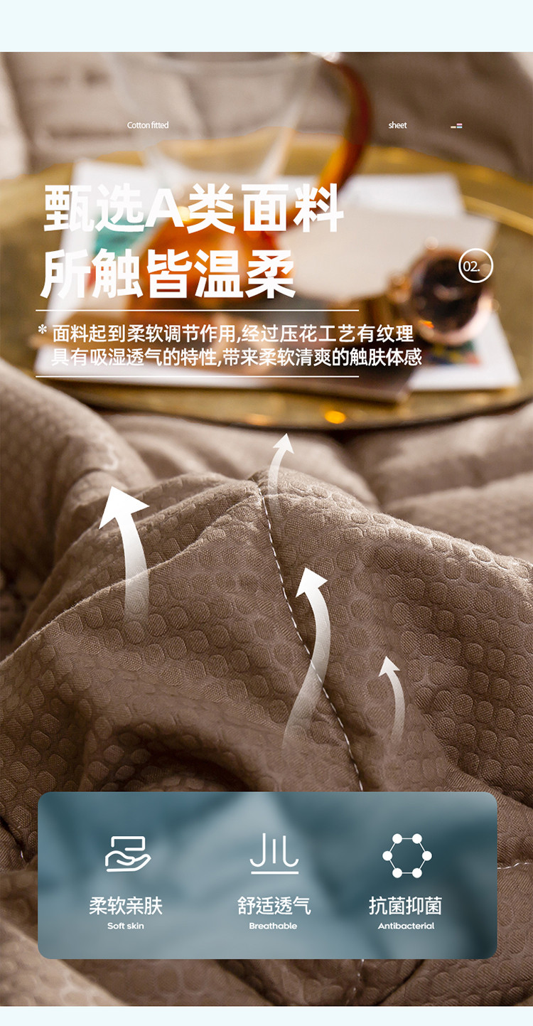 商品名称:塔塔家居 2025新款抗菌超柔防水夹棉床笠 稚初咖