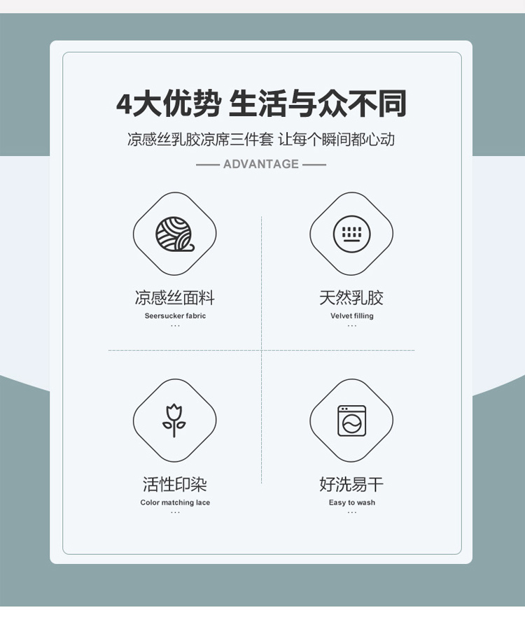 商品名称:寐居 2022新款纯色凉感丝乳胶凉席三件套 嫩玉色