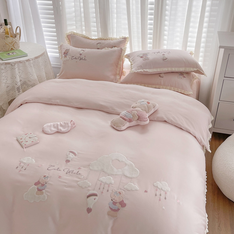 (总)馨蕊家居 2025新款春夏新品天丝印花80SLF奥地利兰精天丝四件套-告白,天丝告白-蔷薇粉,天丝告白-婉若紫
