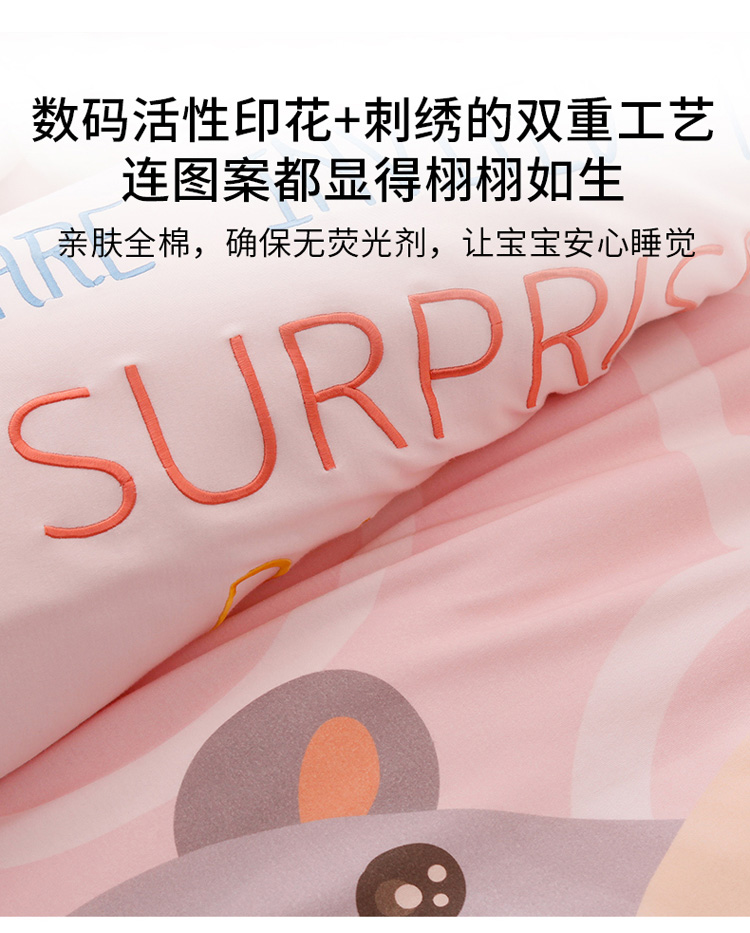 商品名称:喜多兔 2022新款全棉针织三件套床品套件-奇妙动物 粉色小河马艾琳