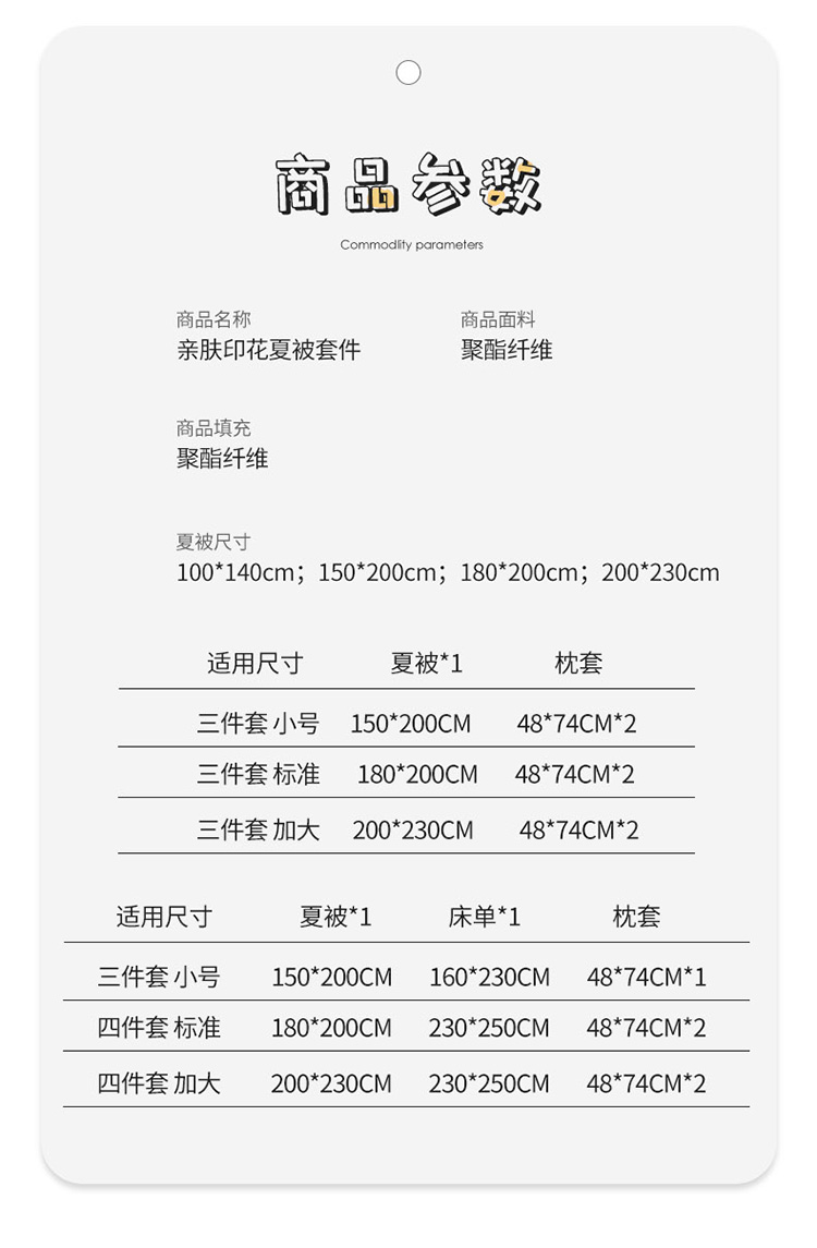 180*200cm夏被四件套 | ¥59.00 |