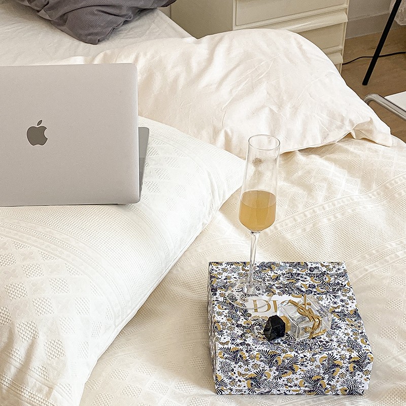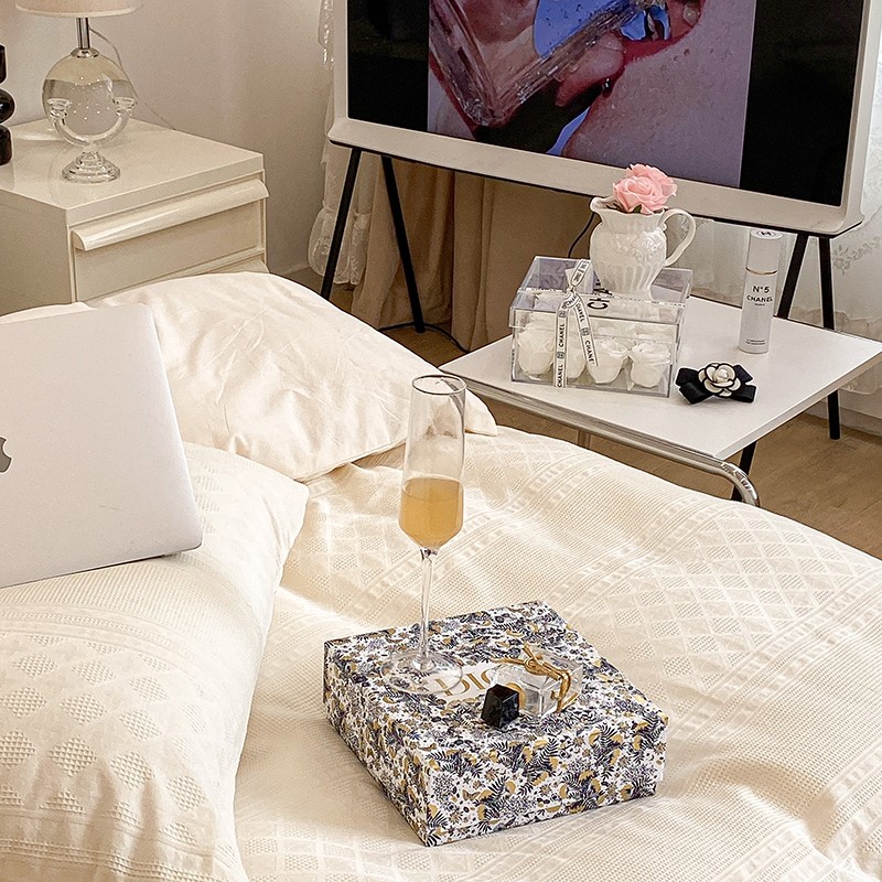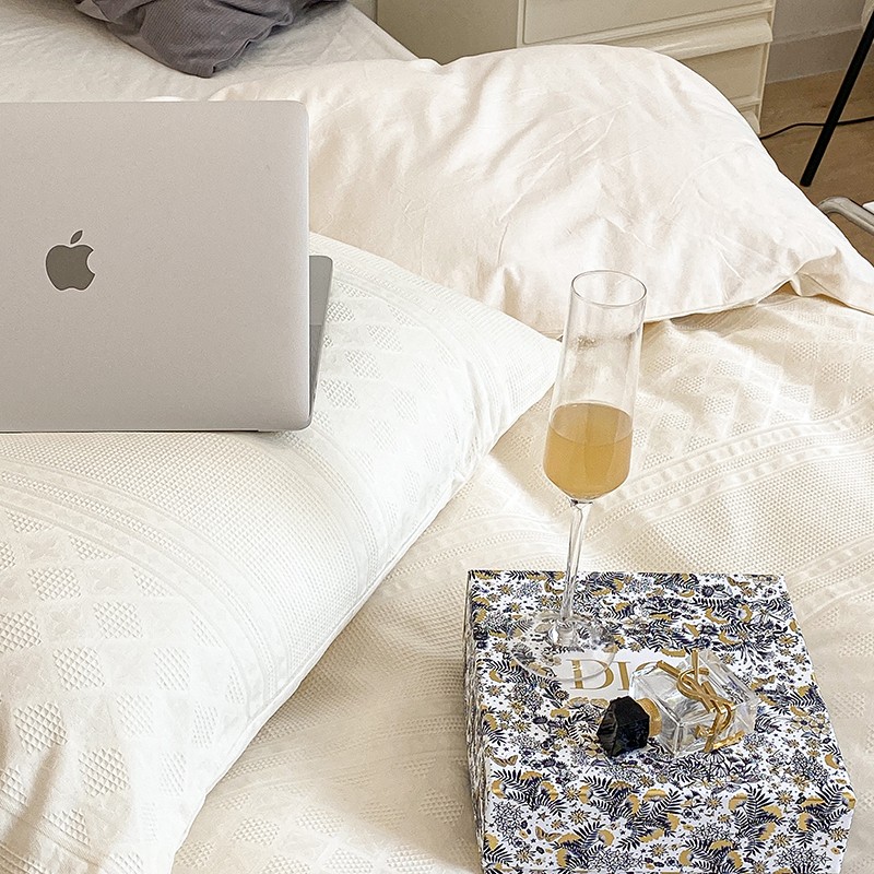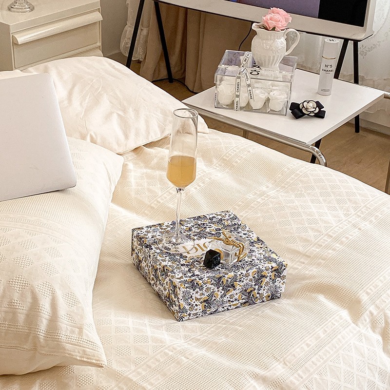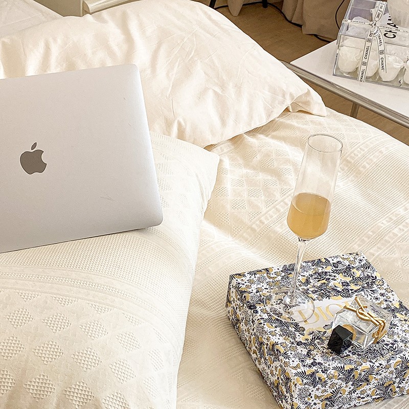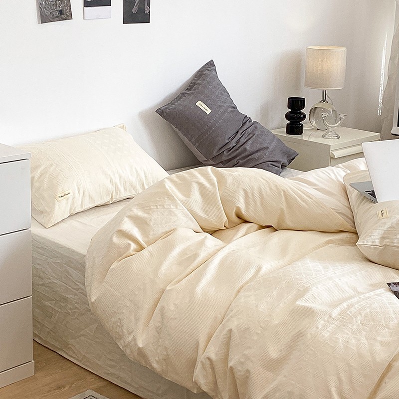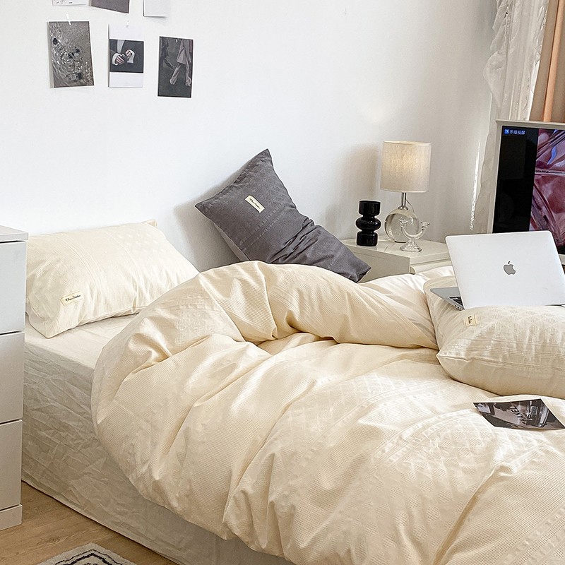 昔可 2022新款60支水洗棉华夫格提花四件套拍法一 四花格米白