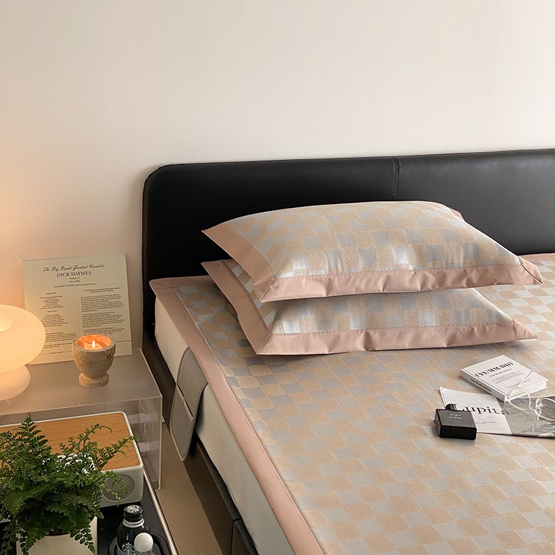 (总)昔可 2023新款全棉ins格子混搭系列四件套,ins简约绿格,粉蓝格,开心果格,学院格纹,粉绿格,海盐兰格,黄绿格,夏日蓝条,芝士黄条,紫芋泥芝士格