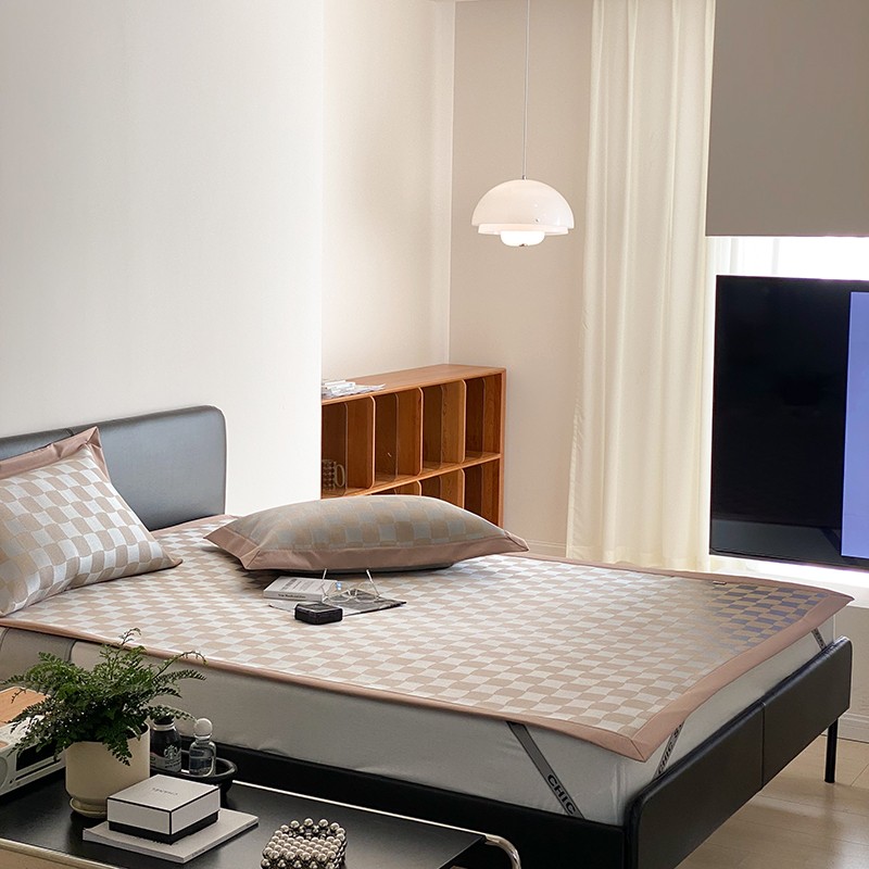 商品名称:昔可 2022新款900D水洗提花养生凉席 异形格-咖