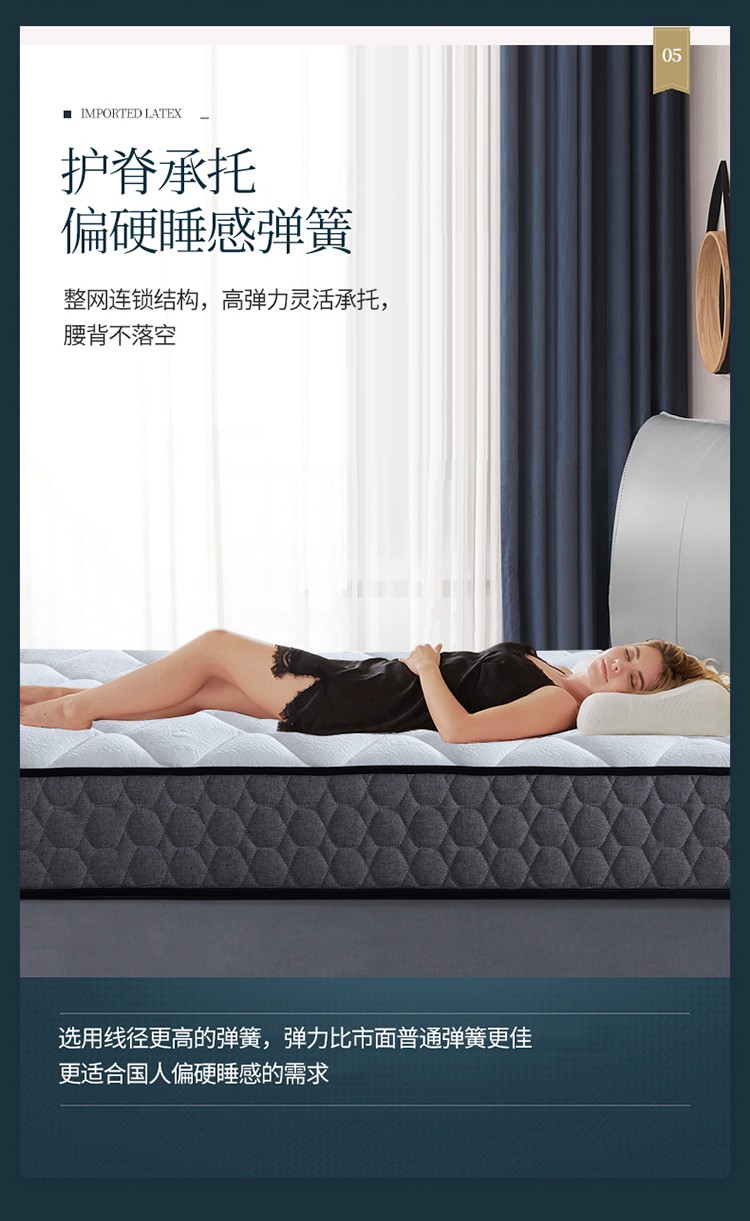 当前位置: 91家纺网 > 商品网购 > 床垫/床褥/床护垫 > 普通床垫 > 时奥 2022新款弹簧床垫-M05(针织面料) 独立弹簧+1.2棕+2.0乳胶(23cm)