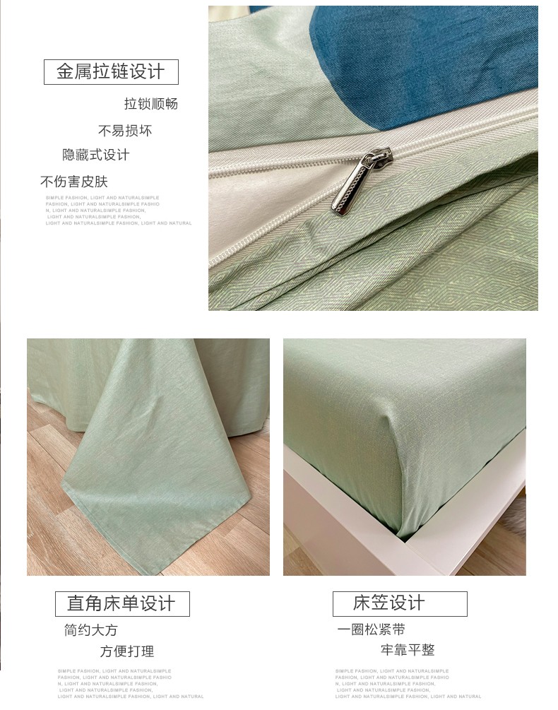 吉象 2022新款全棉活性印花四件套-北欧风系列 悉尼-绿